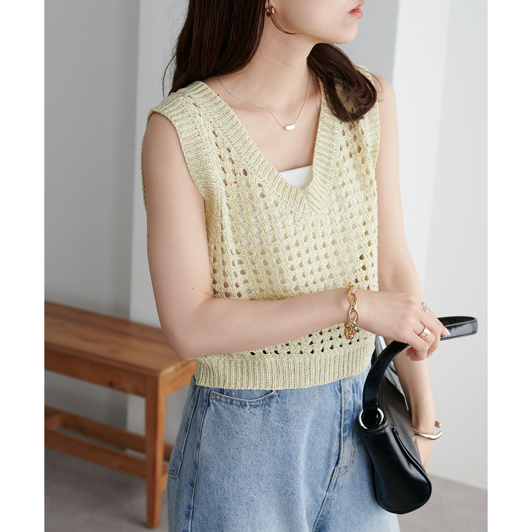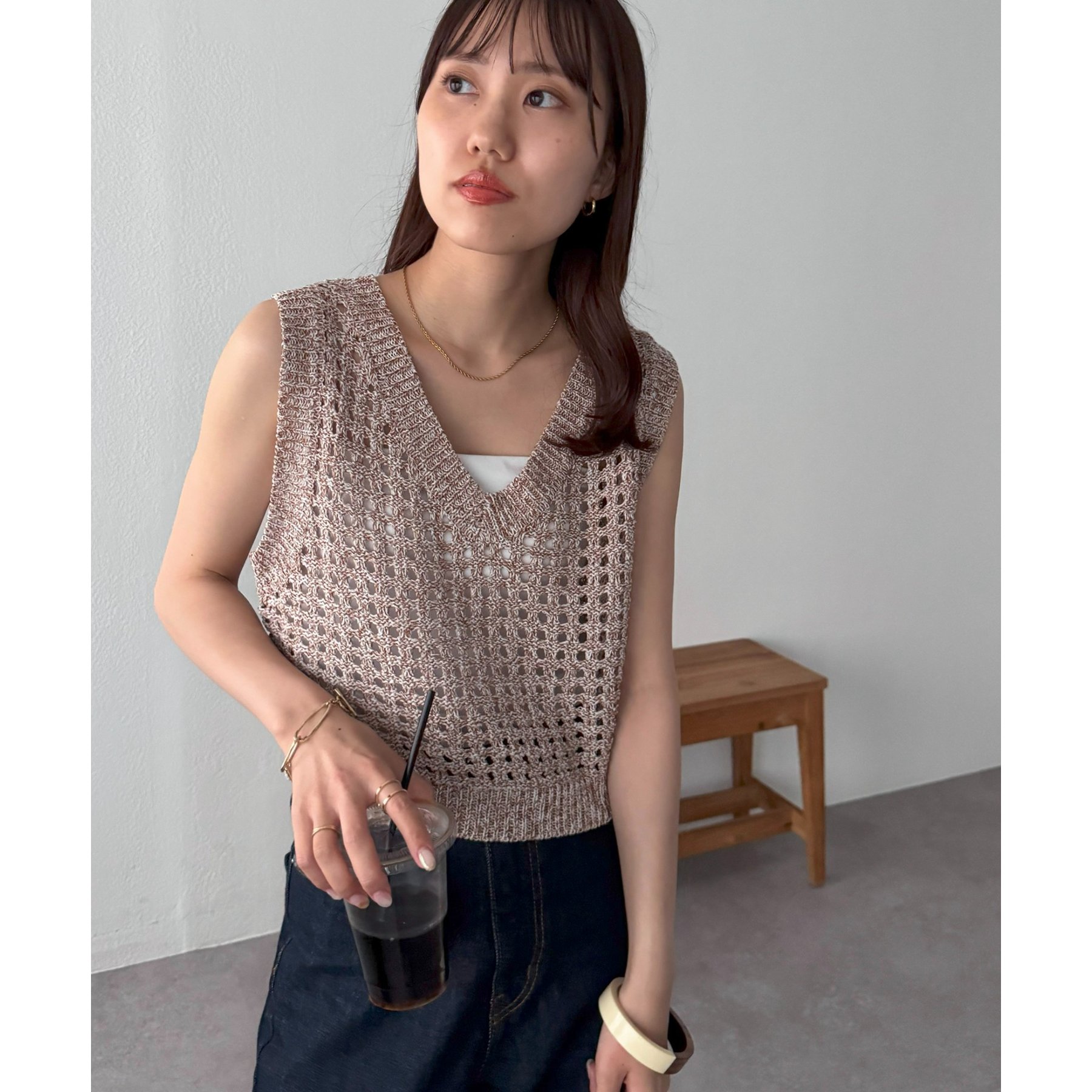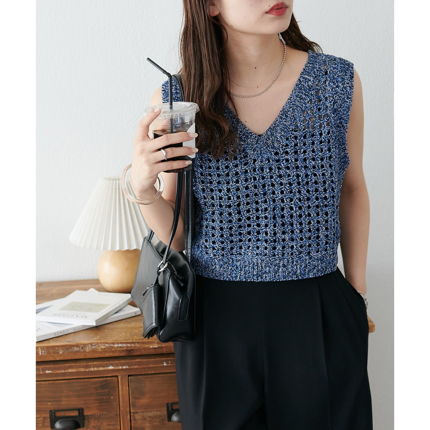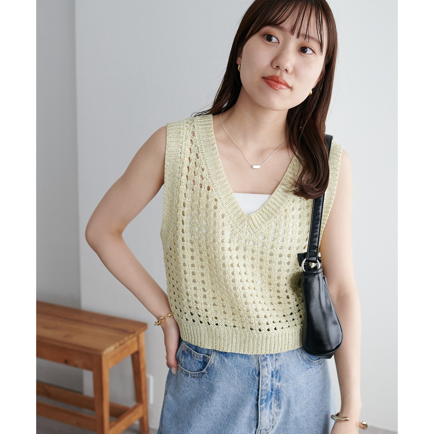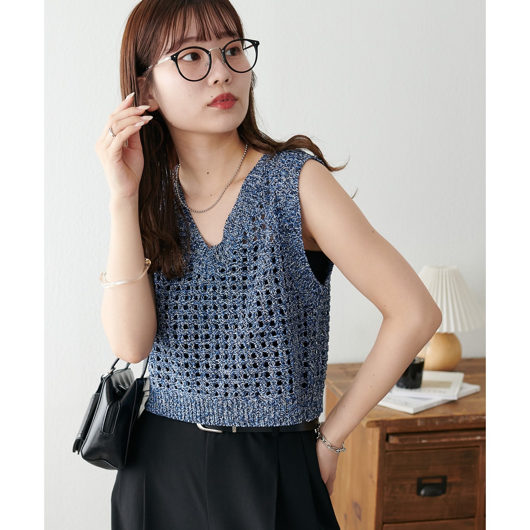 ・透かし編みで軽やか&涼しげな印象のニットベスト
