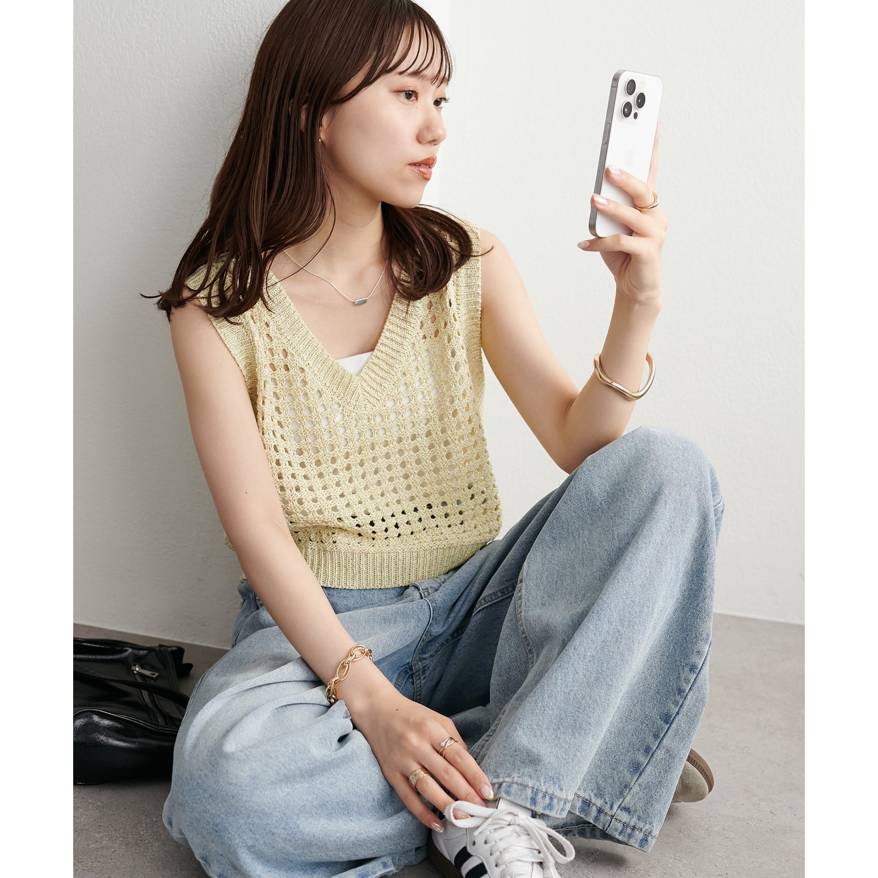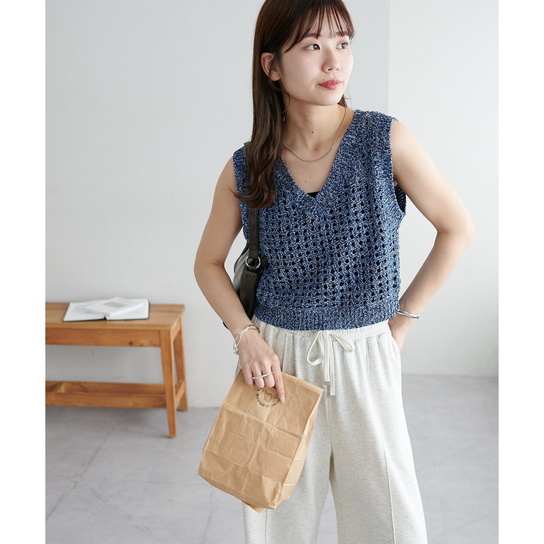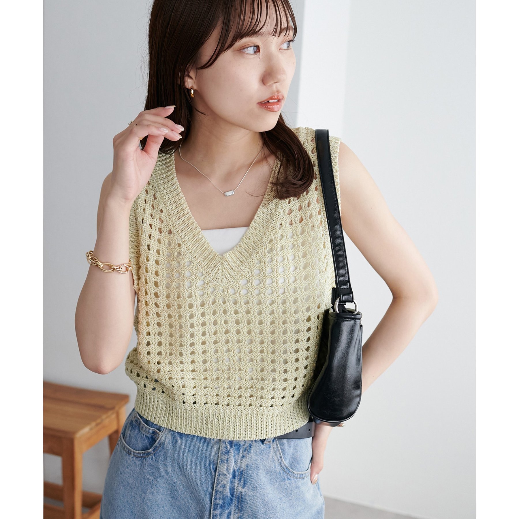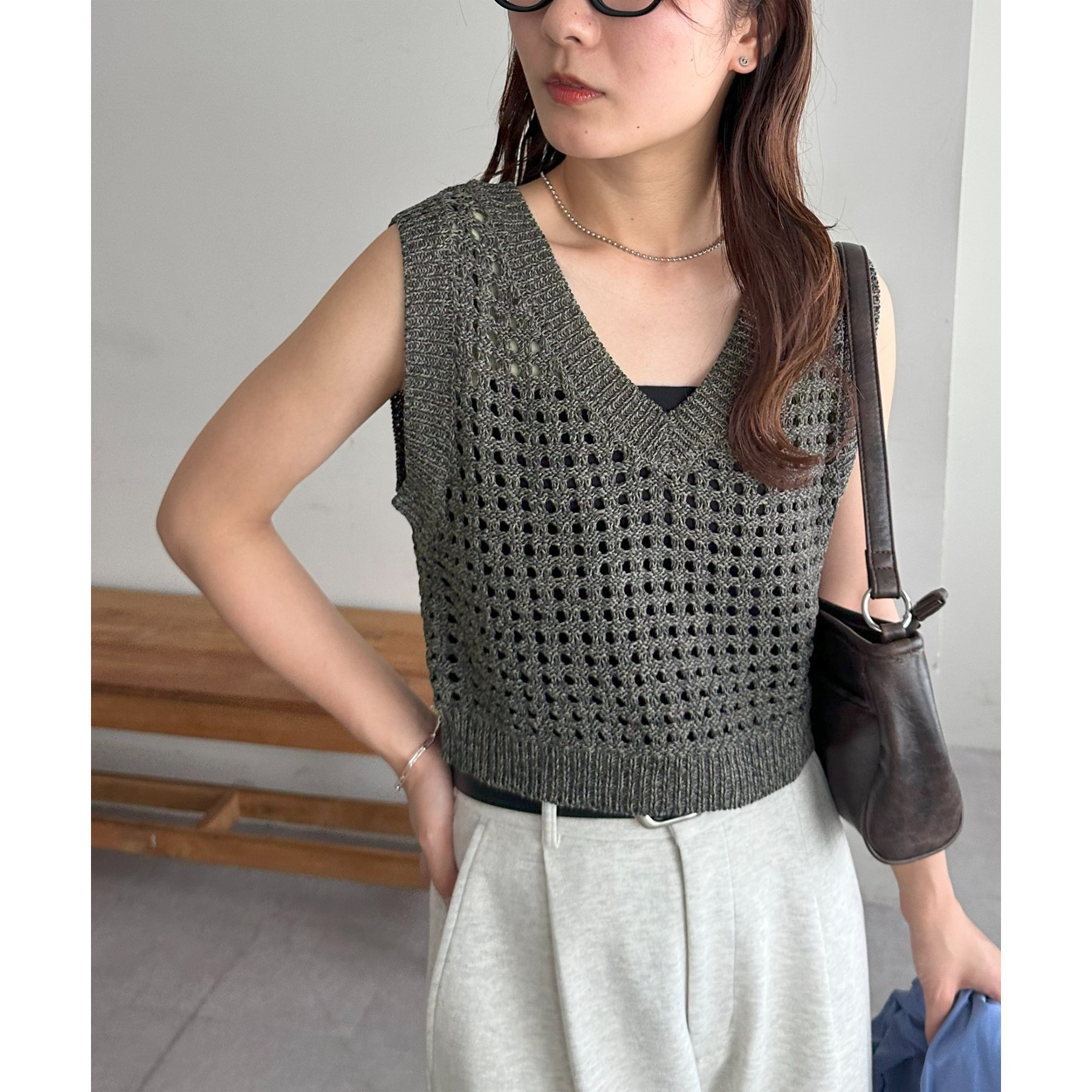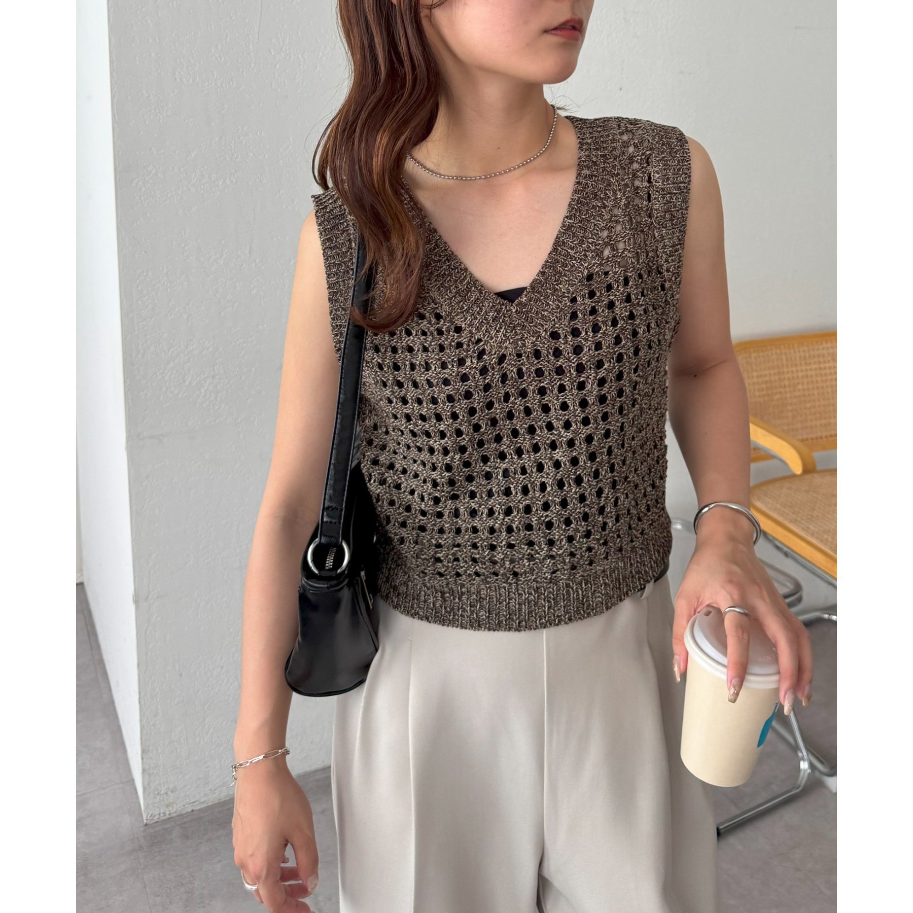 ・透かし編みで軽やか&涼しげな印象のニットベスト