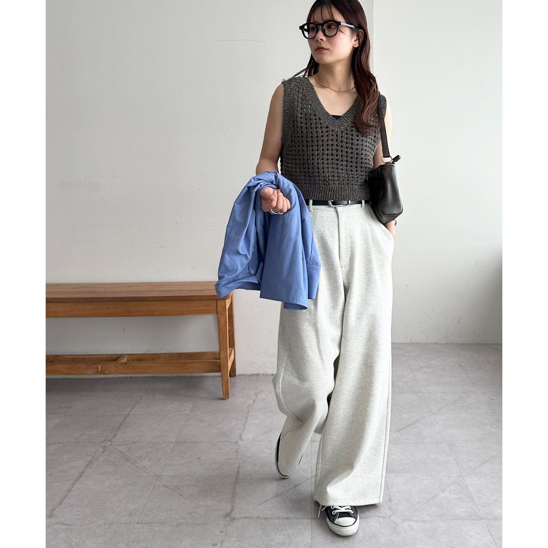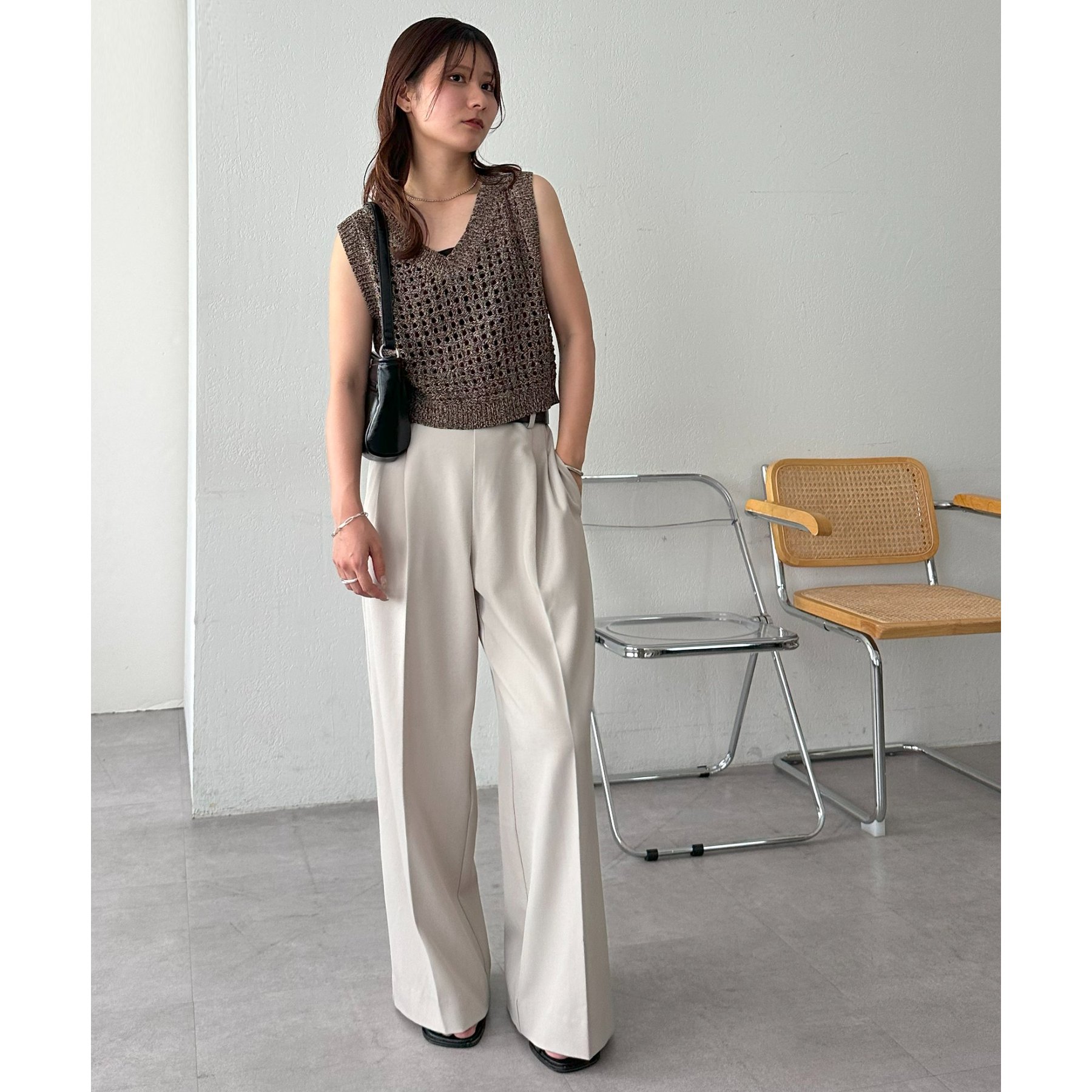 短めの丈感なのでハイウエストパンツやスカートと相性抜群です!