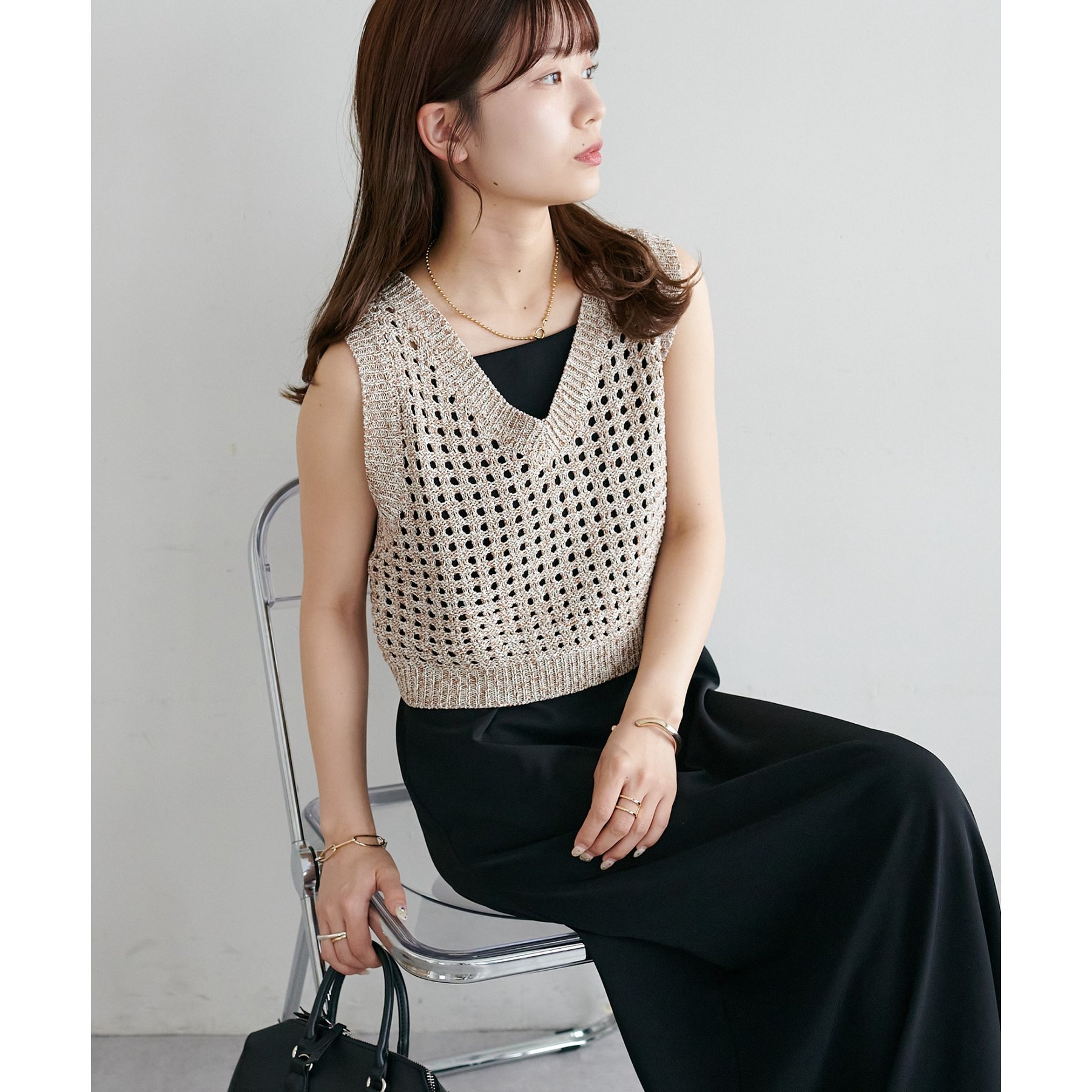 【新色追加!/WEB限定】透かし編みニットベスト