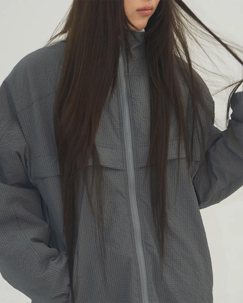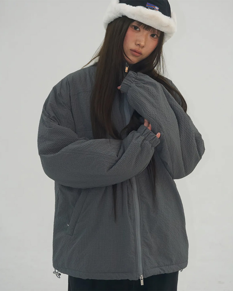 Minimal Half Incisor Overfit Winter Blouson Bomber Zip-Up Jumper [Charcoal]