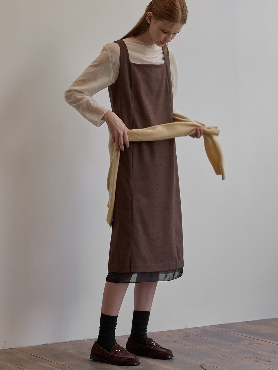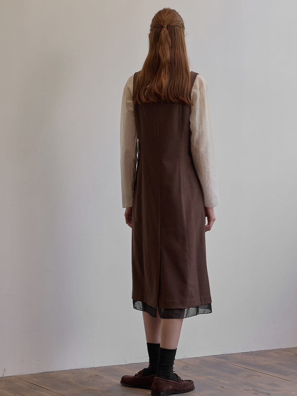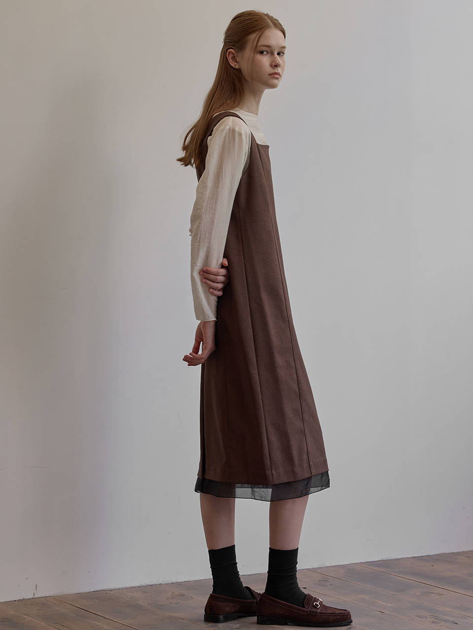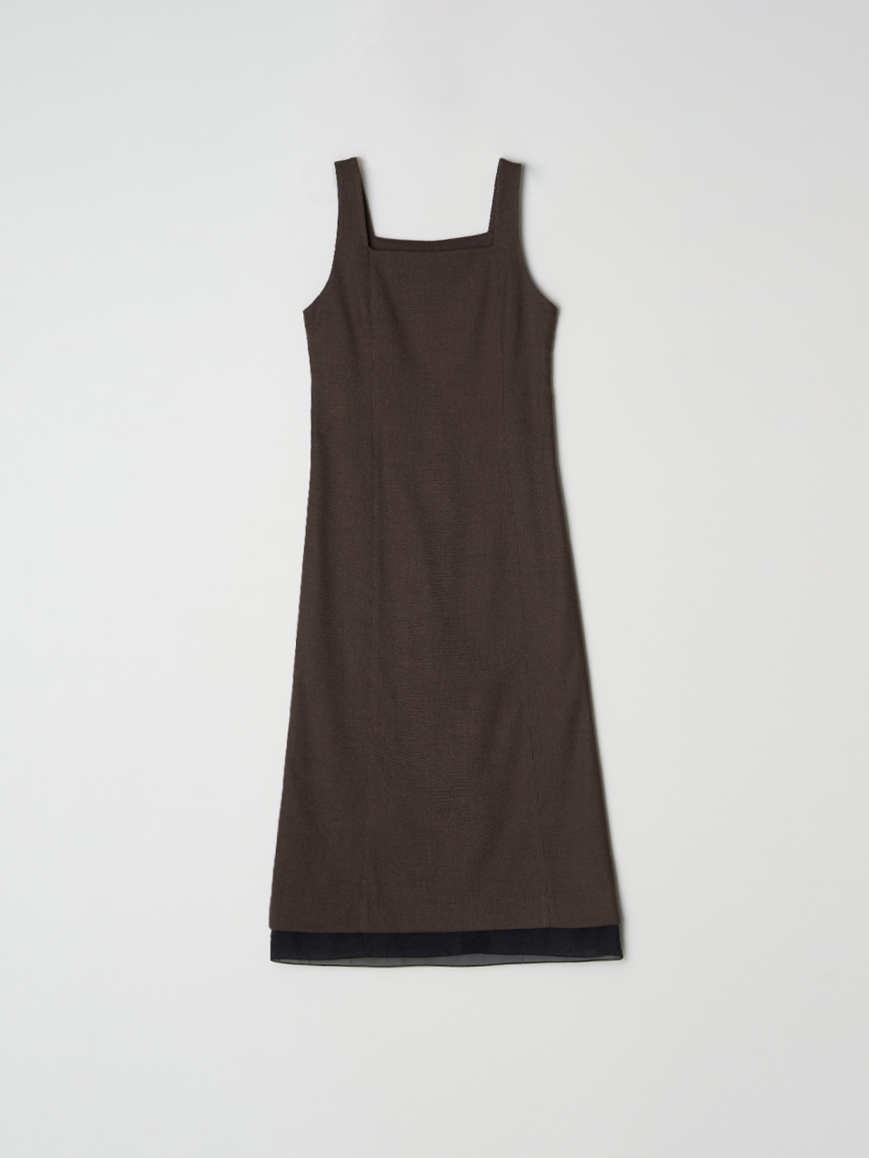 Hem line sheer patch dress - Brown