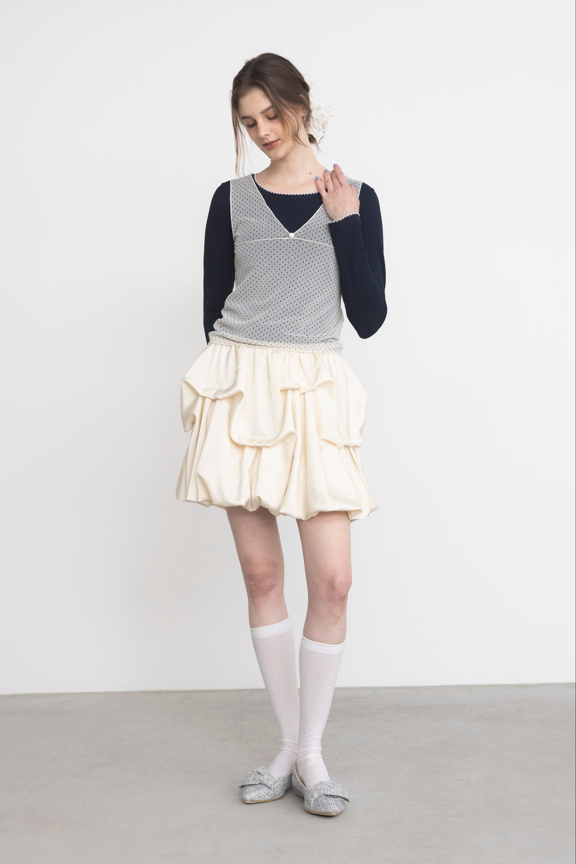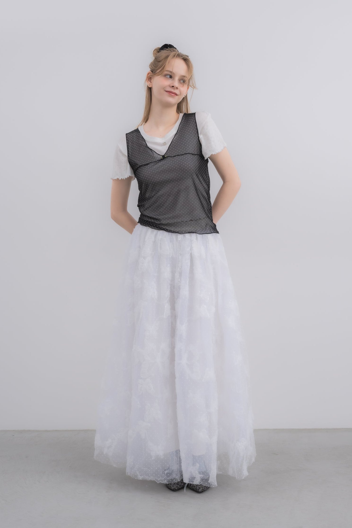 ・程よく透けるシアー生地でヘルシーな印象に