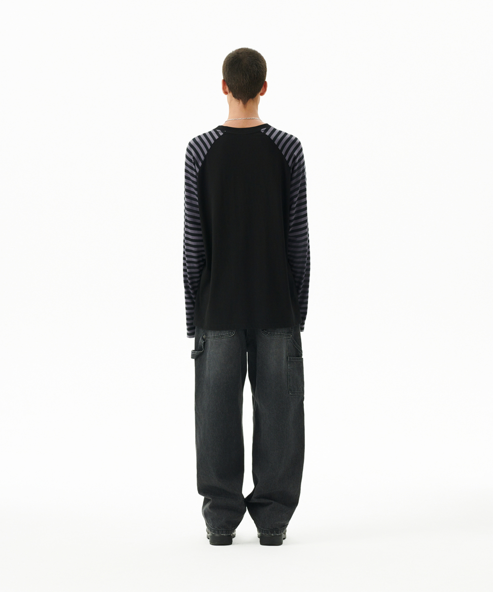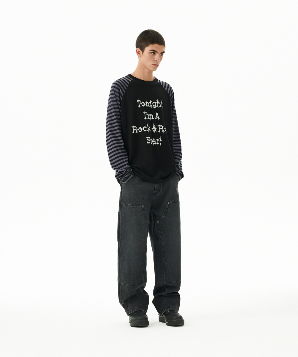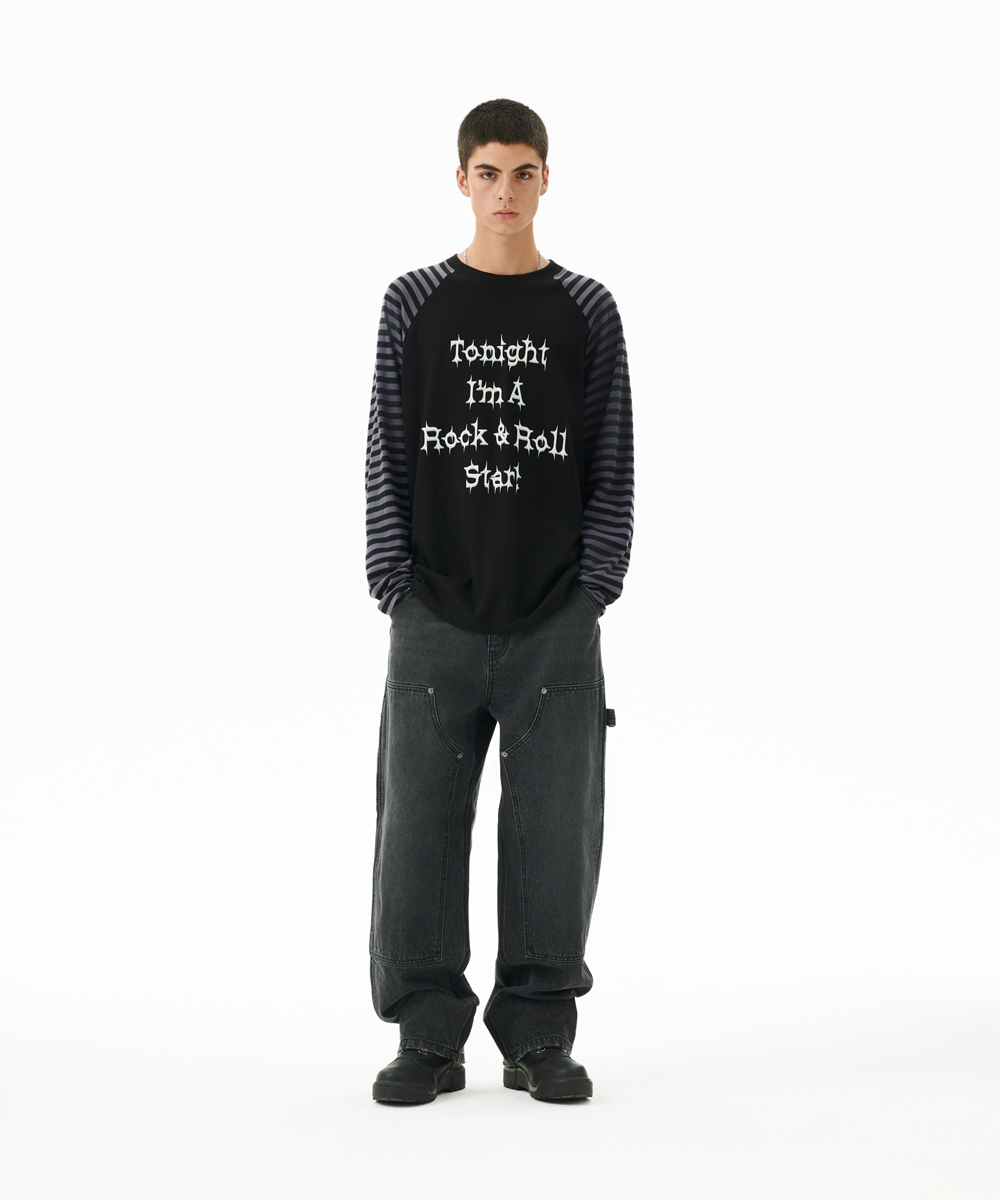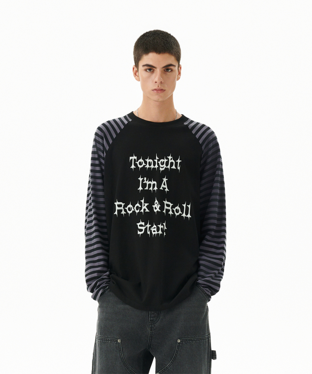 ROCK STAR RAGLAN STRIPE LS TEE[BLACK]