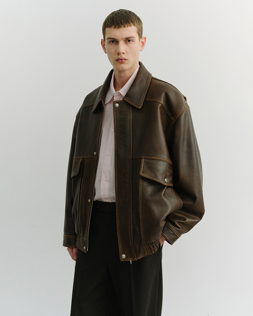 UNISEX OVERSIZED VINTAGE LEATHER BLOUSON BRUSHED BROWN_M_UDJU6A103W2