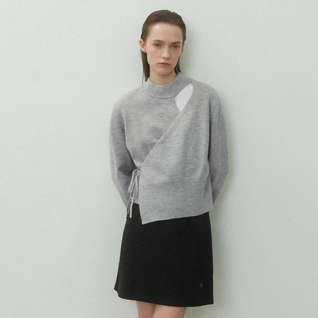 (T-6964)ESSENTIAL WRAP CUTOUT WOOL KNIT