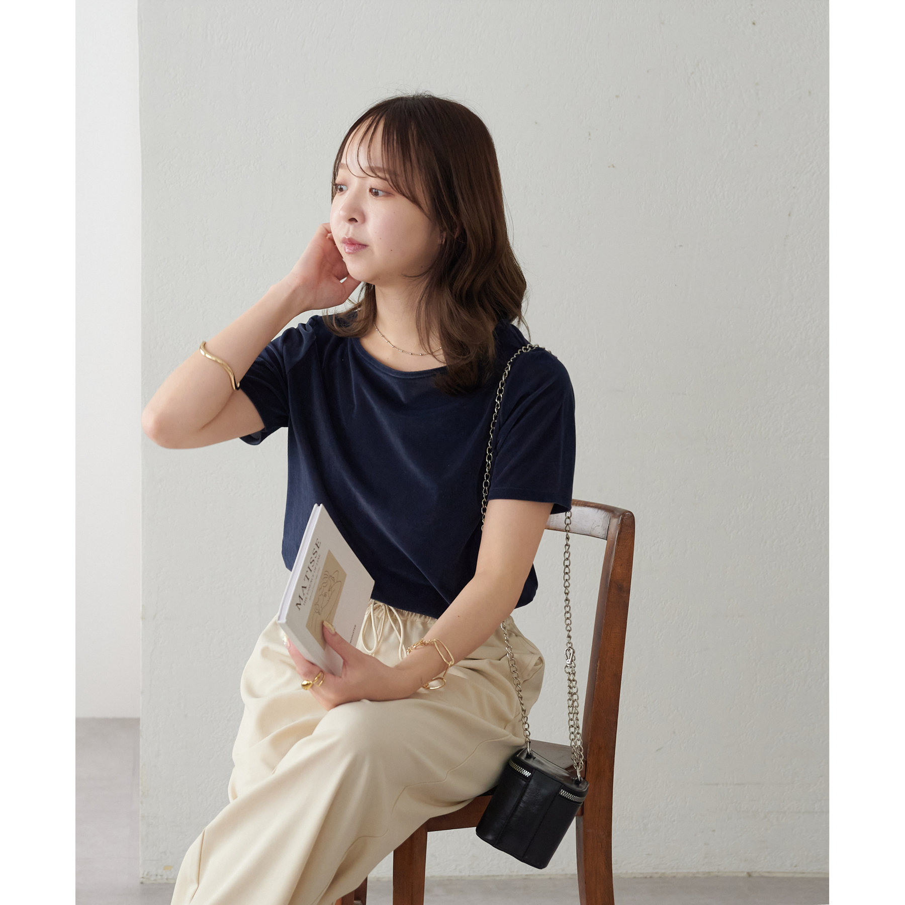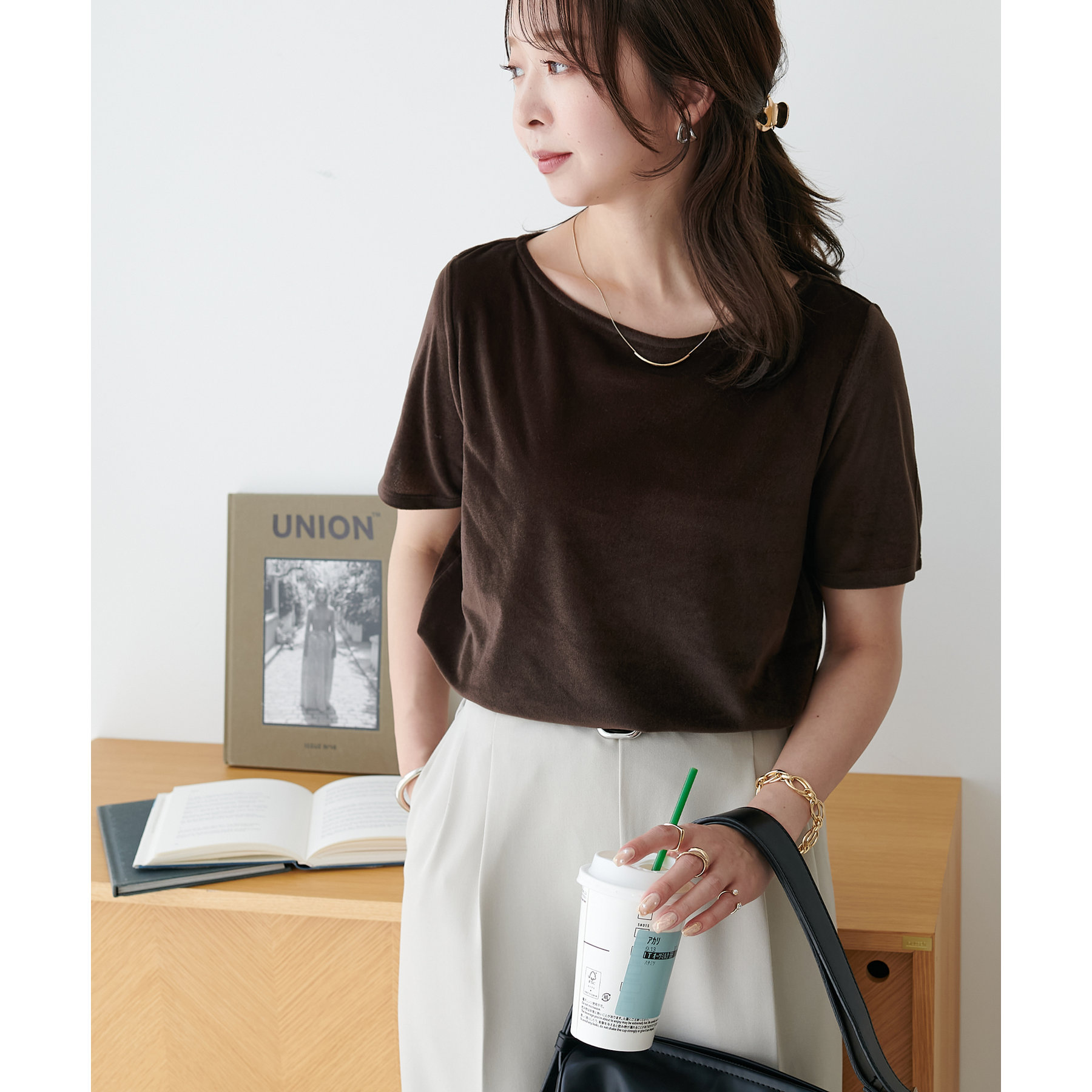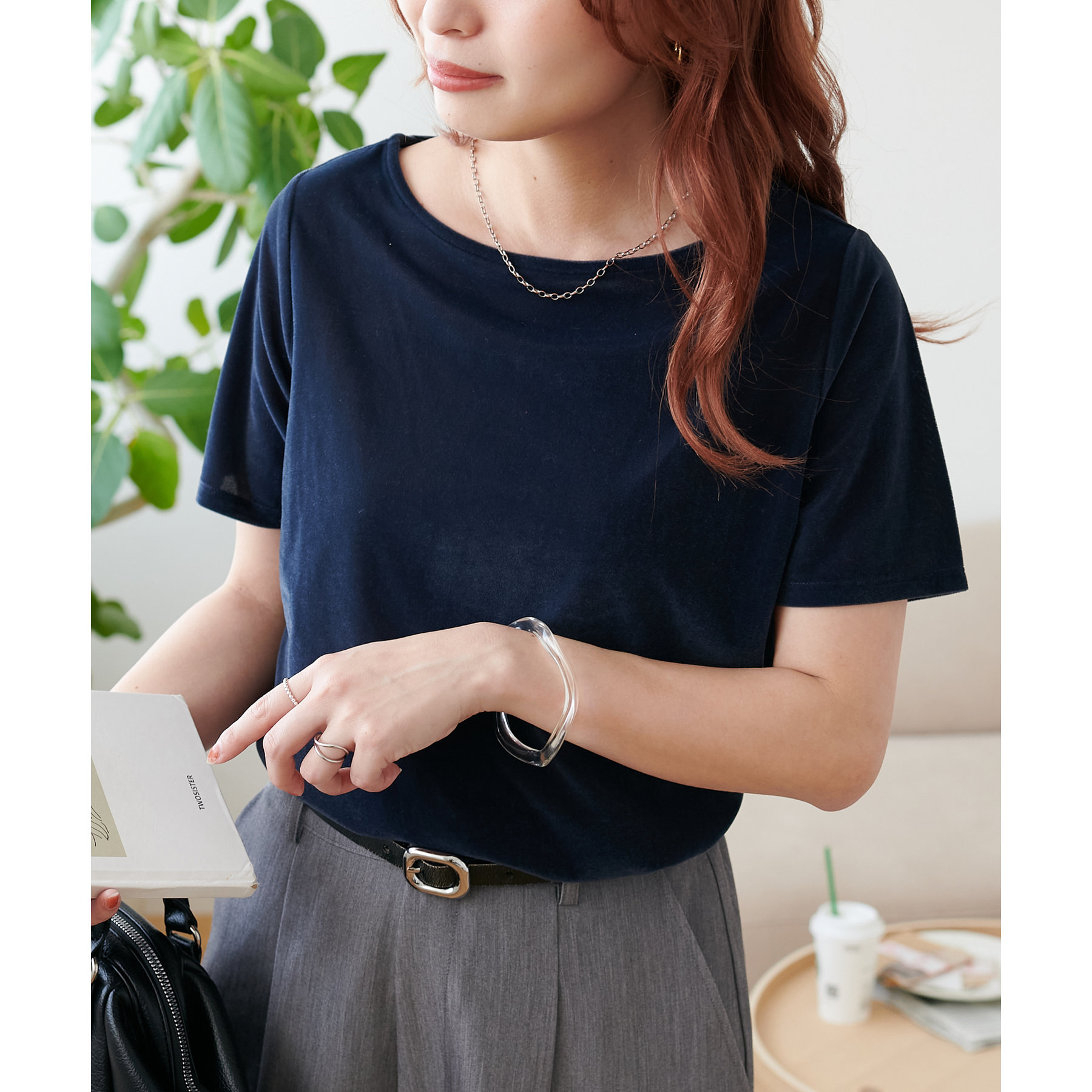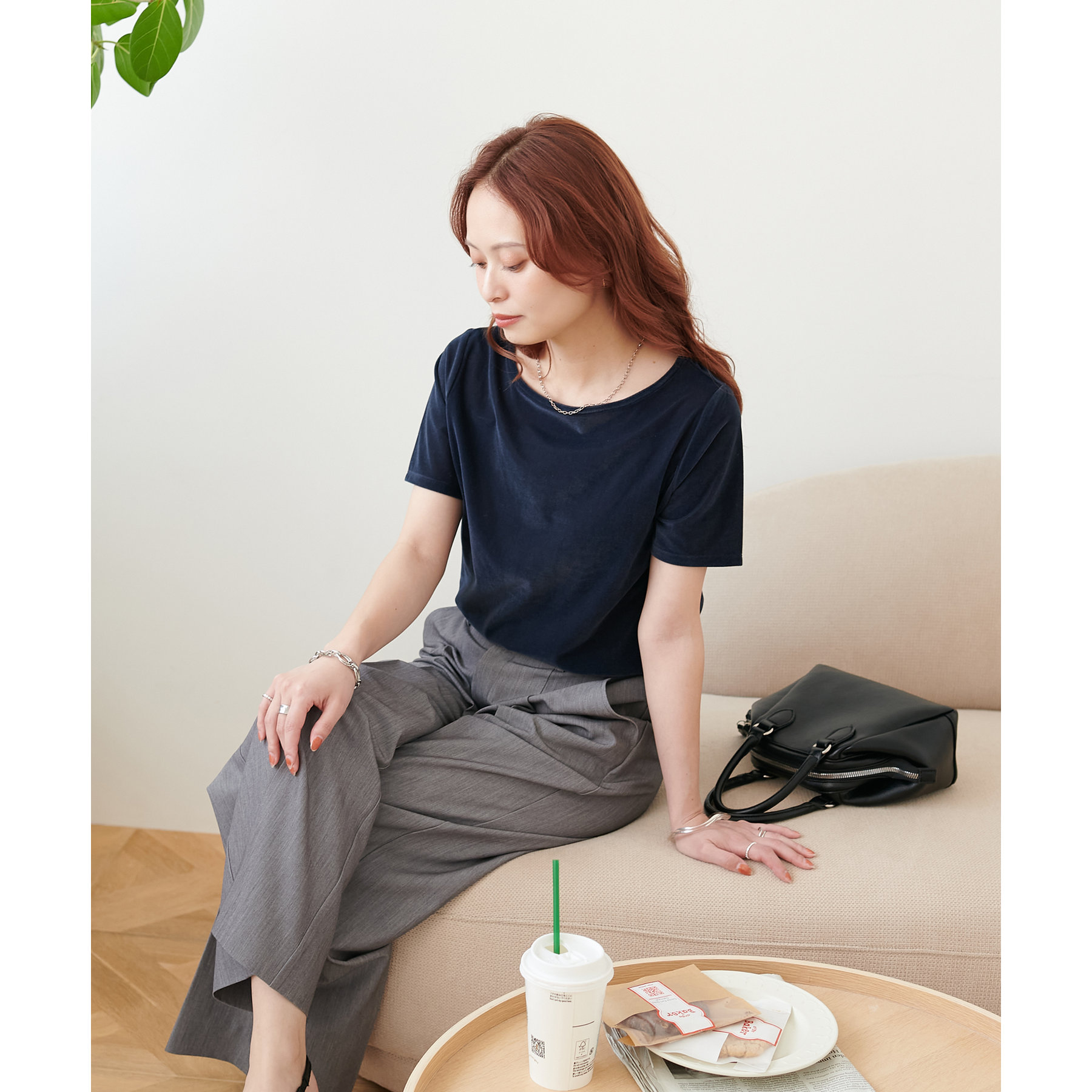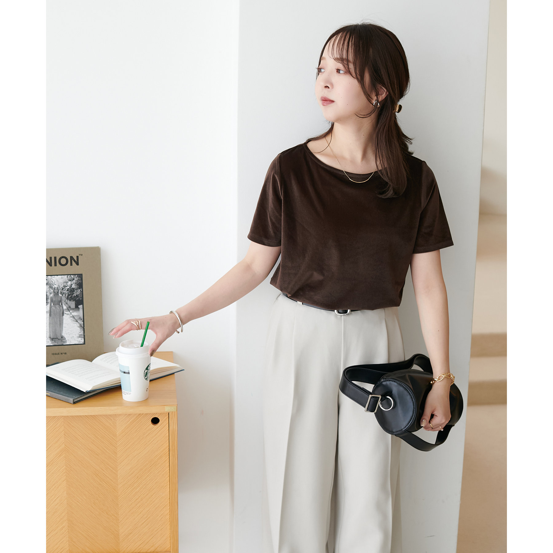 159cmスタッフ:ベロア素材ですが、やや透け感があることで抜け感があり夏も気軽に着ることができます。