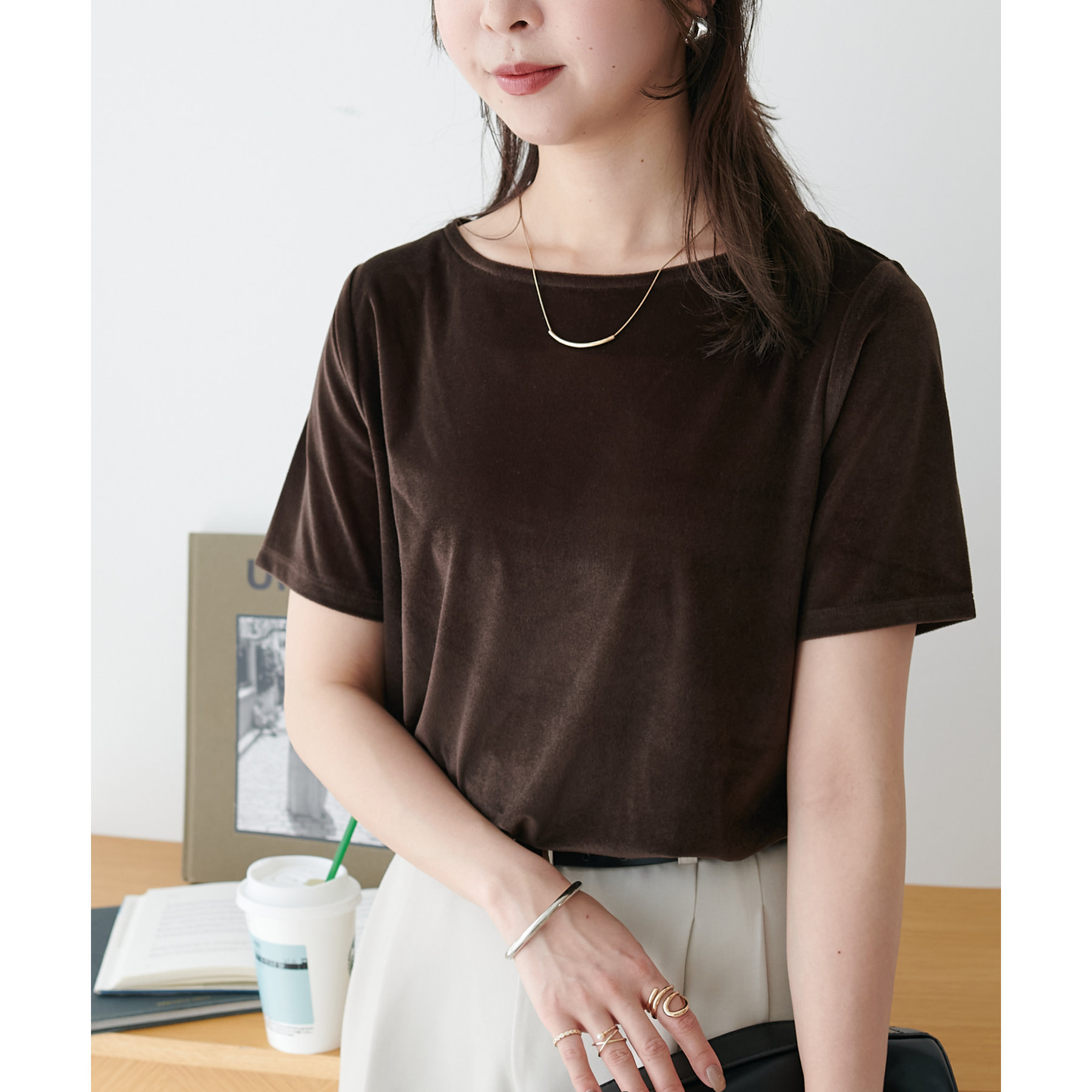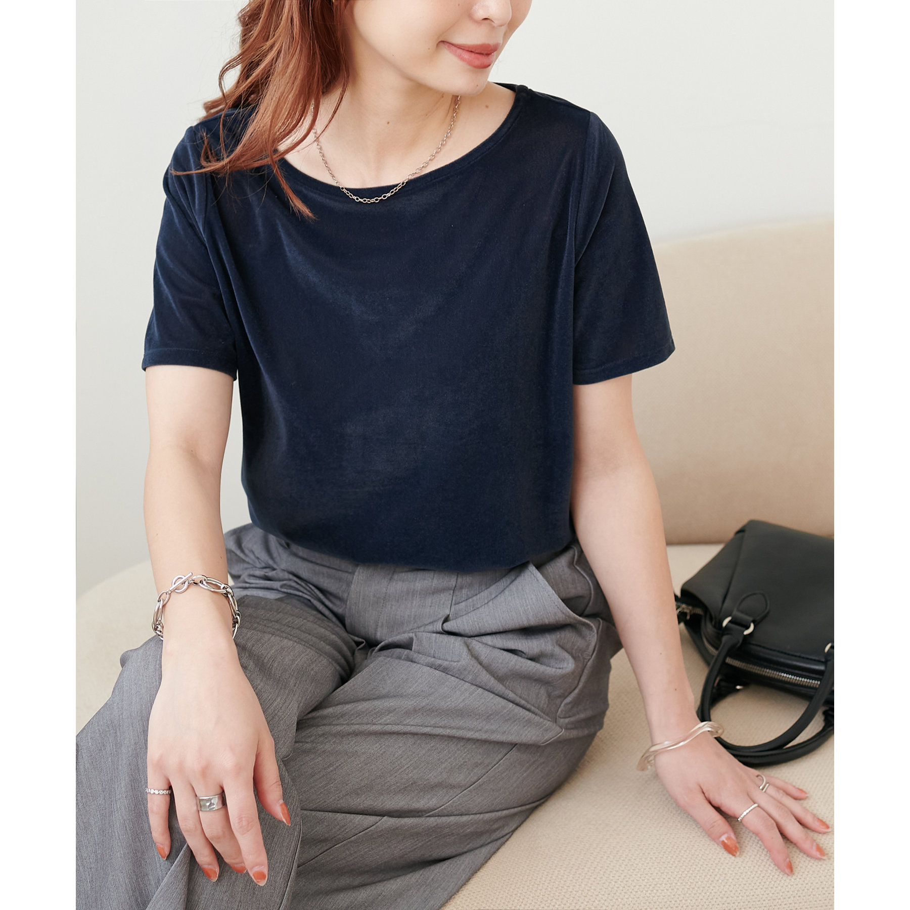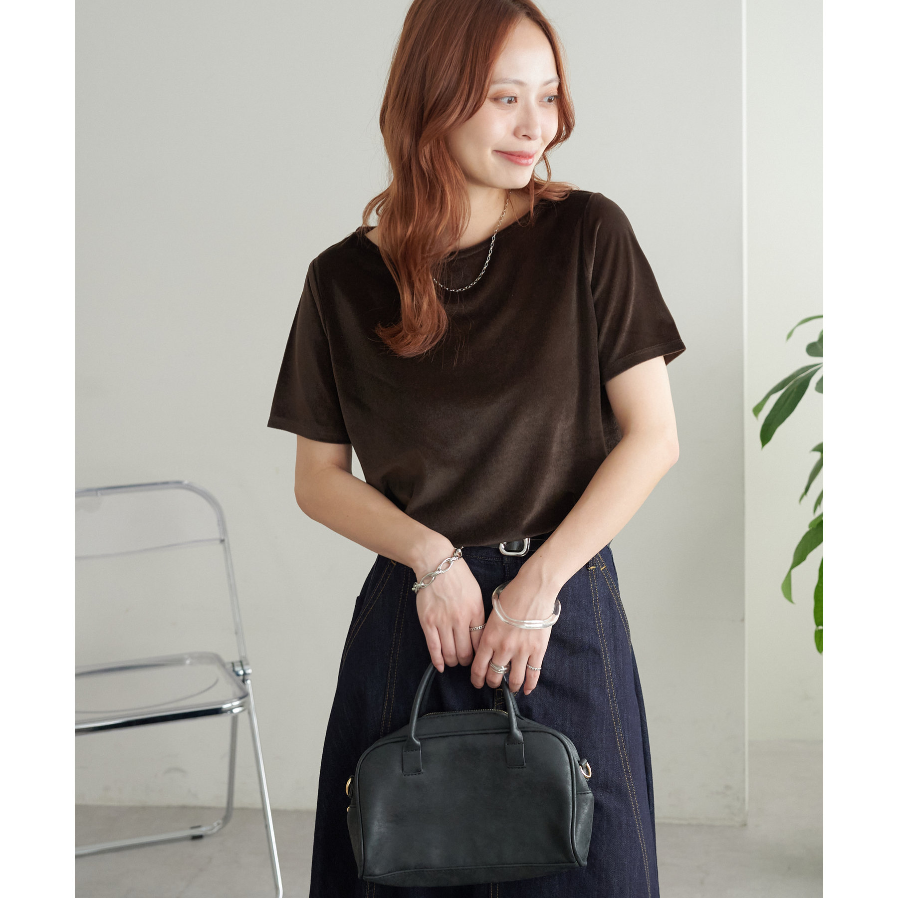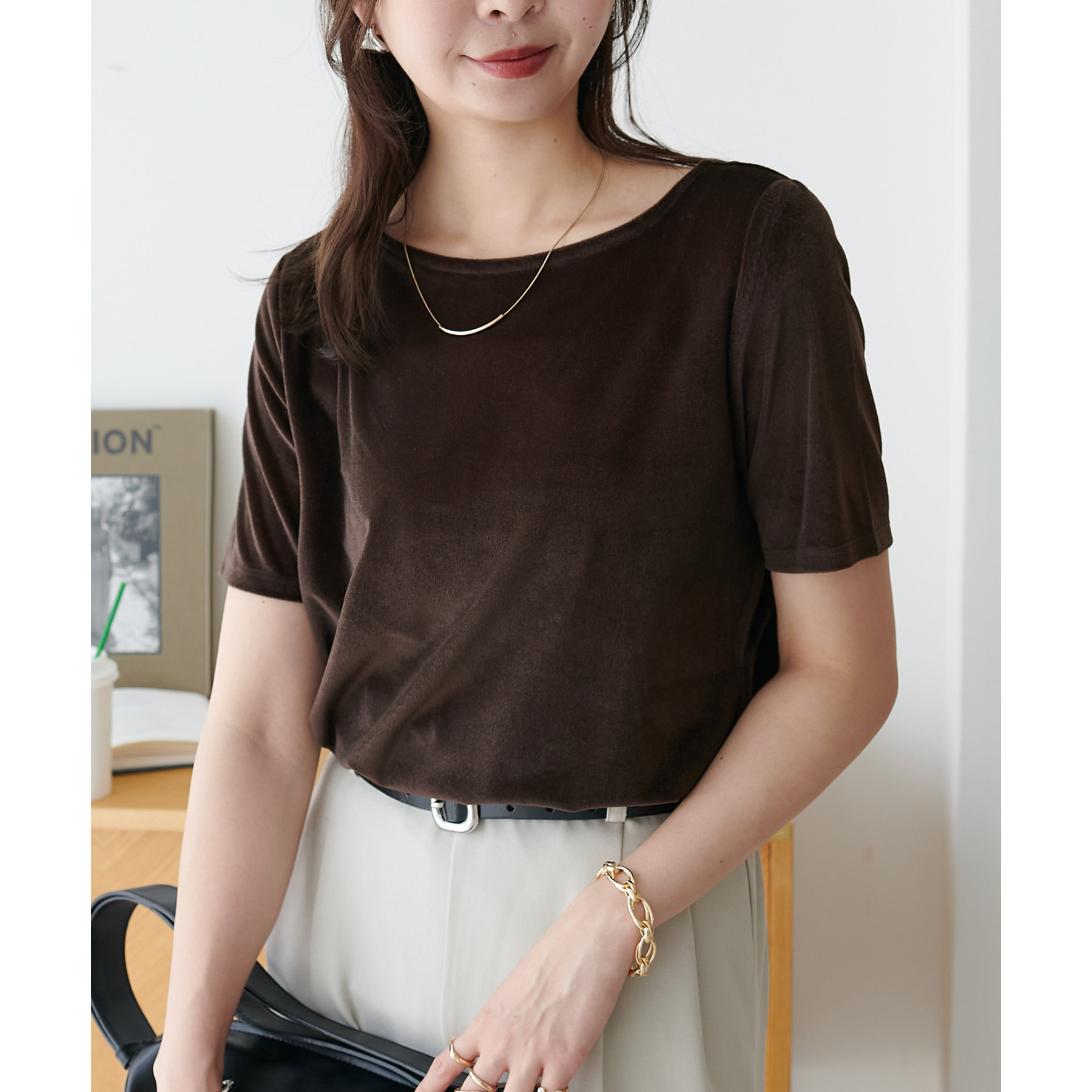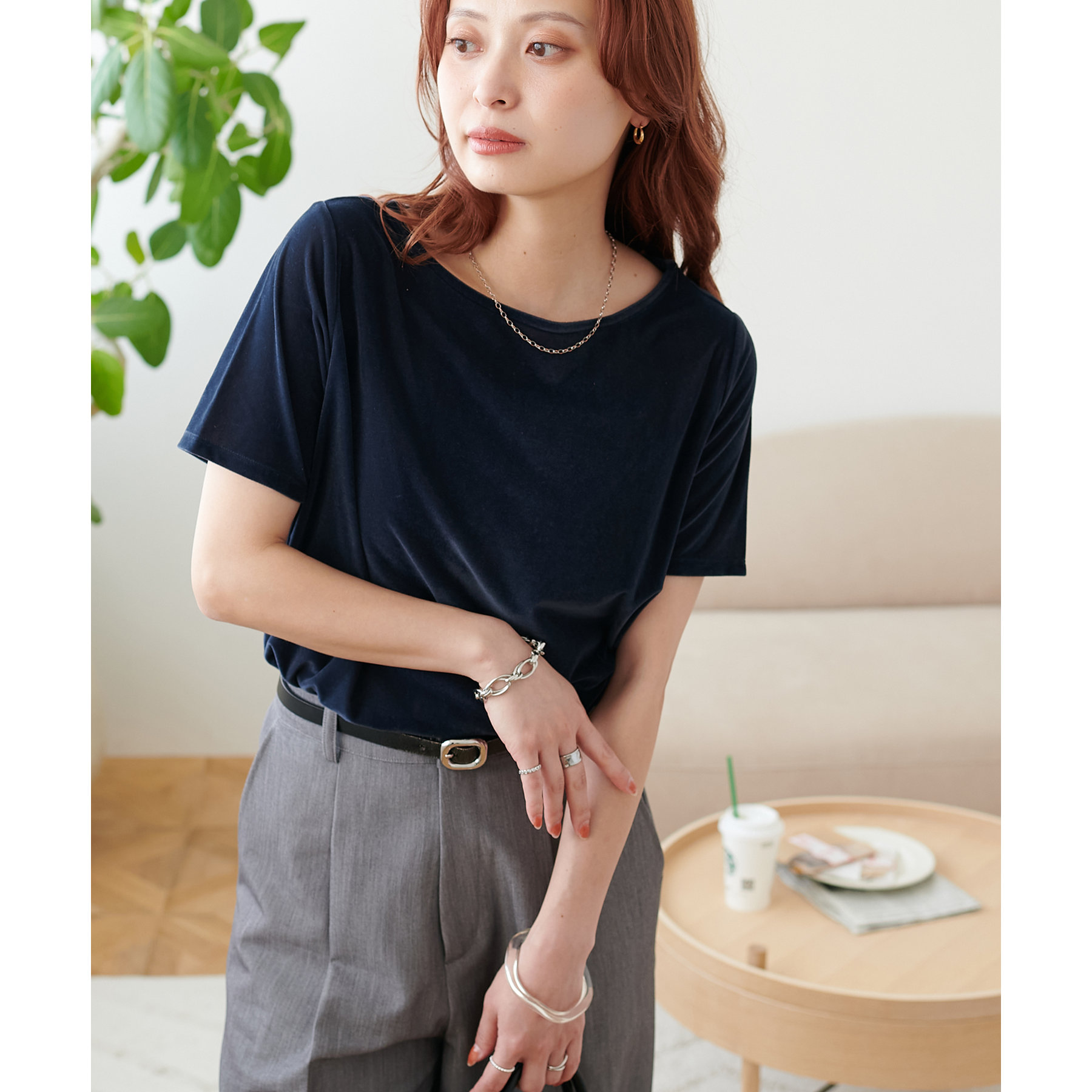 159cmスタッフ:ベロア素材ですが、やや透け感があることで抜け感があり夏も気軽に着ることができます。
