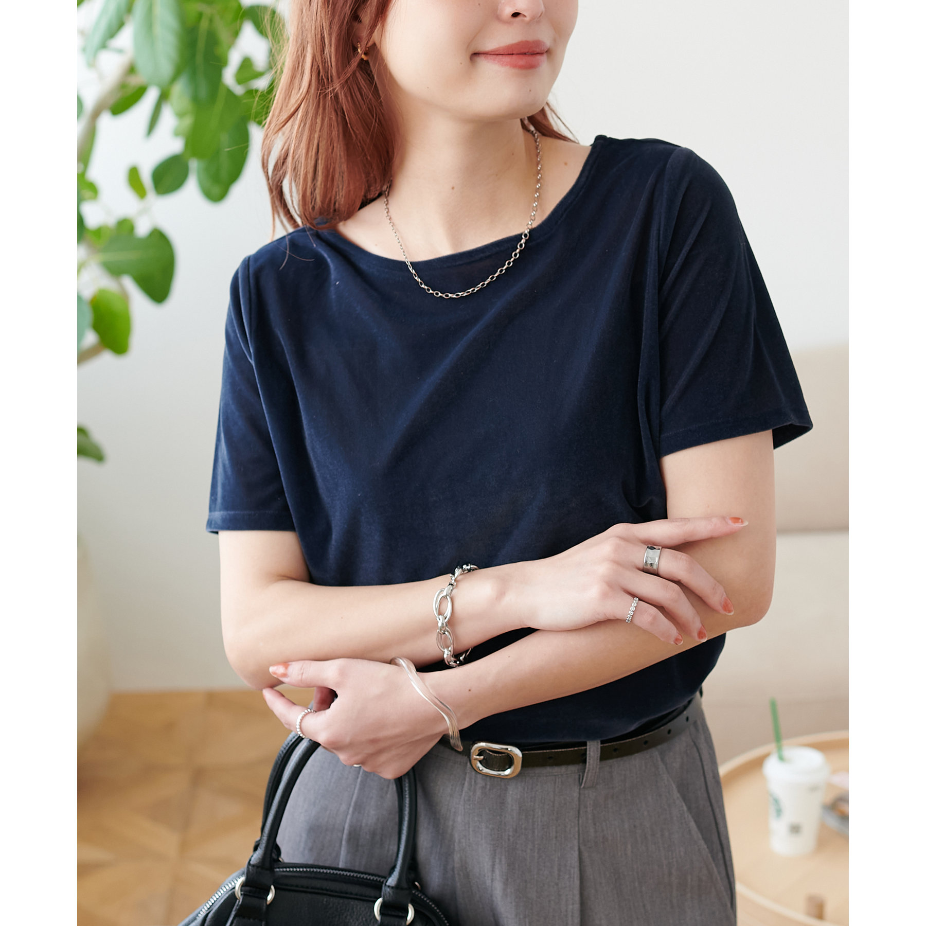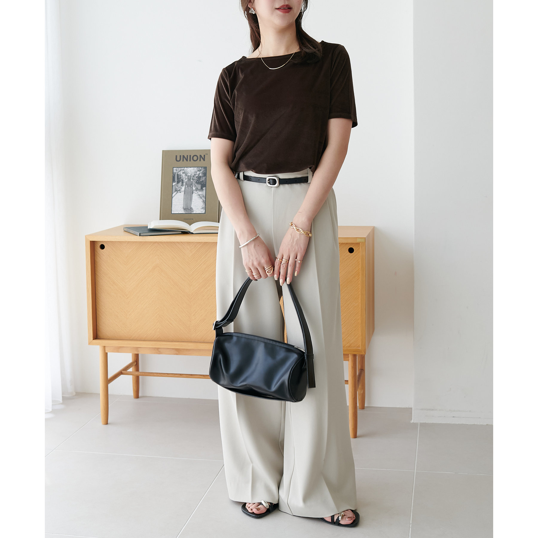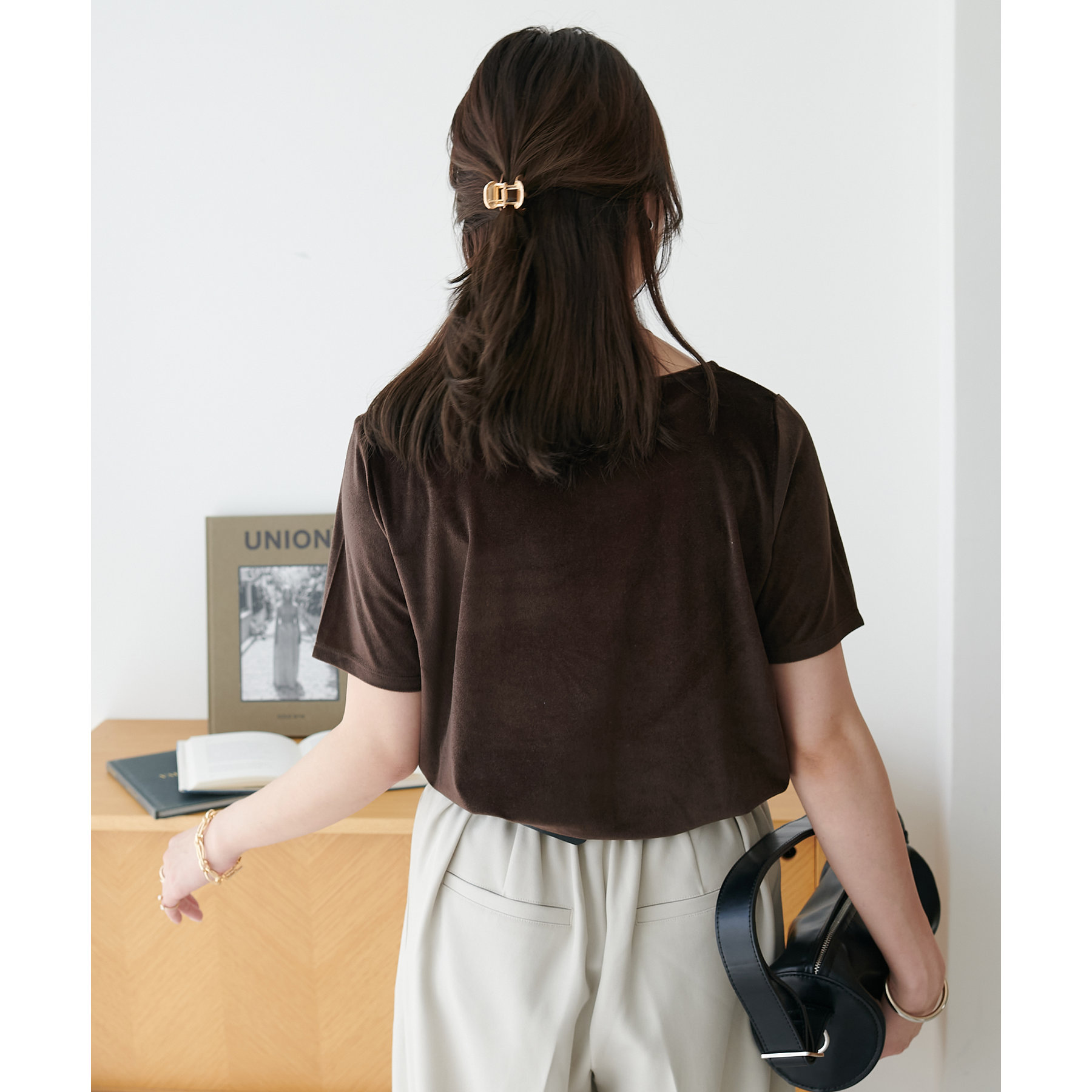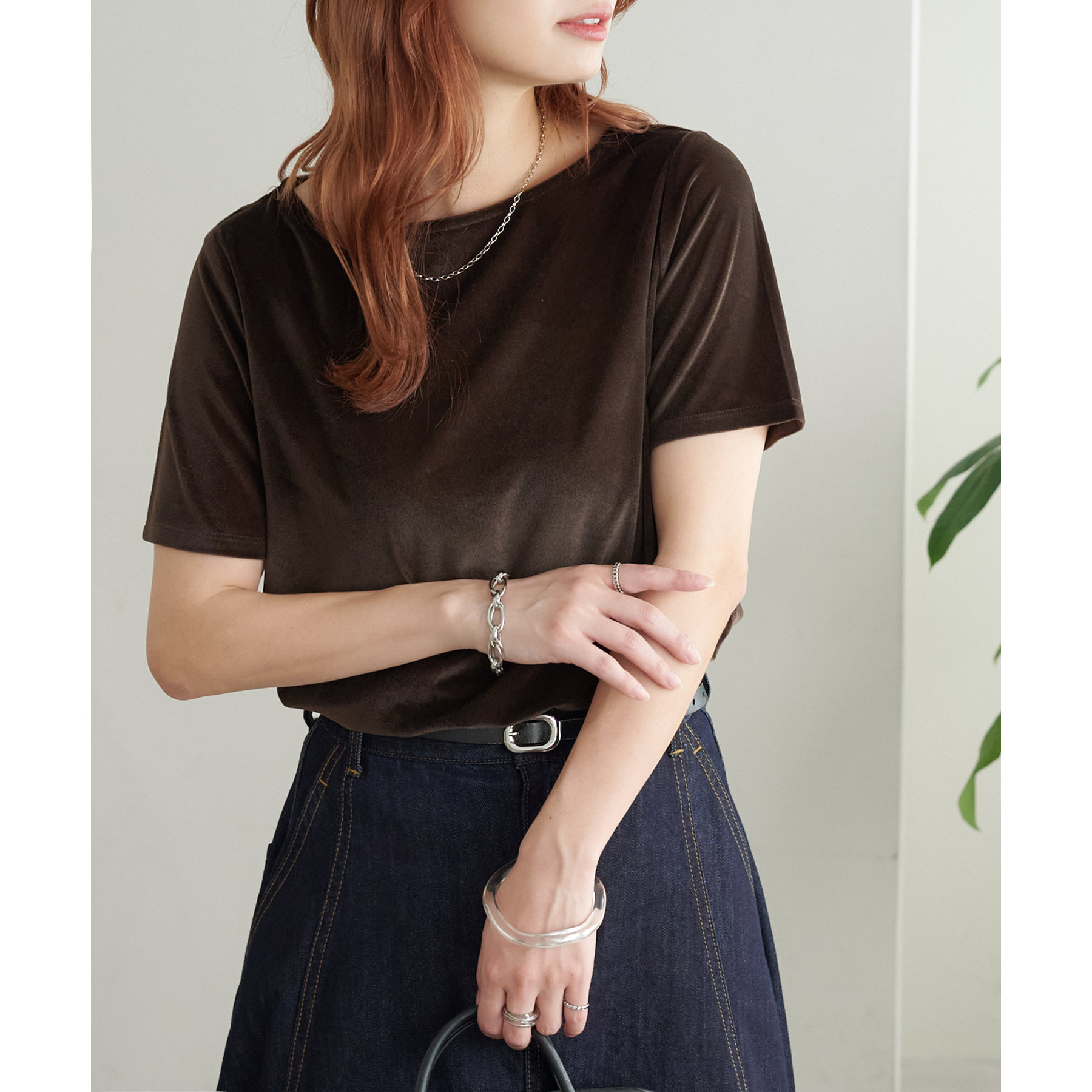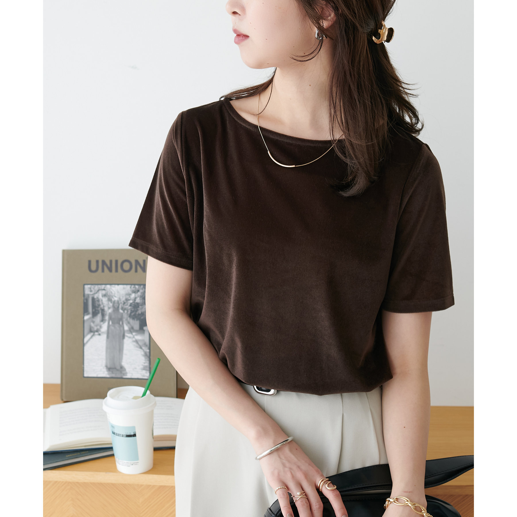 159cmスタッフ:ベロア素材ですが、やや透け感があることで抜け感があり夏も気軽に着ることができます。