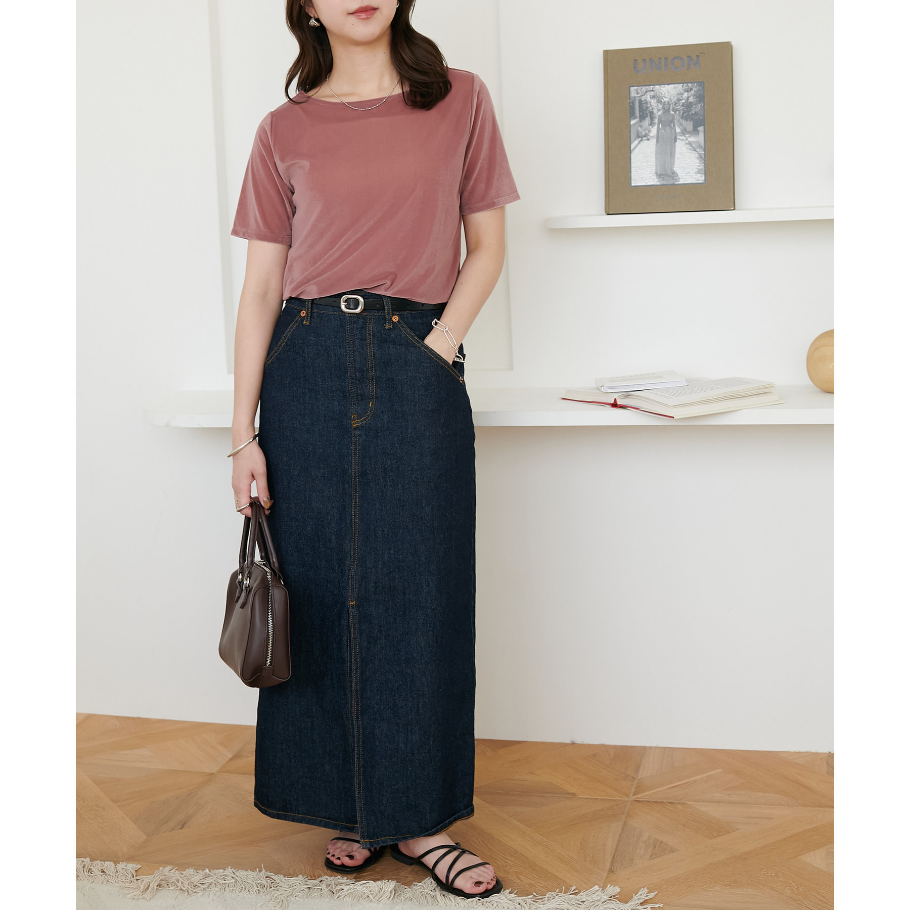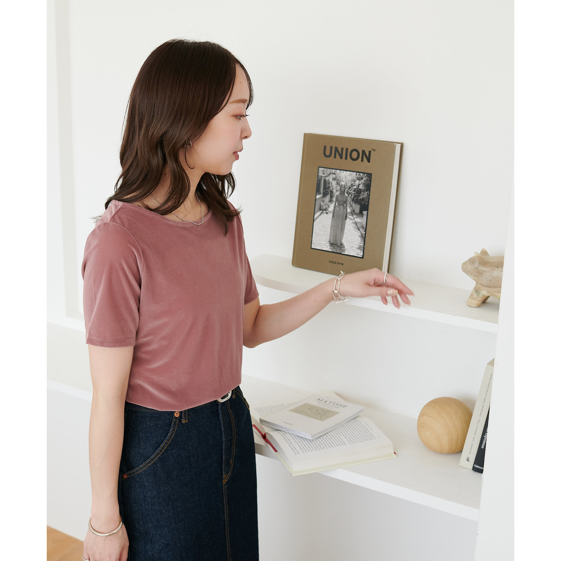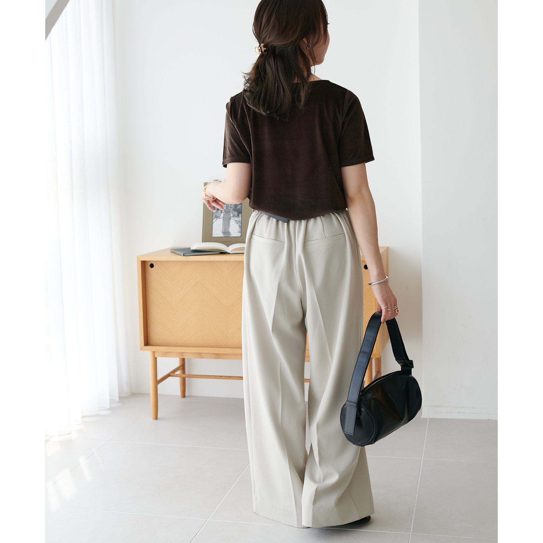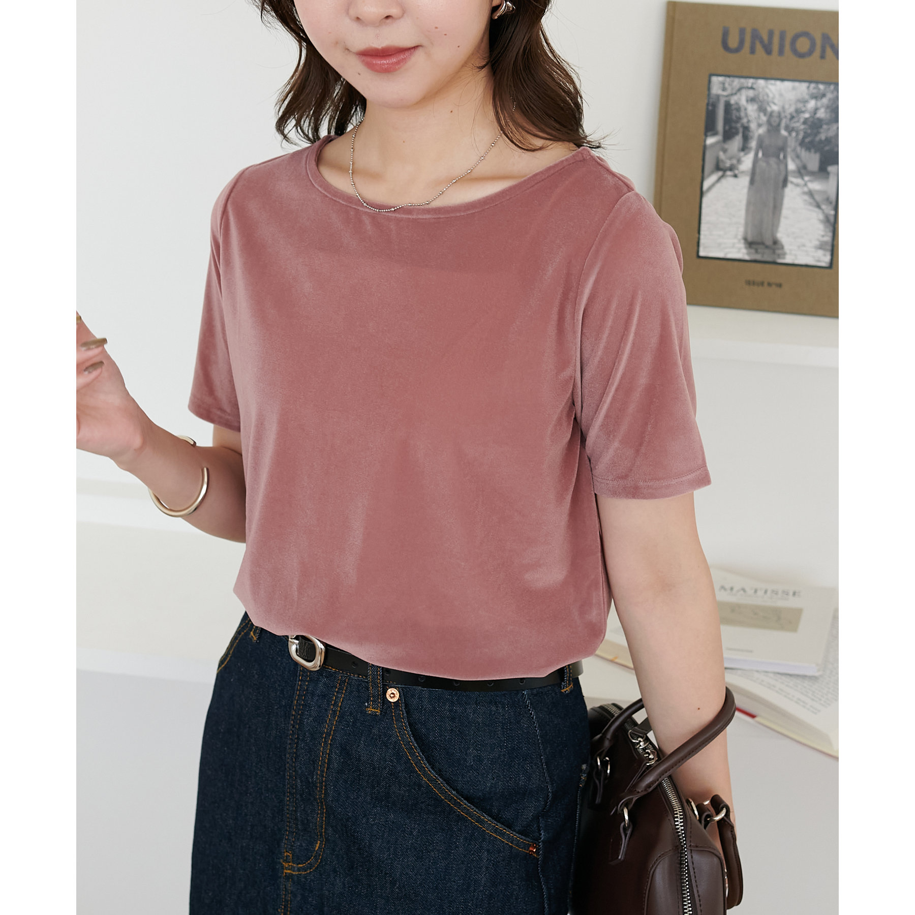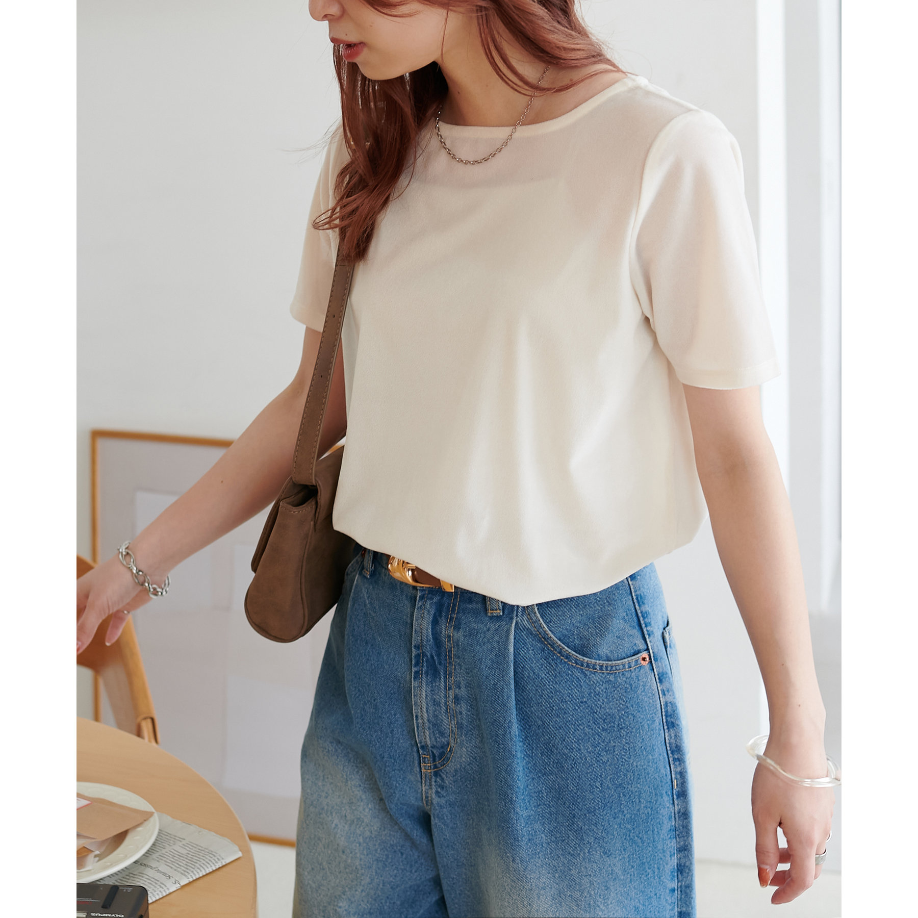 159cmスタッフ:ベロア素材ですが、やや透け感があることで抜け感があり夏も気軽に着ることができます。