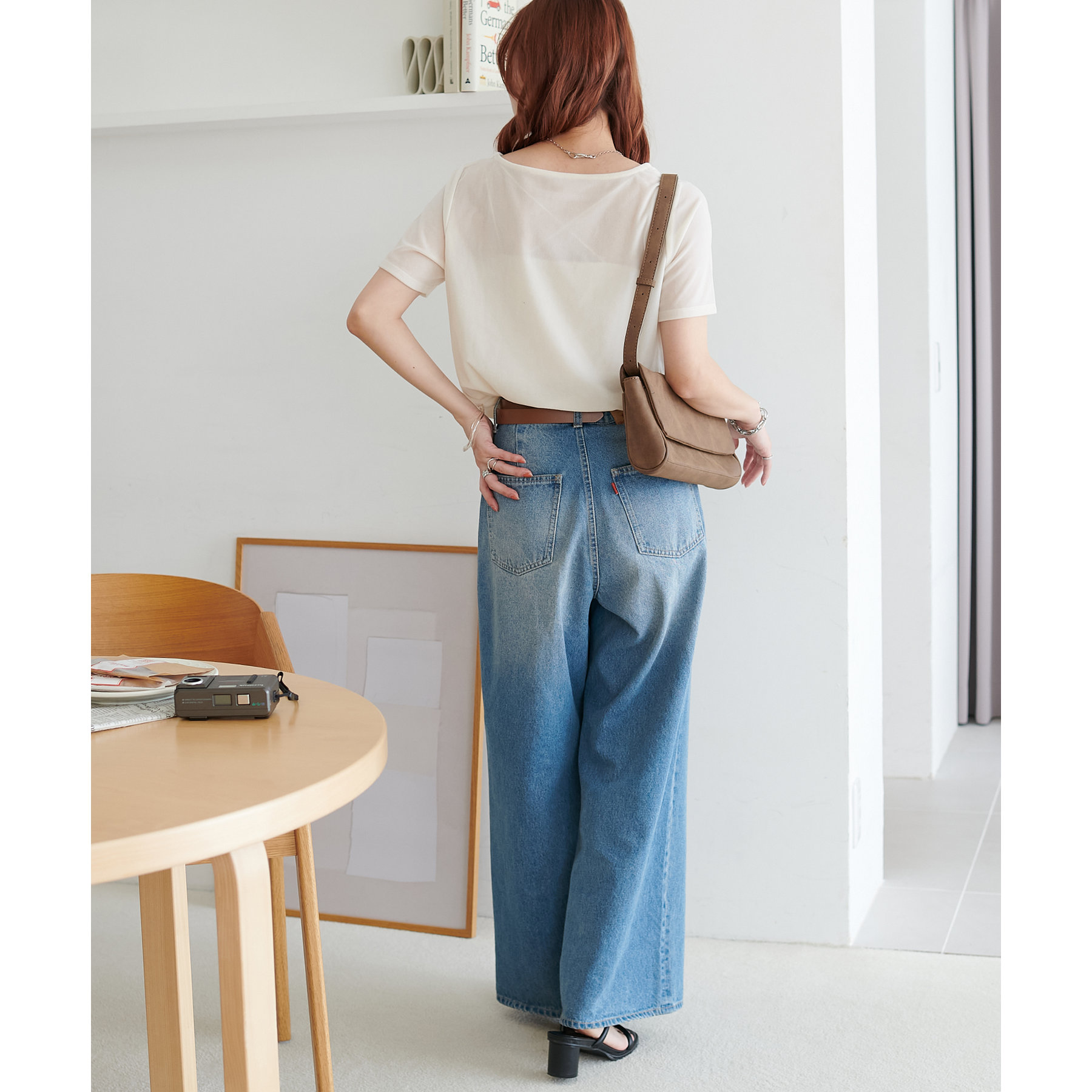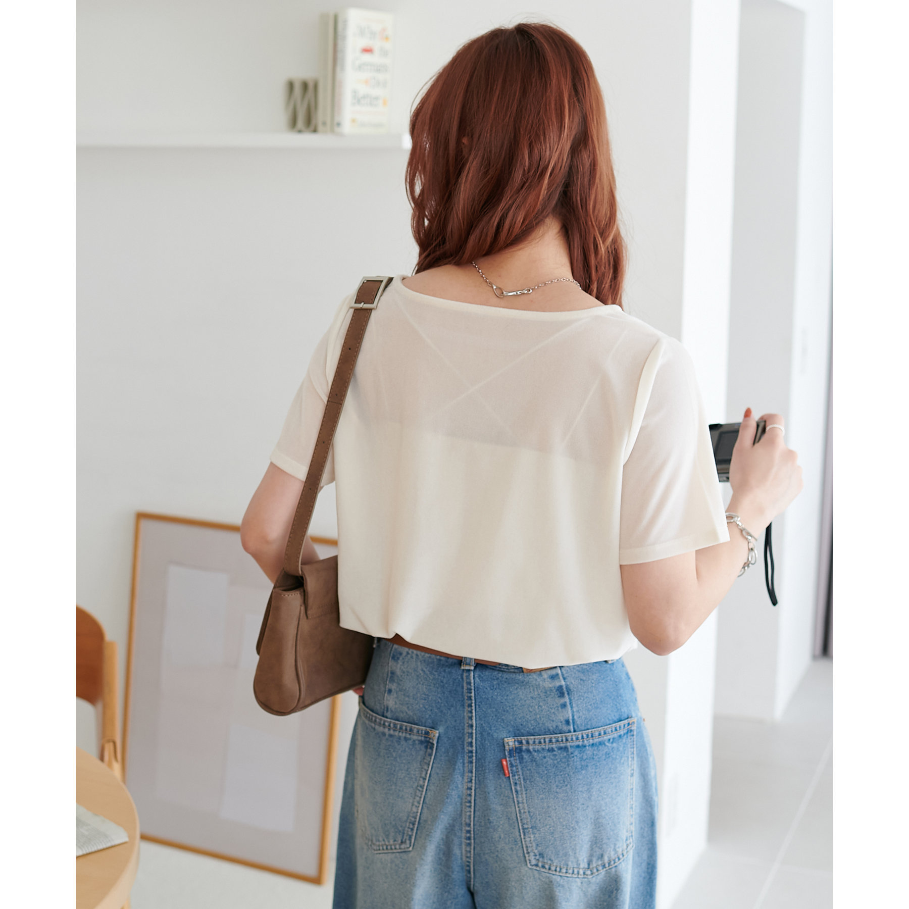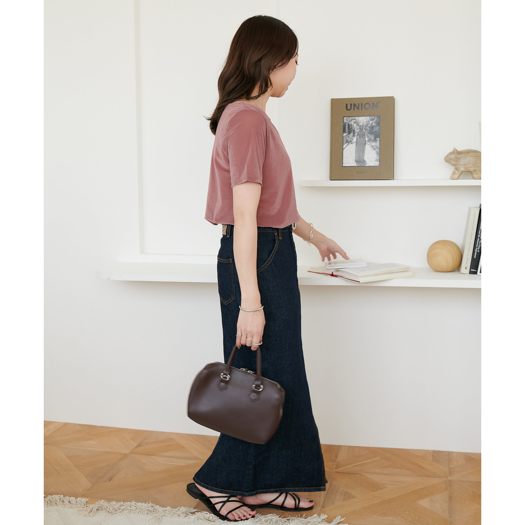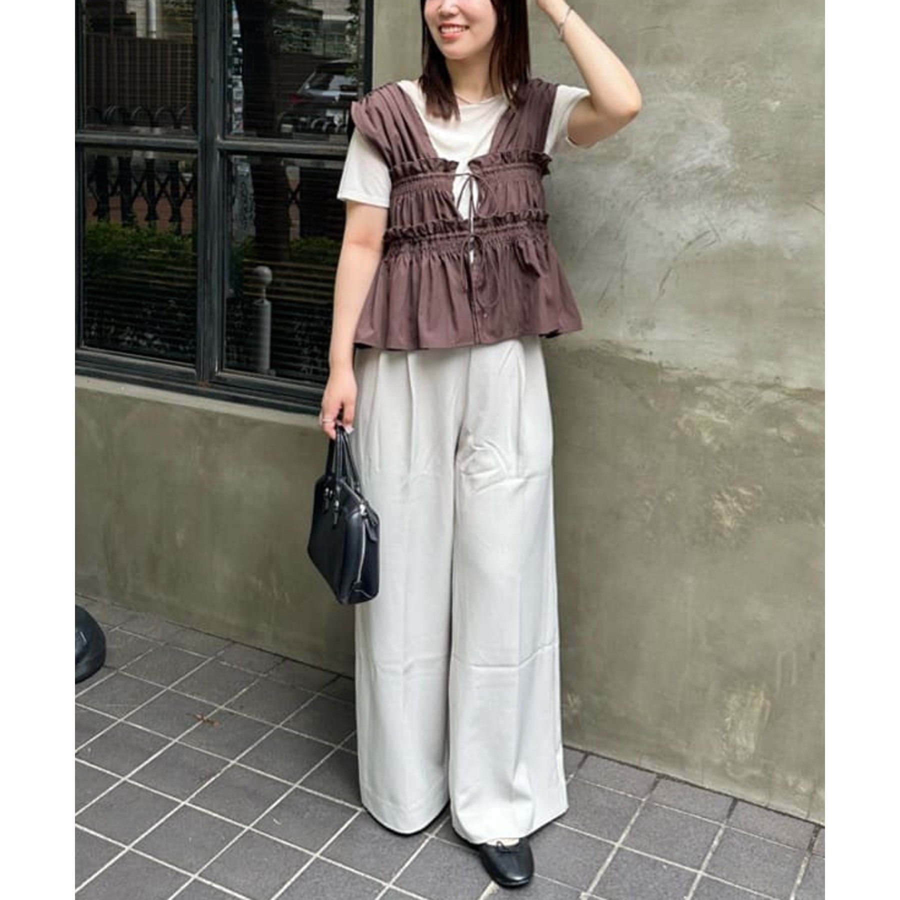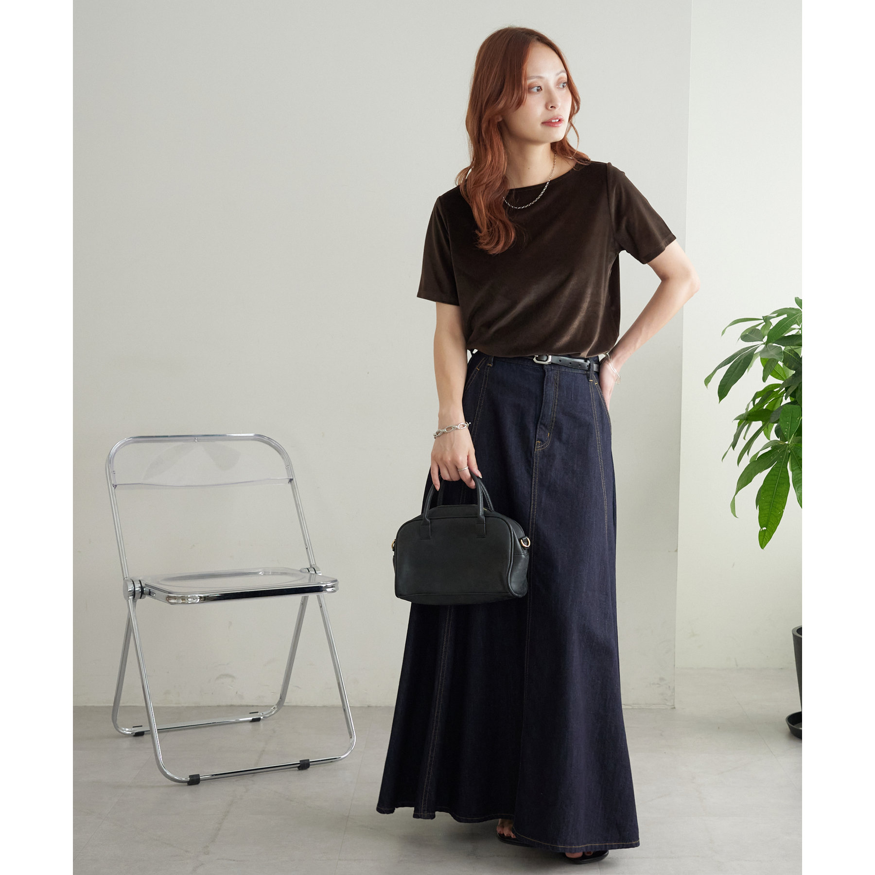 159cmスタッフ:ベロア素材ですが、やや透け感があることで抜け感があり夏も気軽に着ることができます。