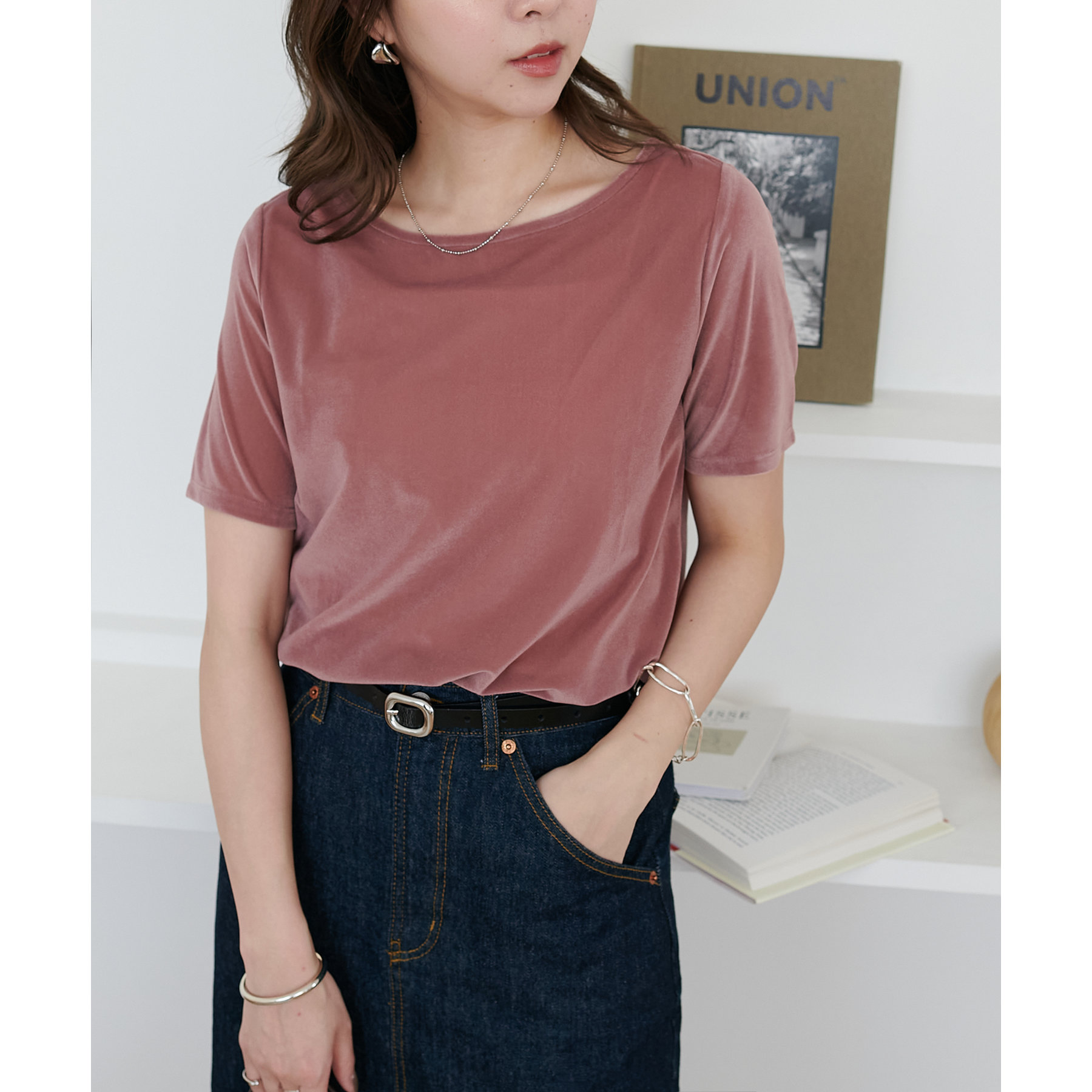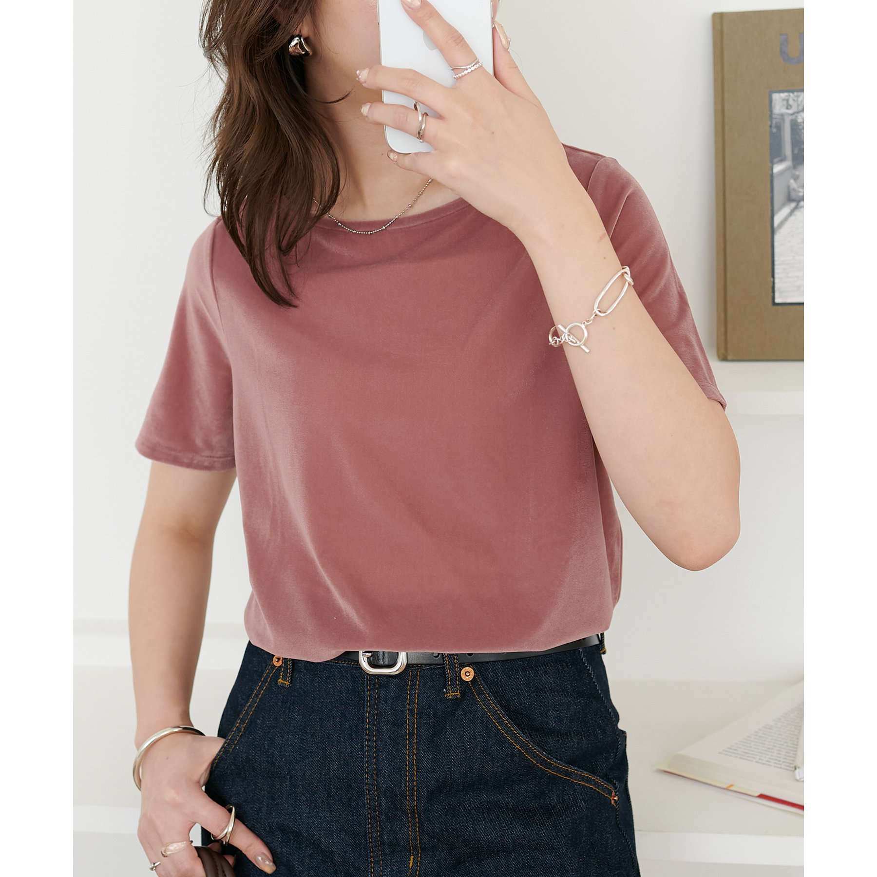 ベロア素材のTシャツはべーしっくなTシャツよりもお洒落に着こなすことができます。