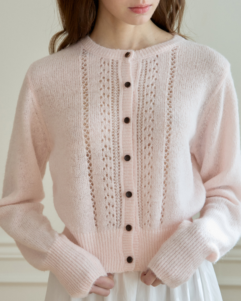 DEWY PUNCHING KNIT CARDIGAN_PINK