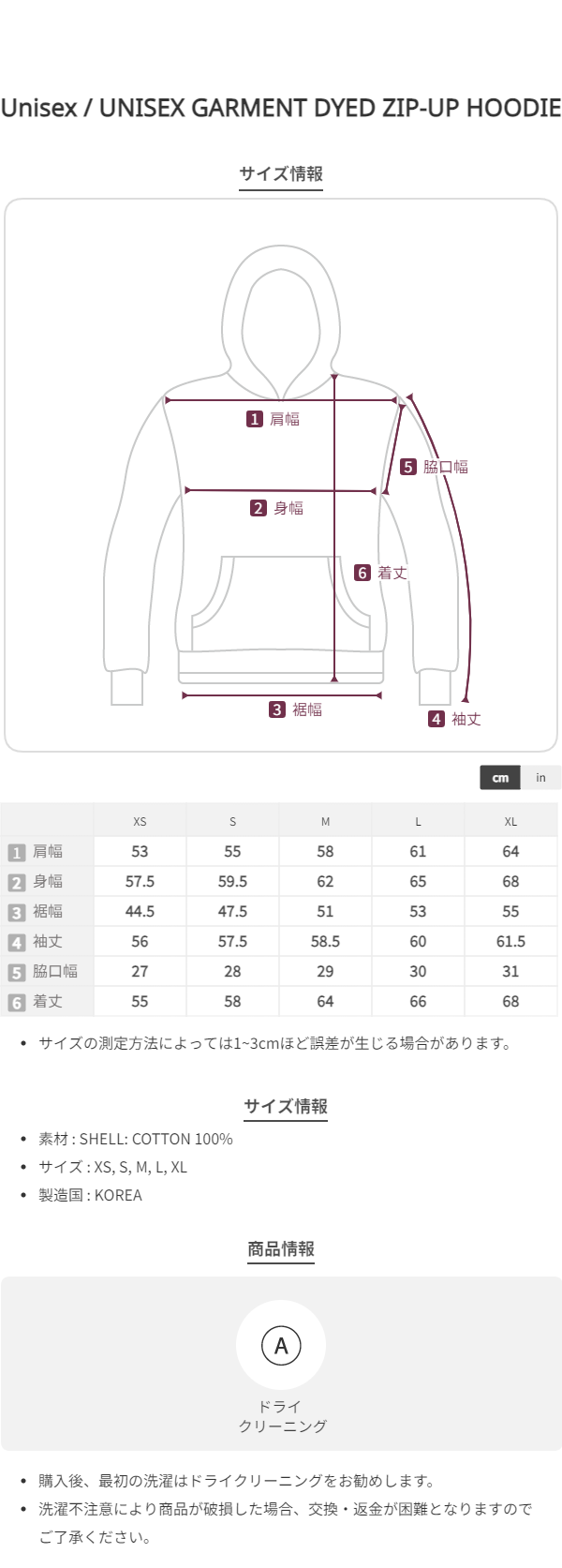 UNISEX GARMENT DYED ZIP-UP HOODIE NAVY_M_UDTS6A114N2