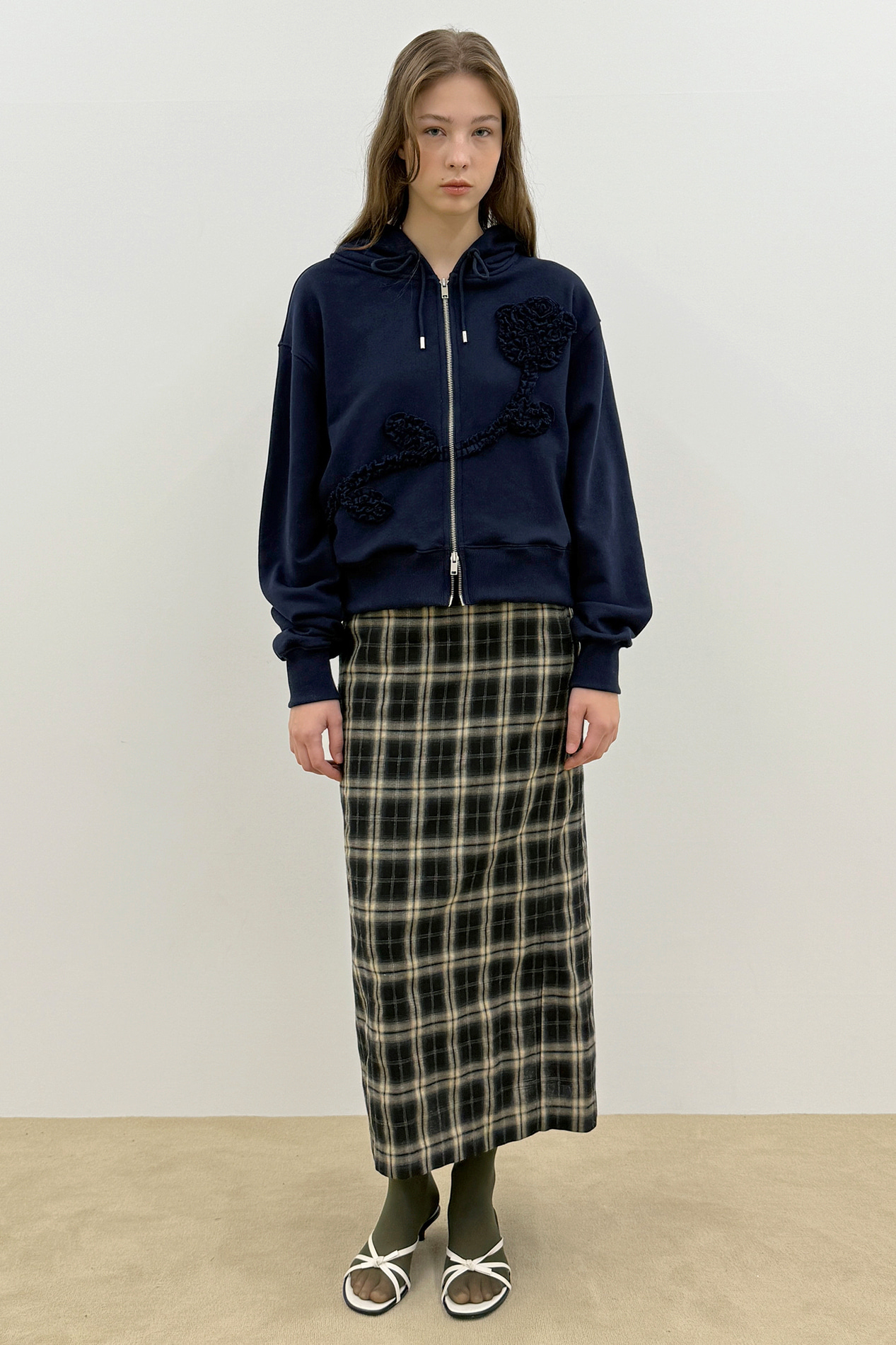 Rose Frill Hoodie Zipup (Navy)