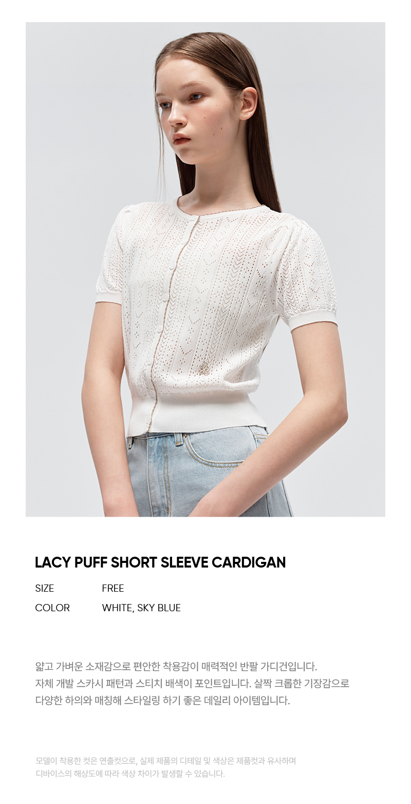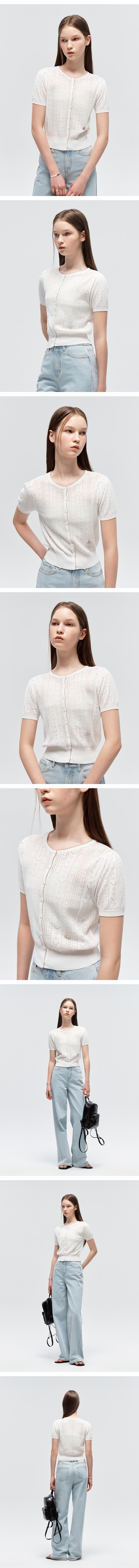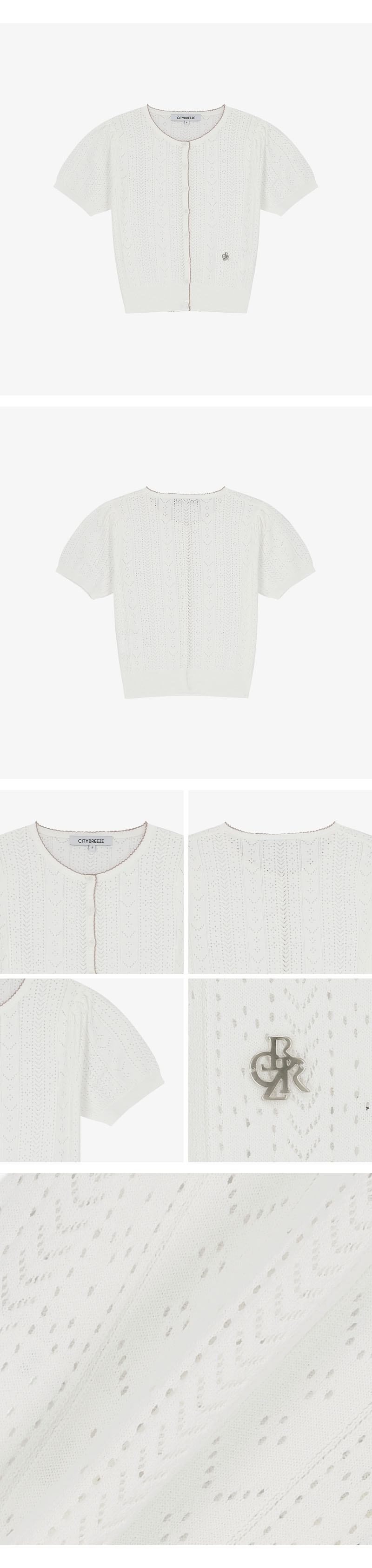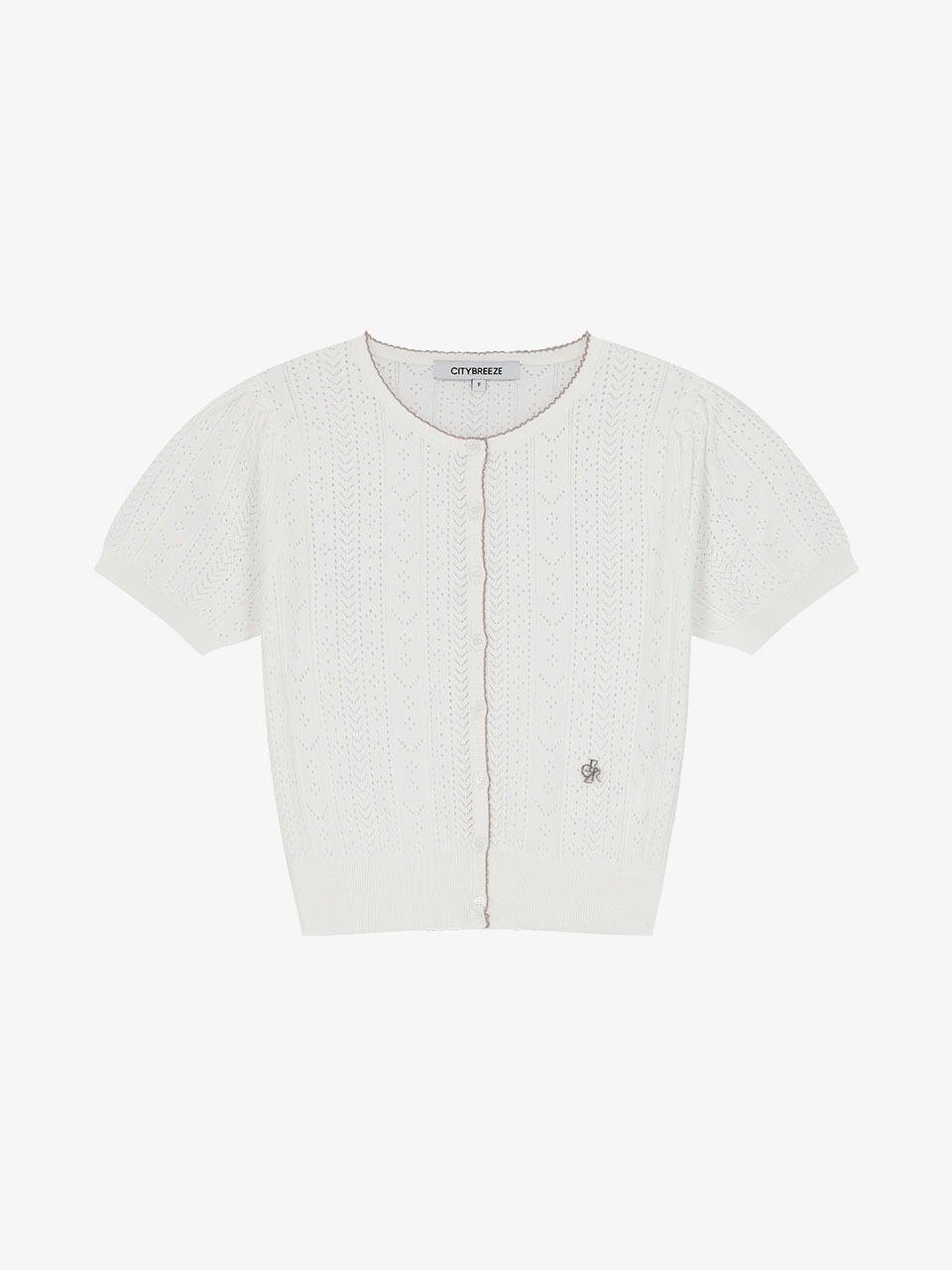 (CTH2) Pointelle Puff Short Sleeve Cardigan-WHITE