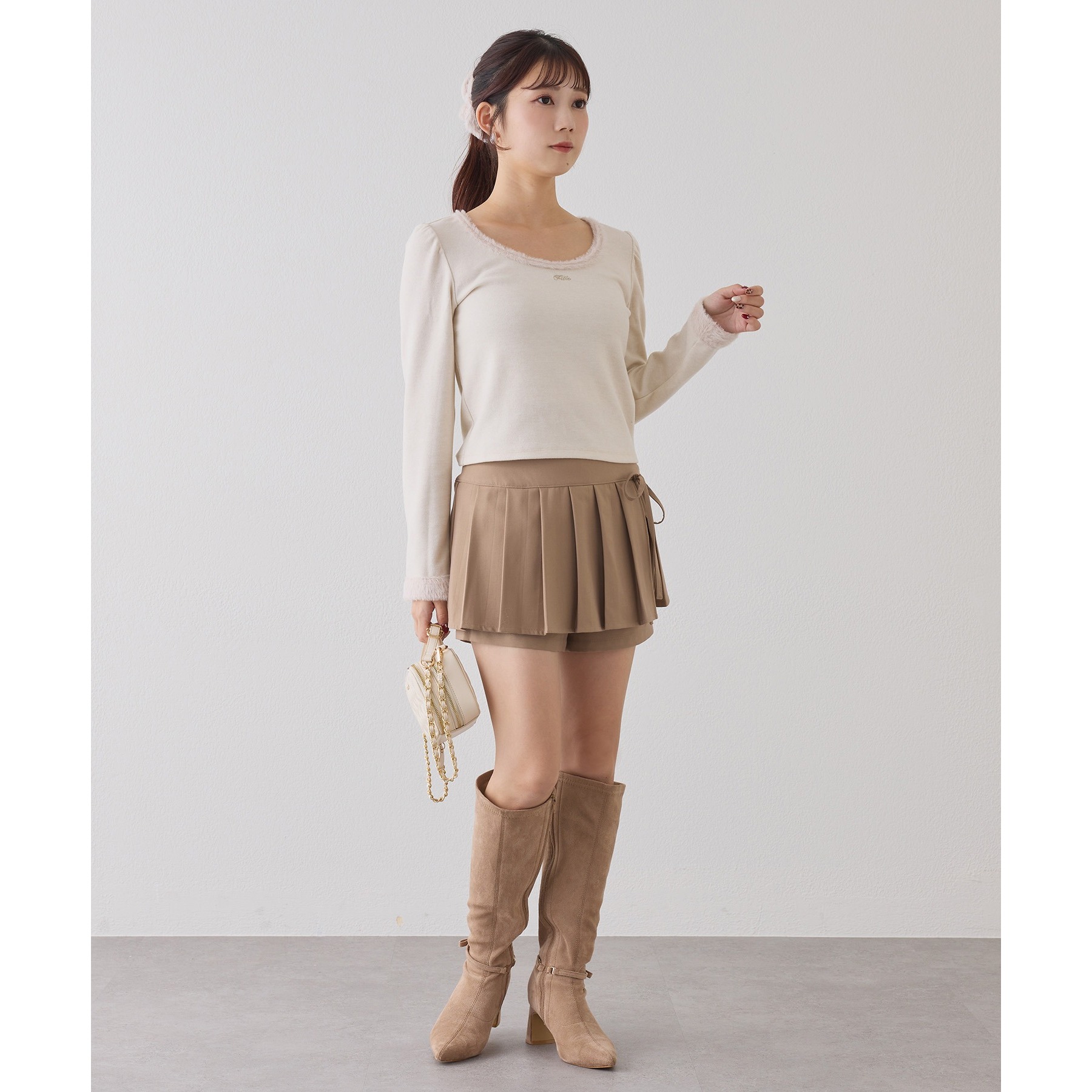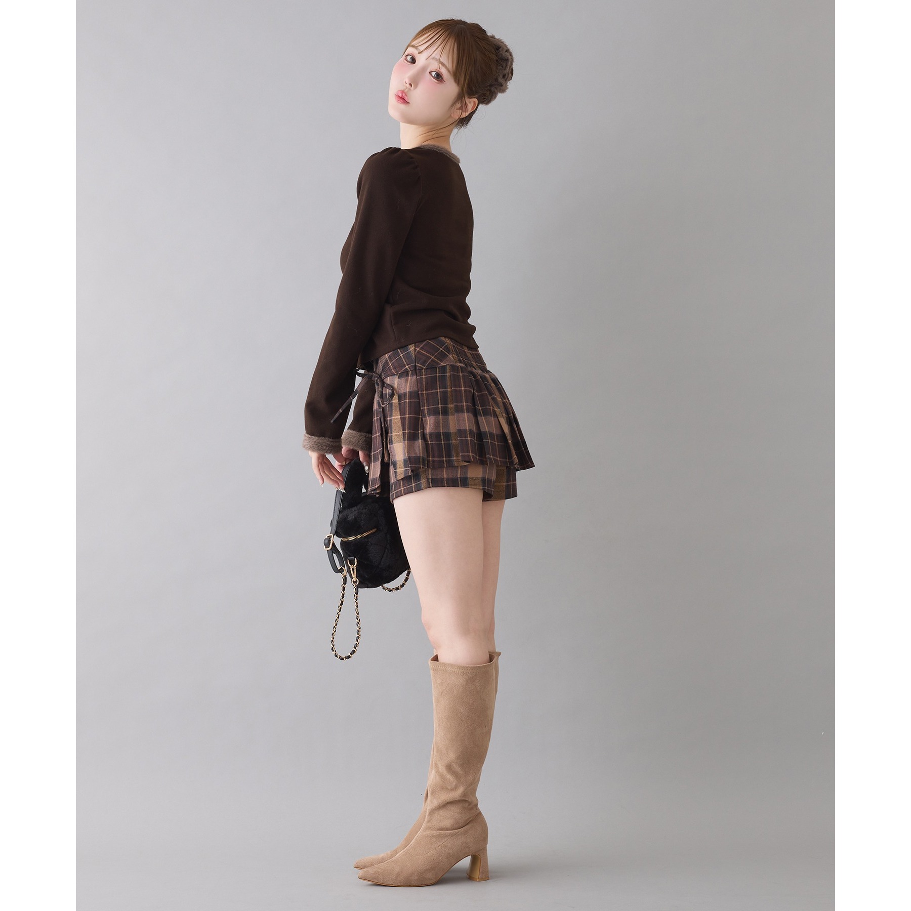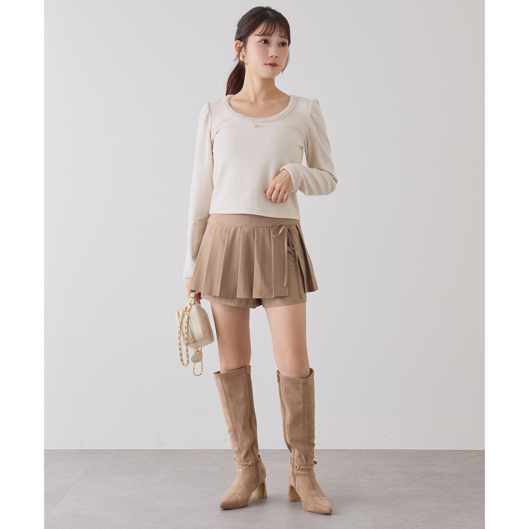 そのまま1枚でミニワンピース風に着こなしてブーツ合わせの大人ガーリーコーデに