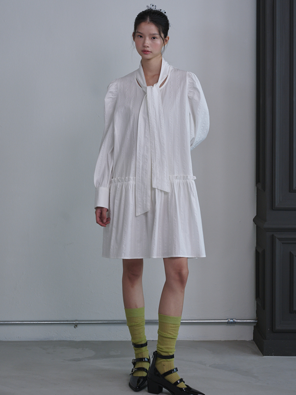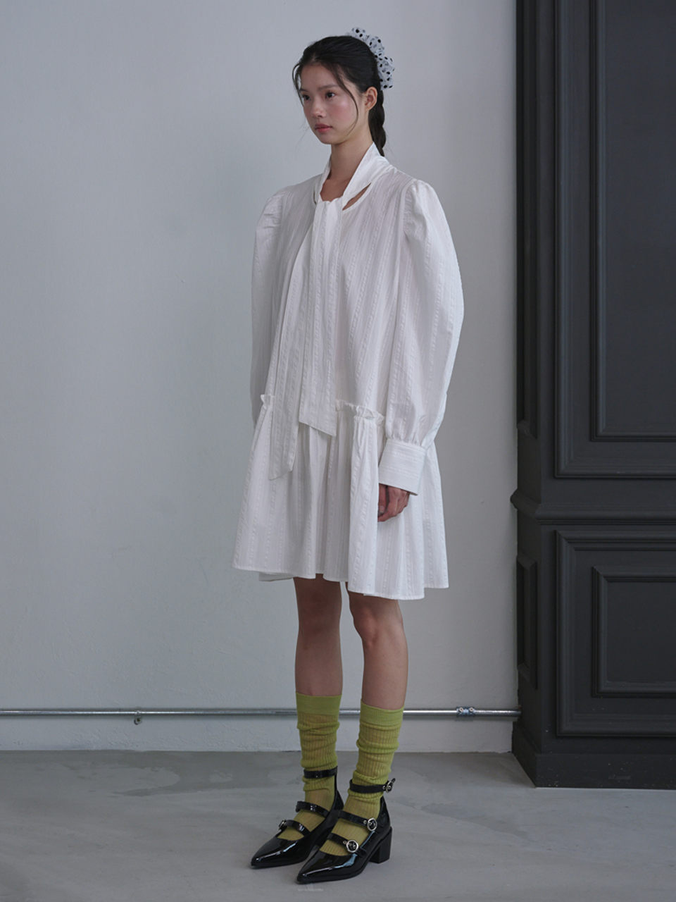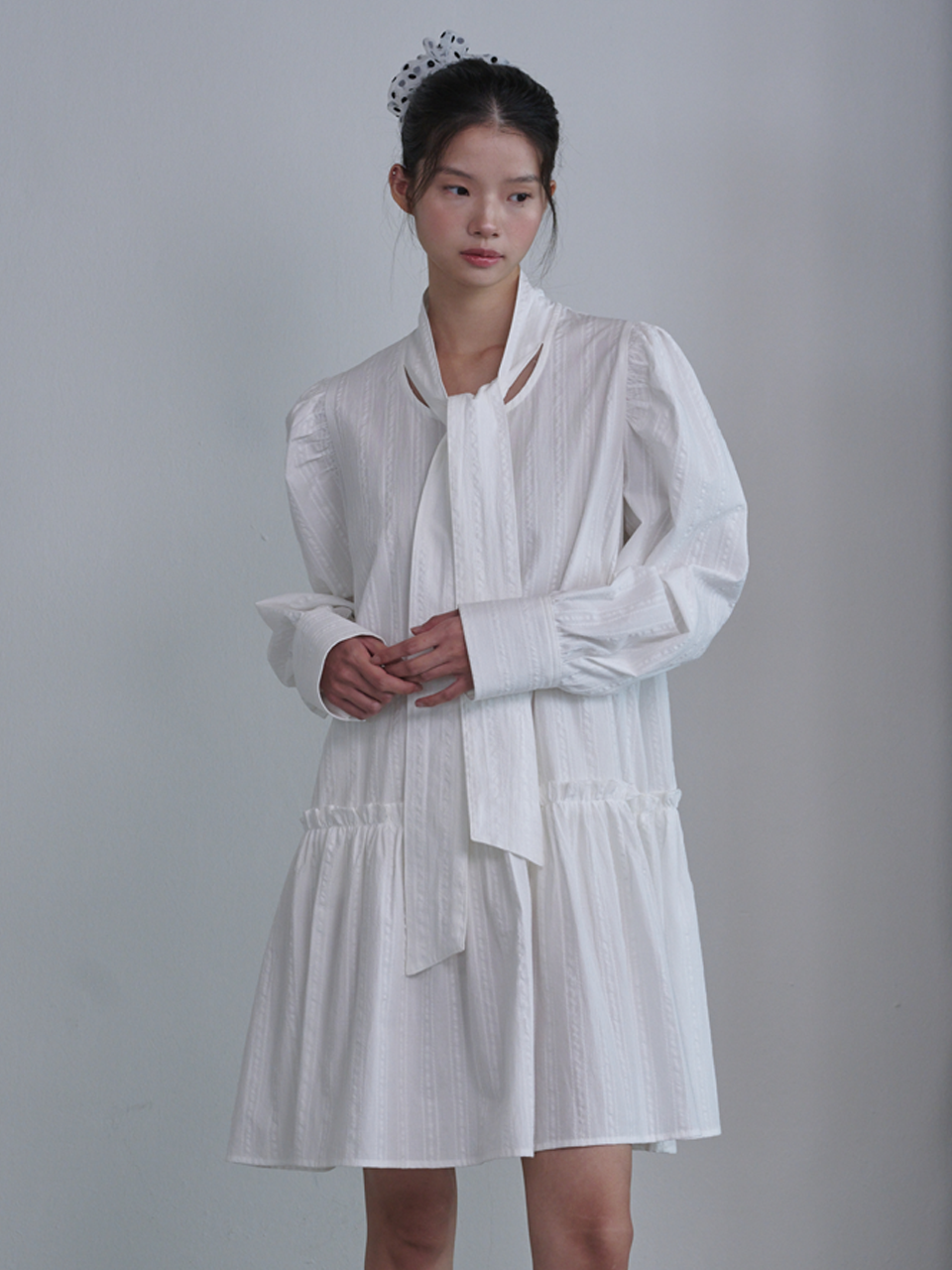 Puff Sleeve Scarf Mini Dress_White