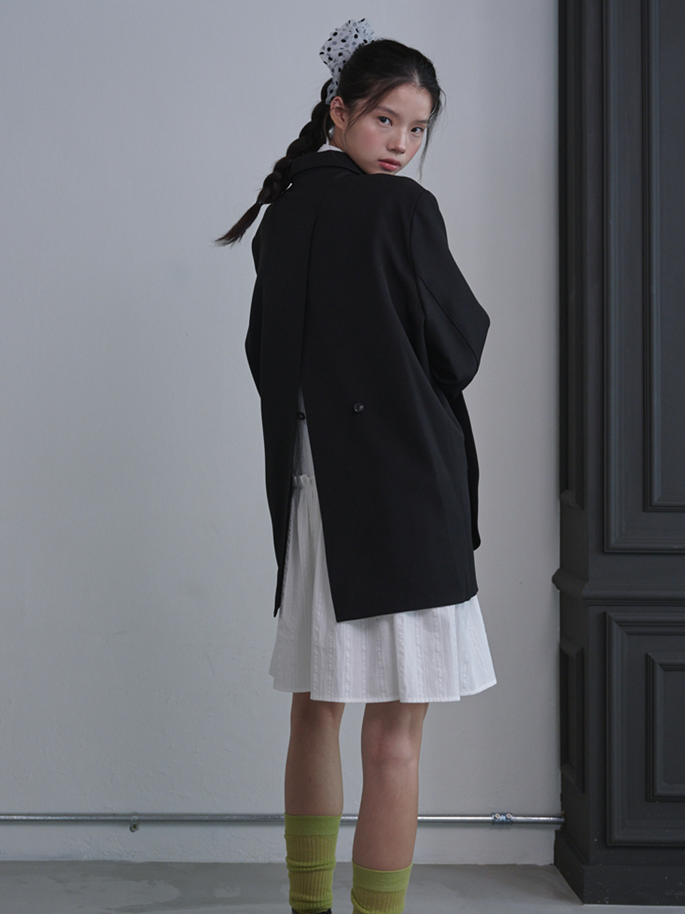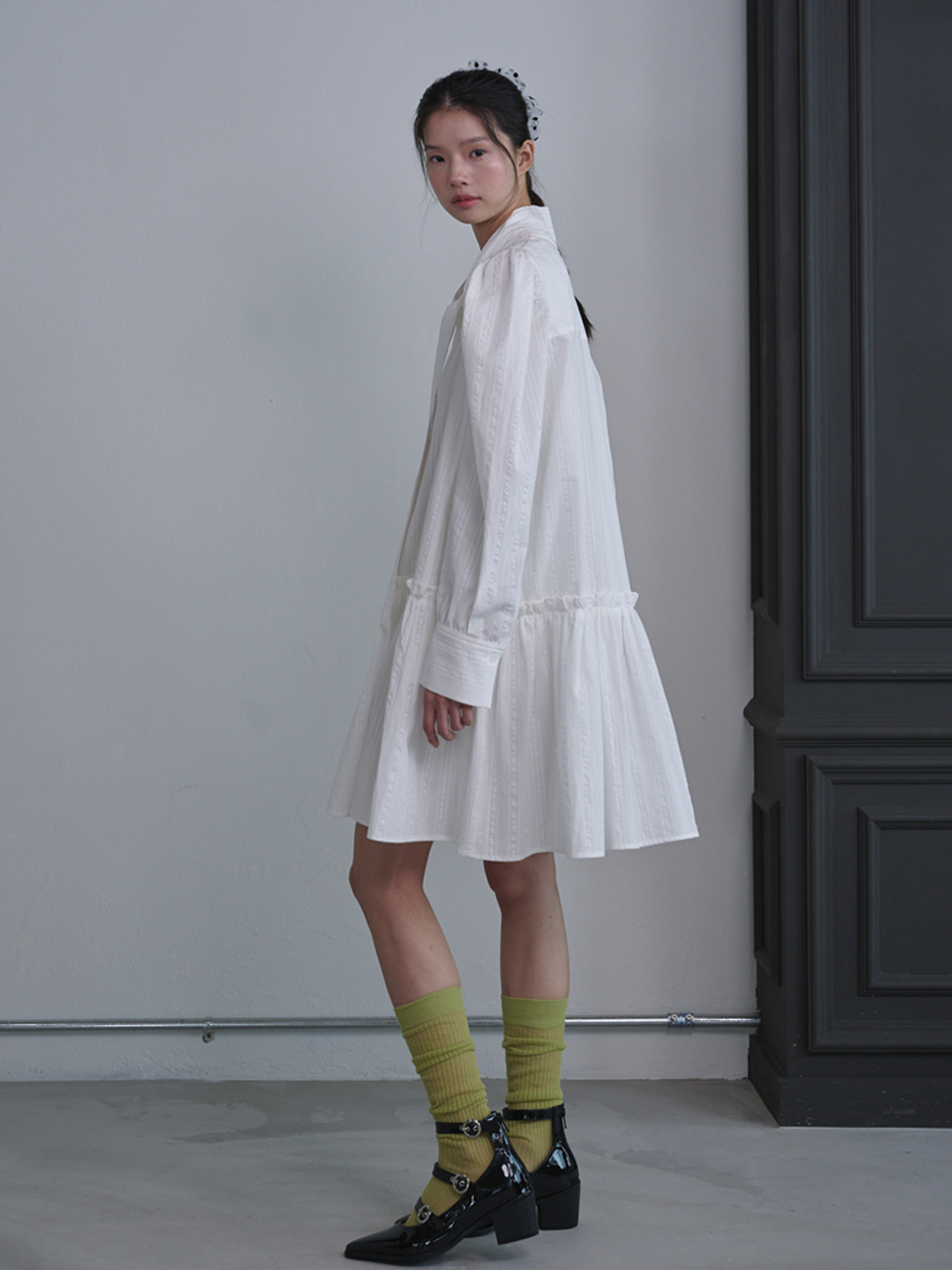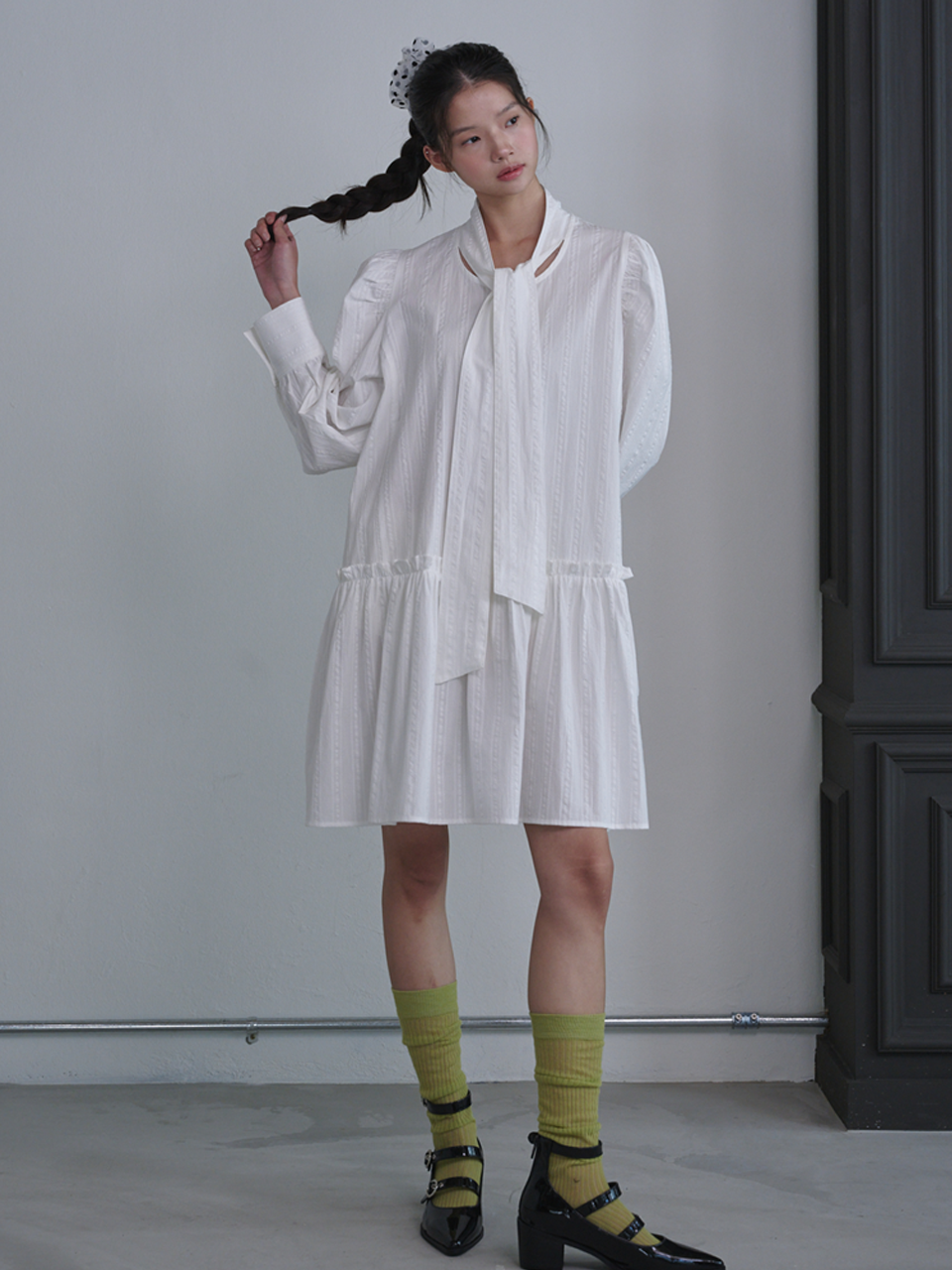 Puff Sleeve Scarf Mini Dress_White