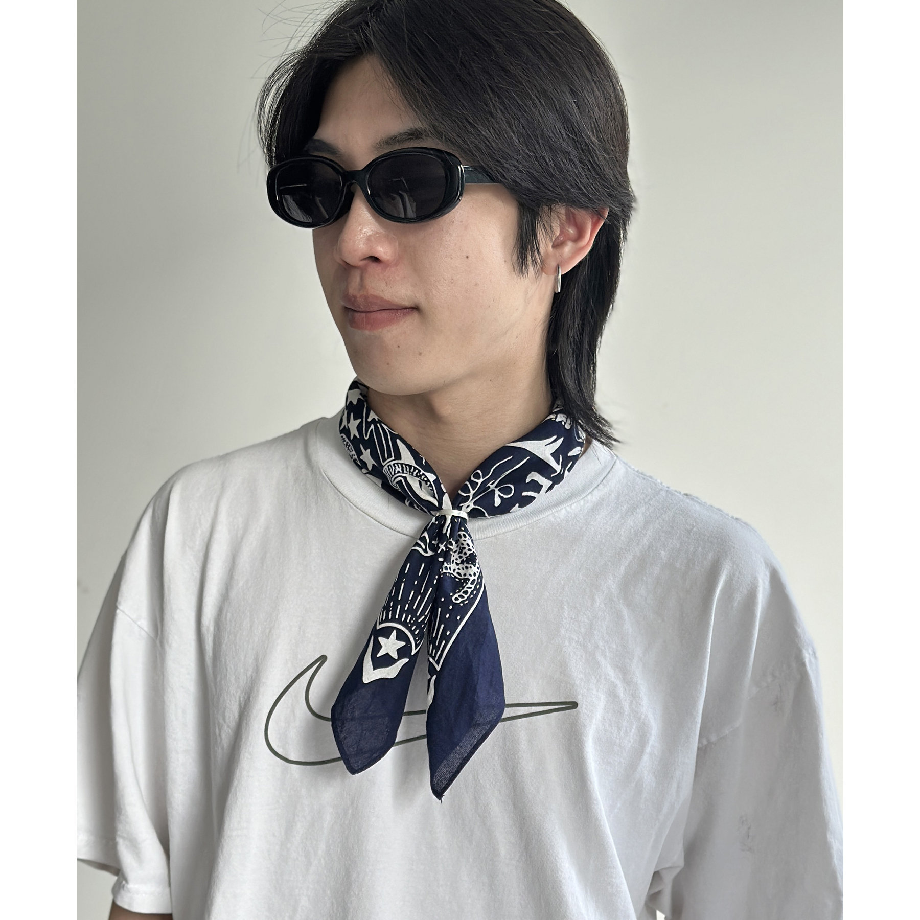 ・シンプルなTシャツとデニムの組み合わせに、バンダナをプラスして、こなれたカジュアルスタイルに◎