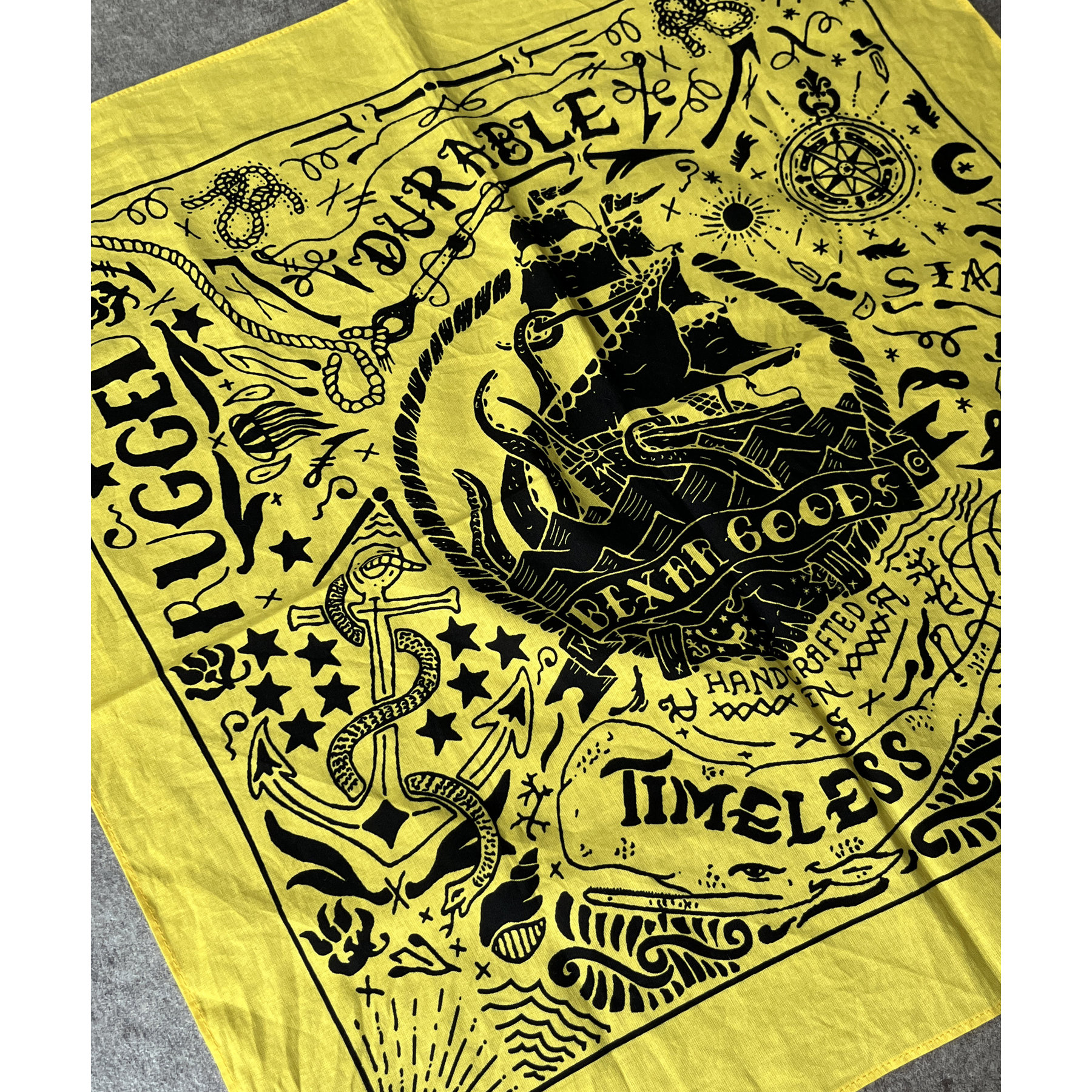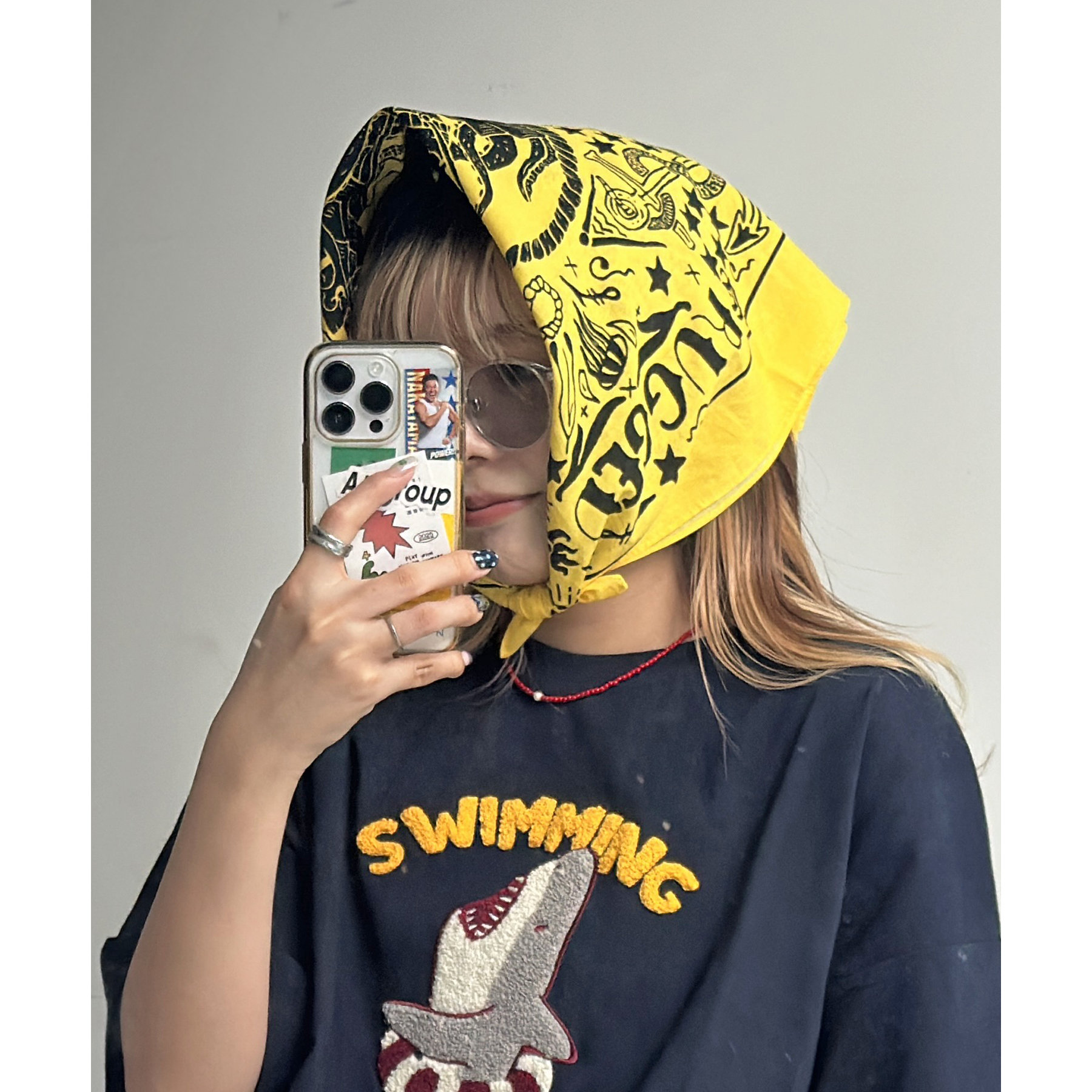 目を惹くカラーと、イラストが魅力的なバンダナ!