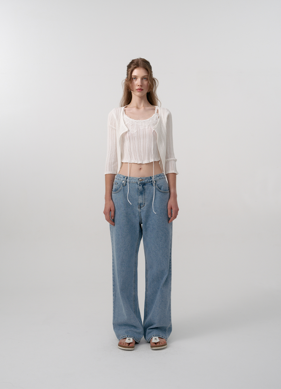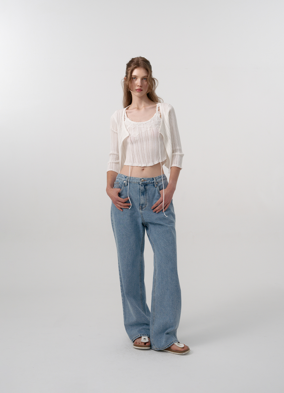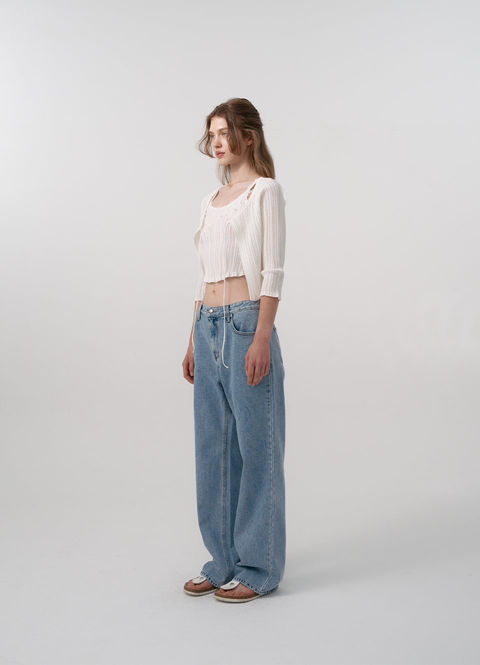 結紮が引き立つリブド織りデザインそしてユニークなラウンディング型の裾などのディテール