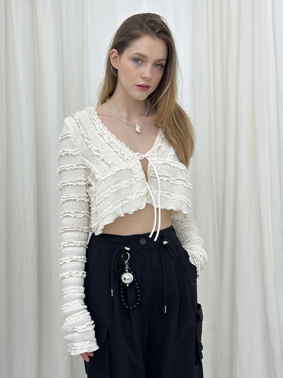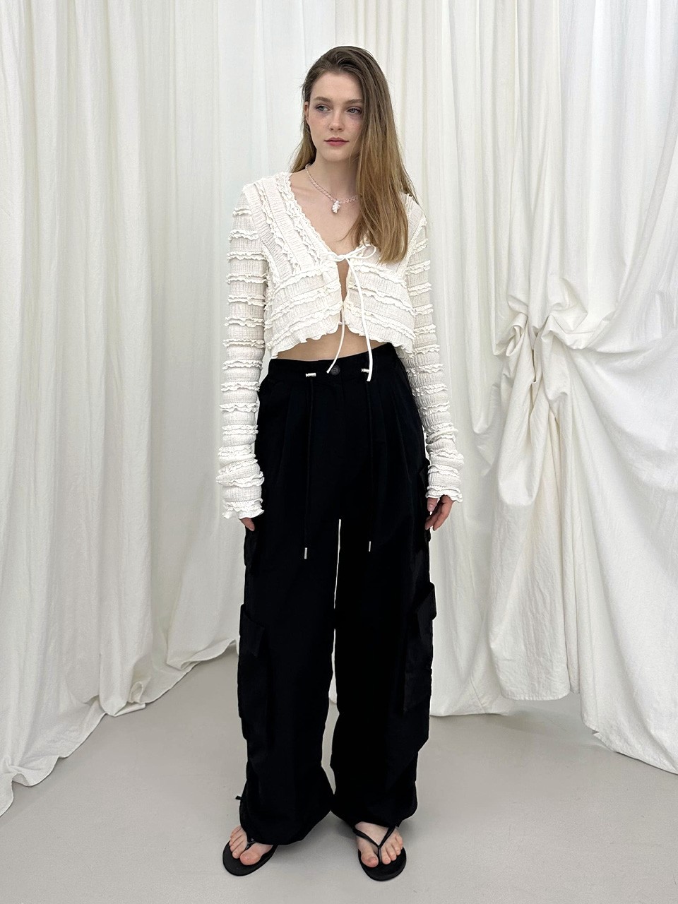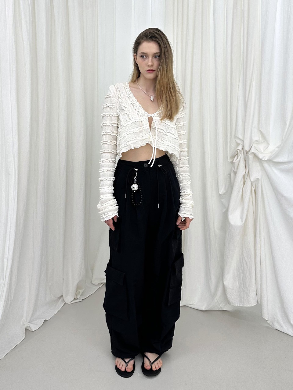 RIBBON CARGO PANTS / BLACK