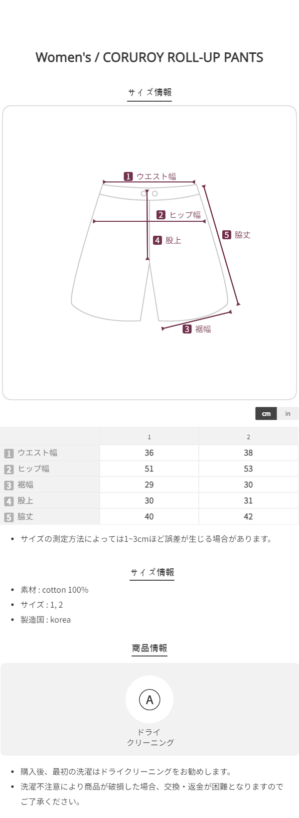 [Influencer pick] CORUROY ROLL-UP PANTS