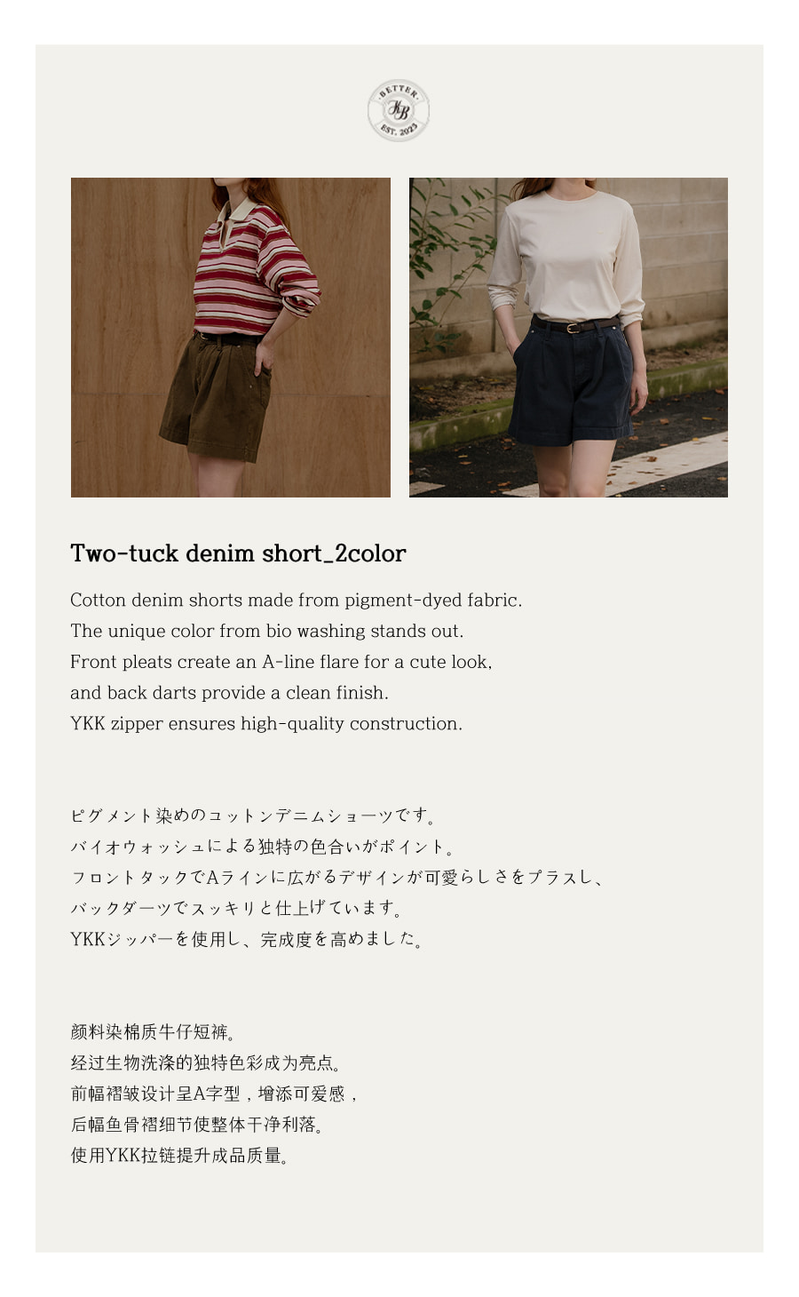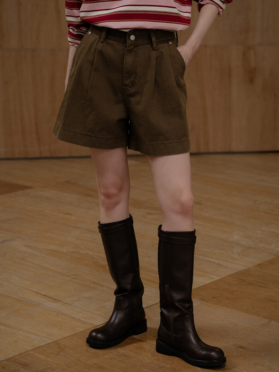 Two-tuck denim short [KNFW03PT02]_Brown