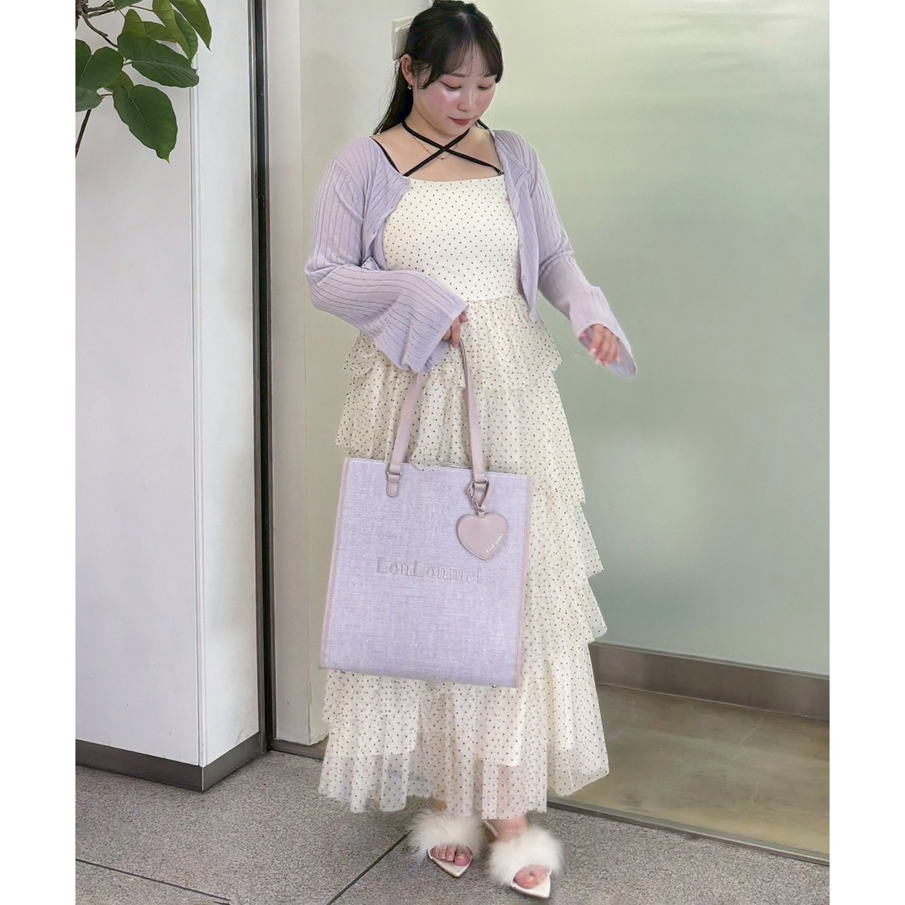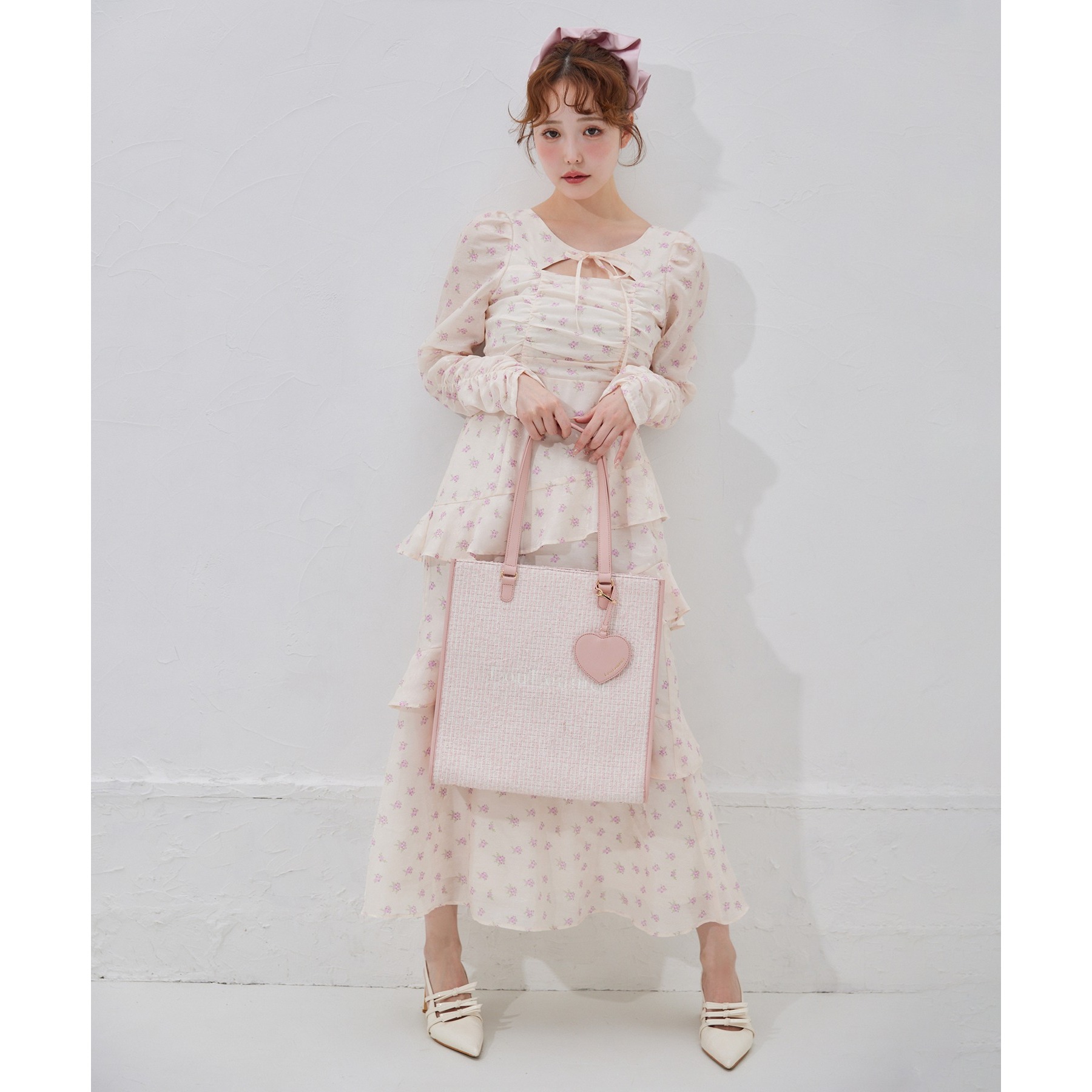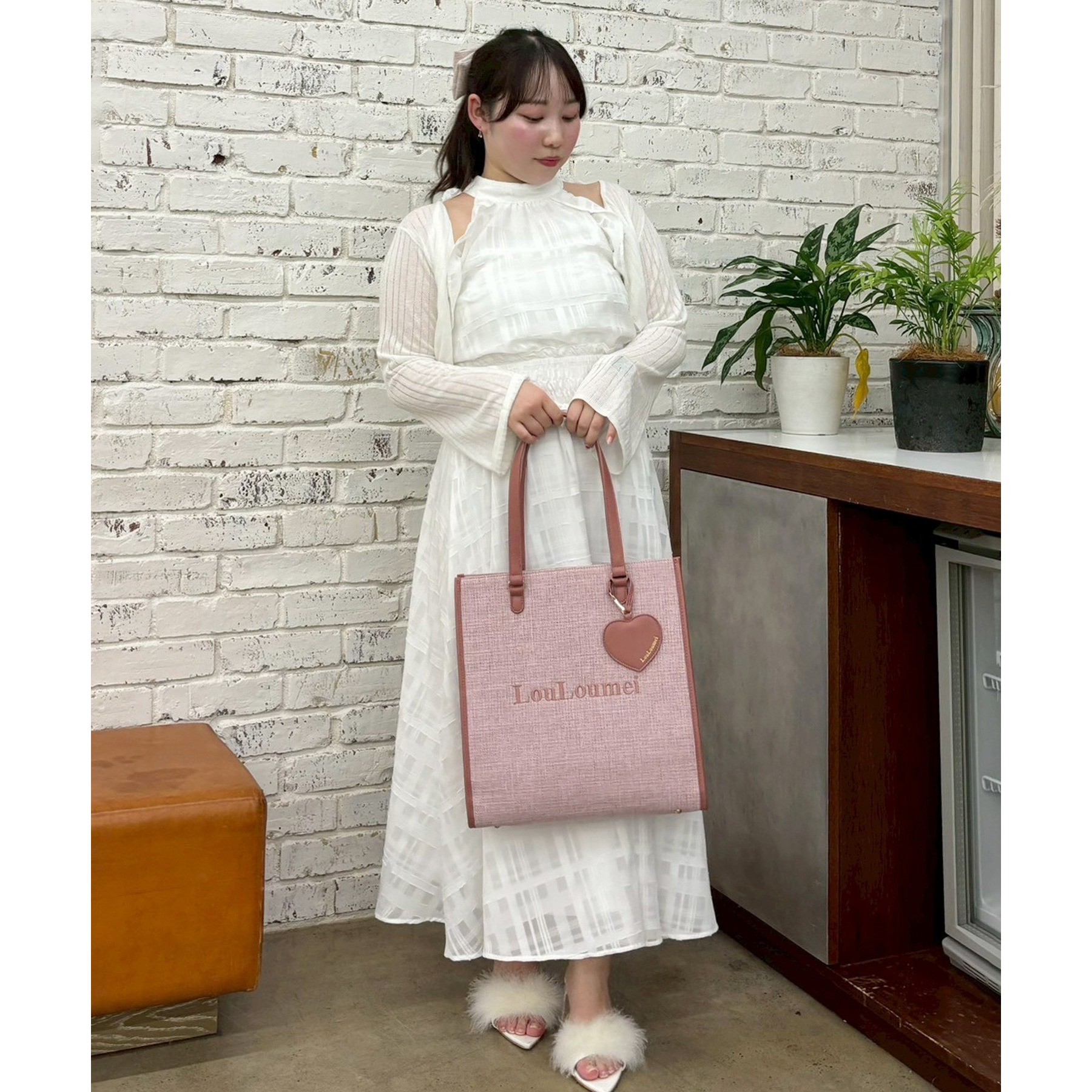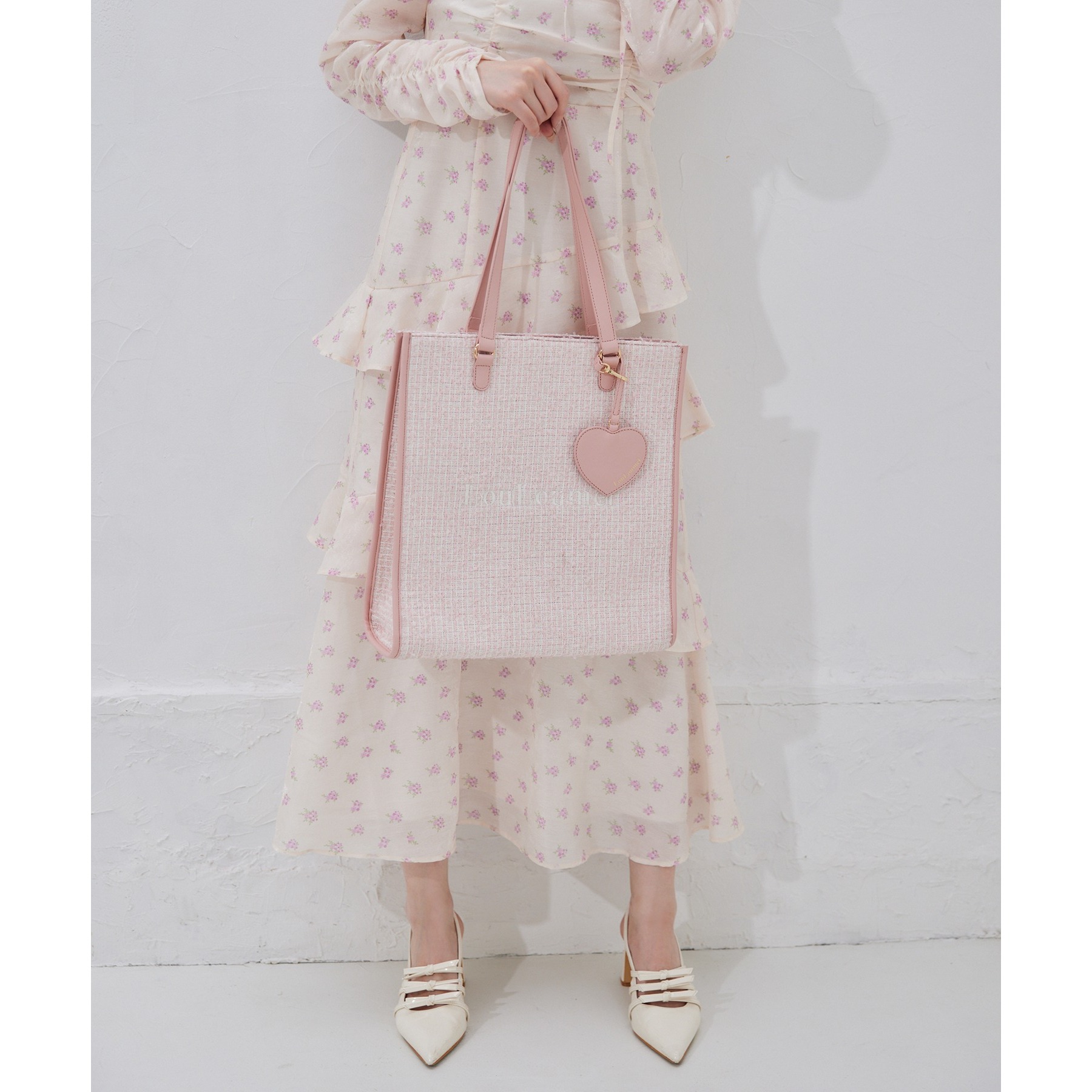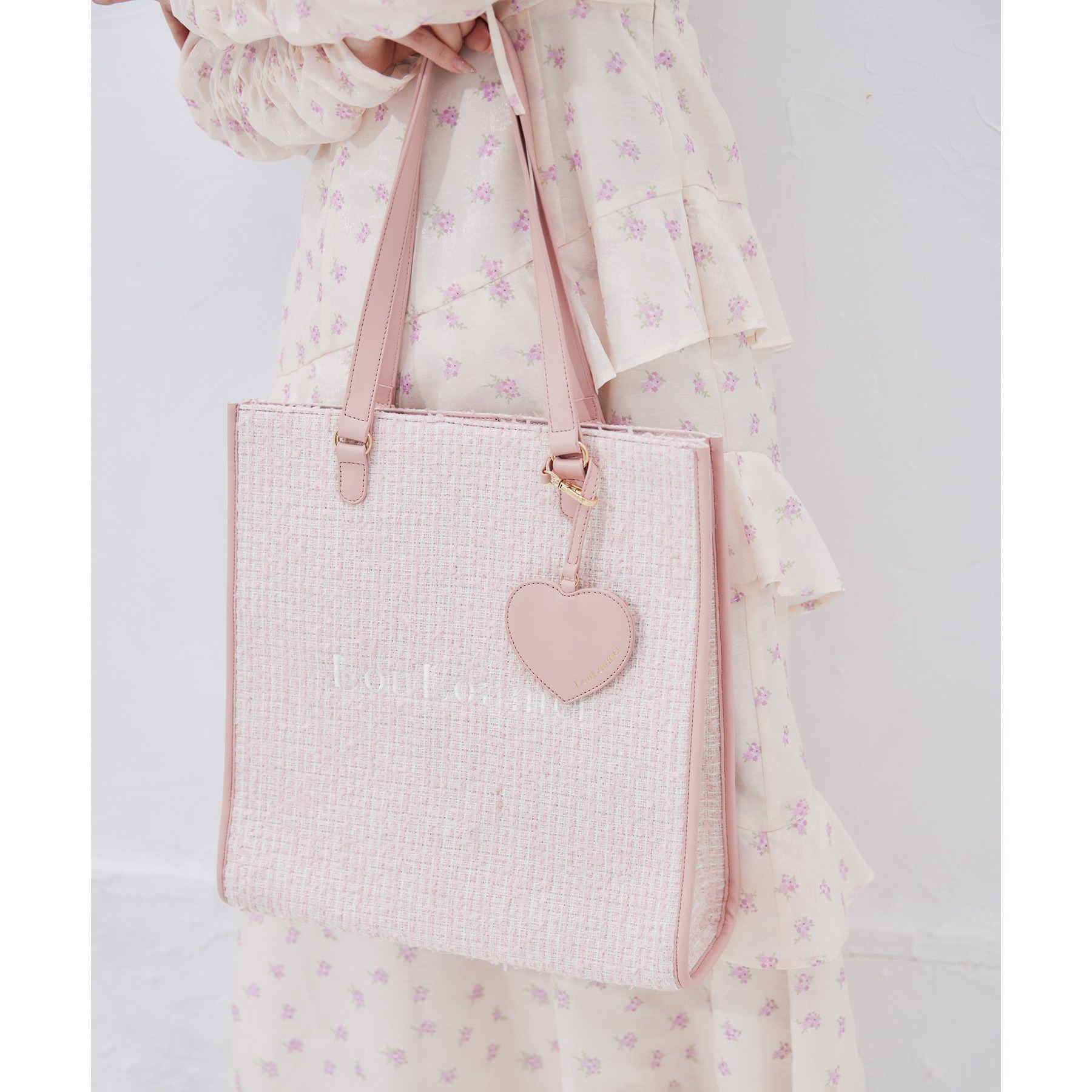 【LouLoumei】ハートチャーム付きトートバッグ/自立可能/WEB限定