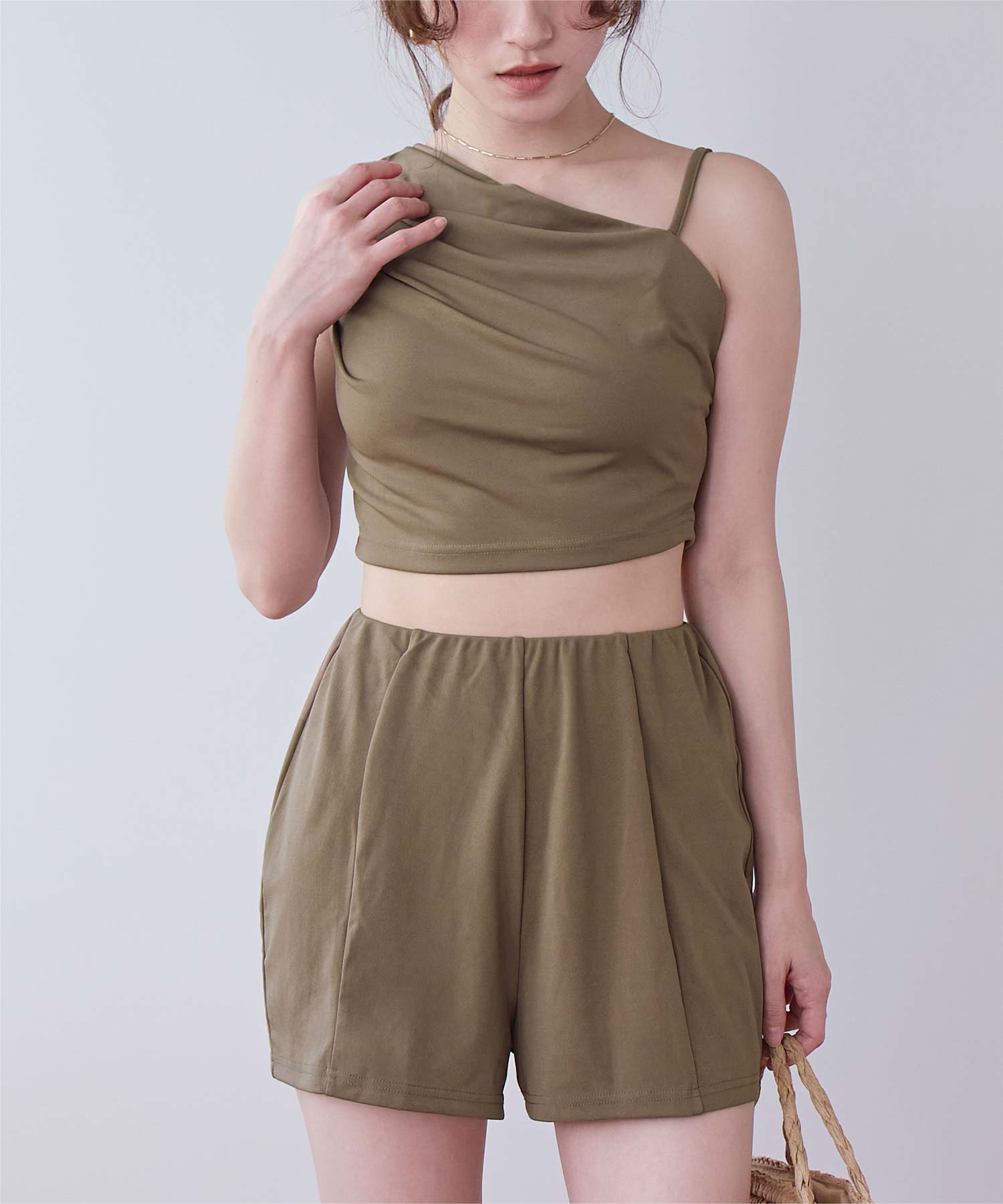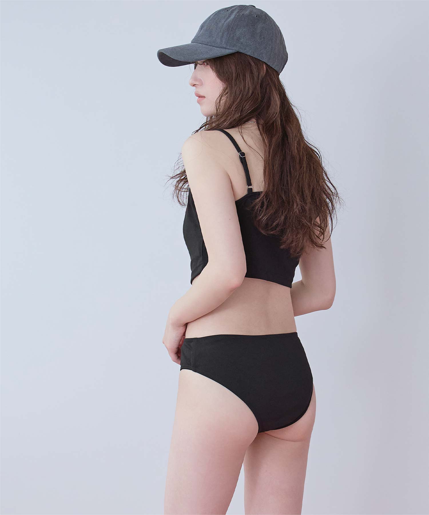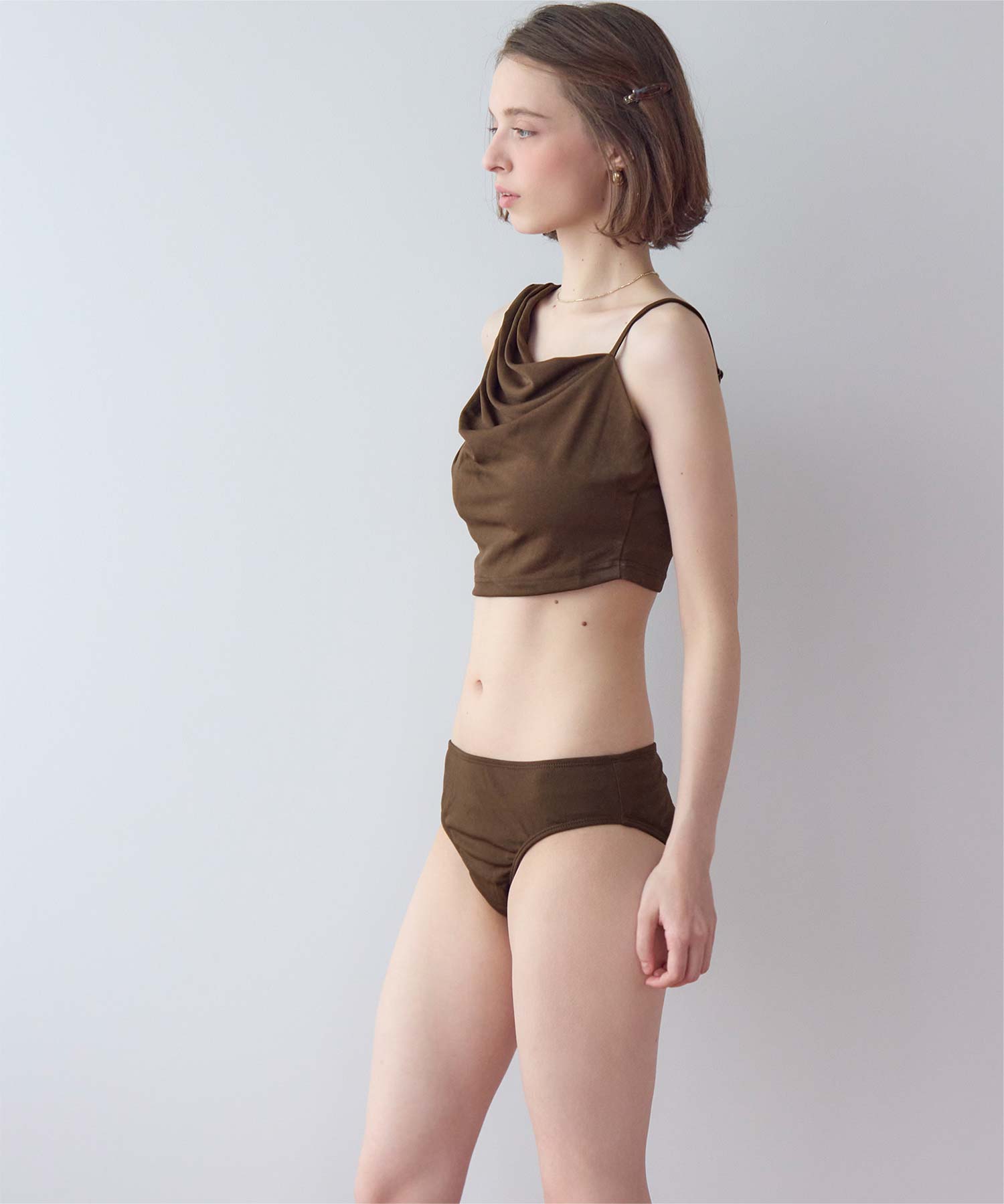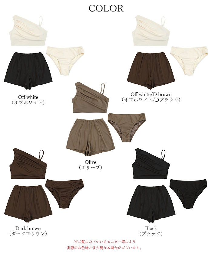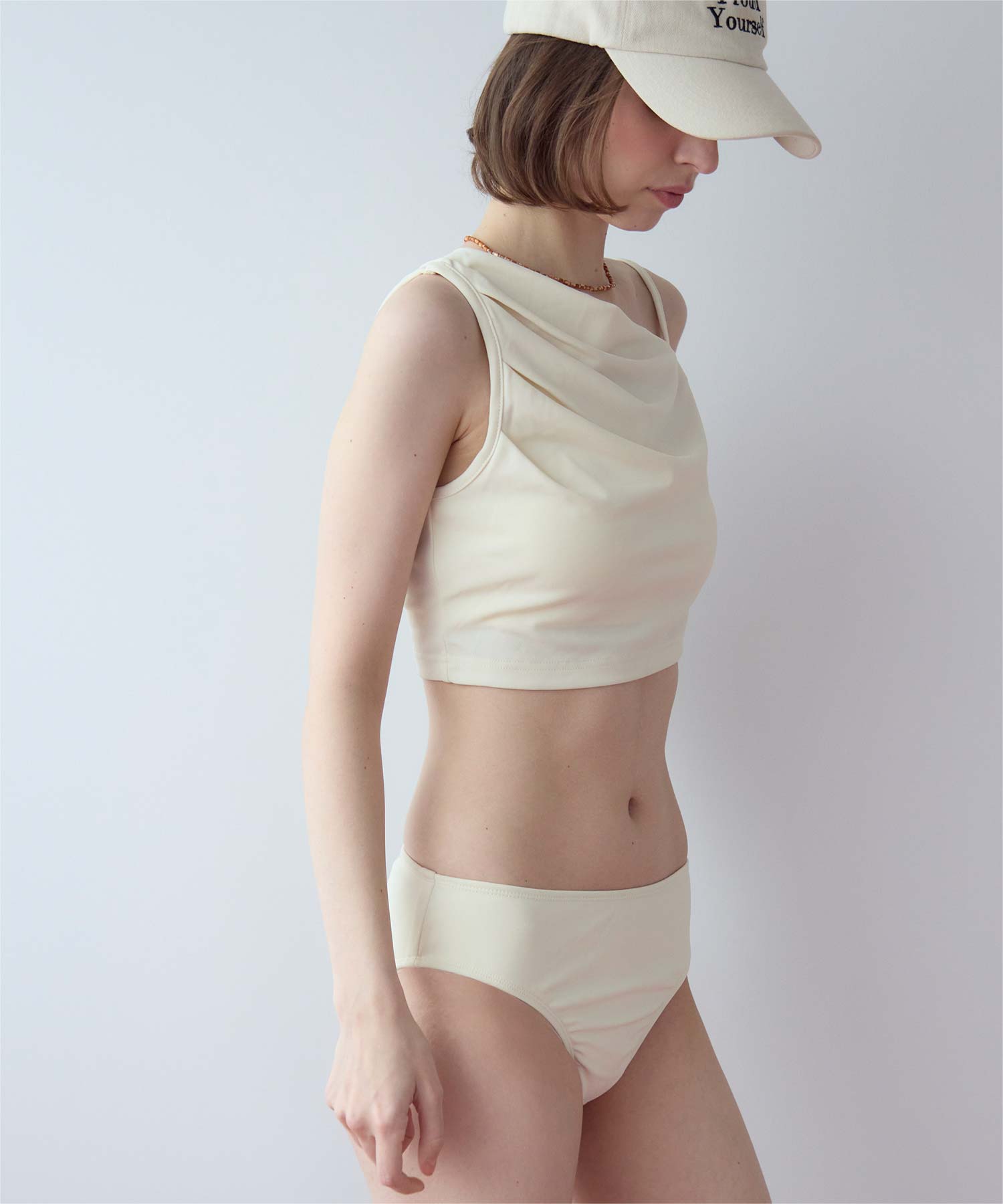 ・タックデザインが魅力的、スタイリッシュで大人な装いのセット水着。