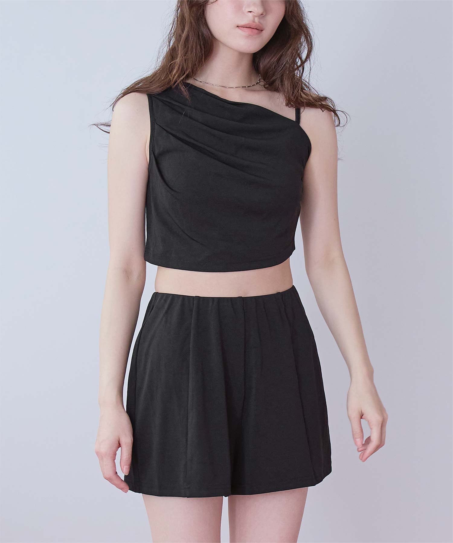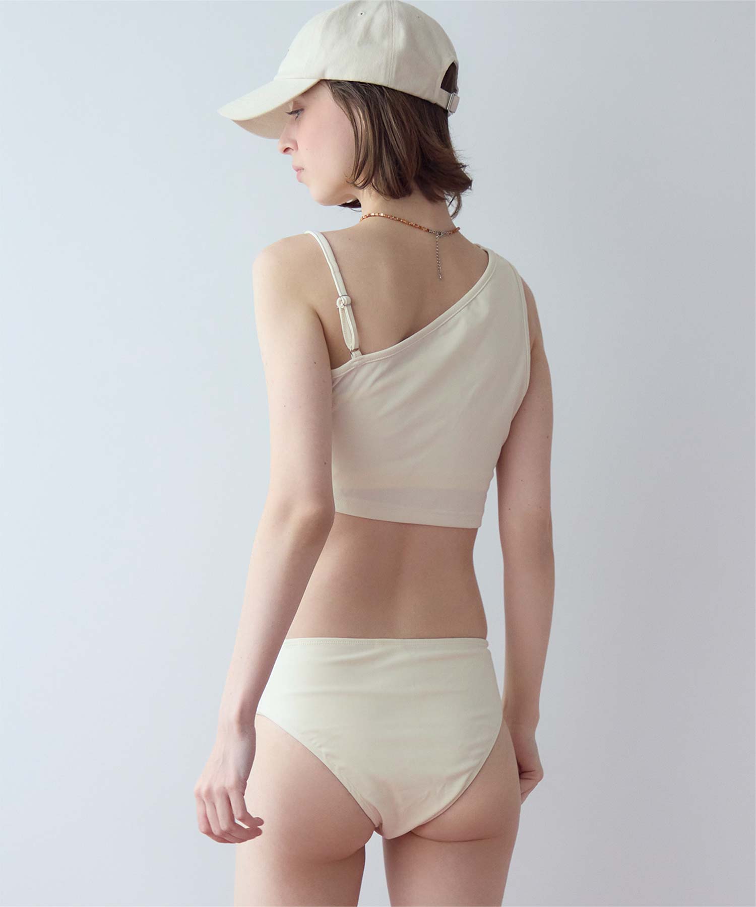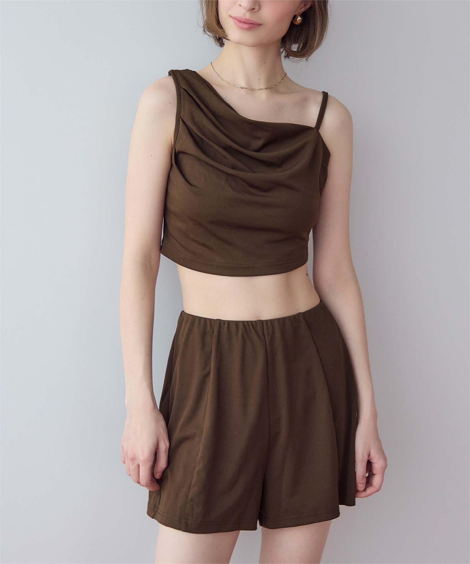 ・タックデザインが魅力的、スタイリッシュで大人な装いのセット水着。