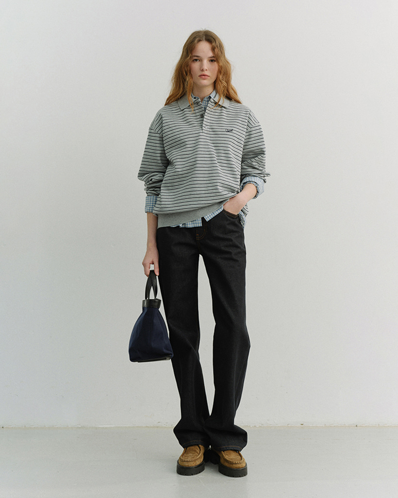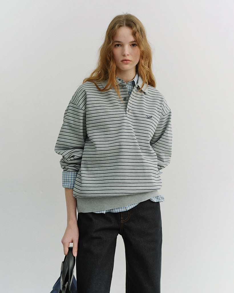 UNISEX STRIPED LOGO COLLARED T-SHIRT GREY_UDTS6A120G2