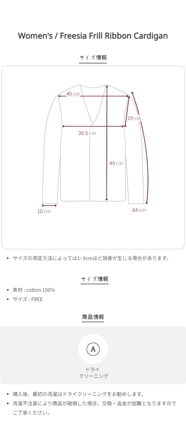 HEIGHT 168cm / BUST 81cm / WAIST 58cm / HIP 83cm