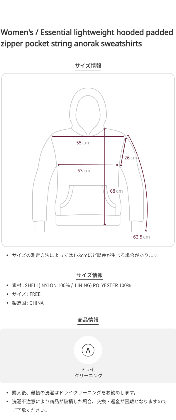 Essential lightweight hooded padded zipper pocket string anorak sweatshirts_2 colors