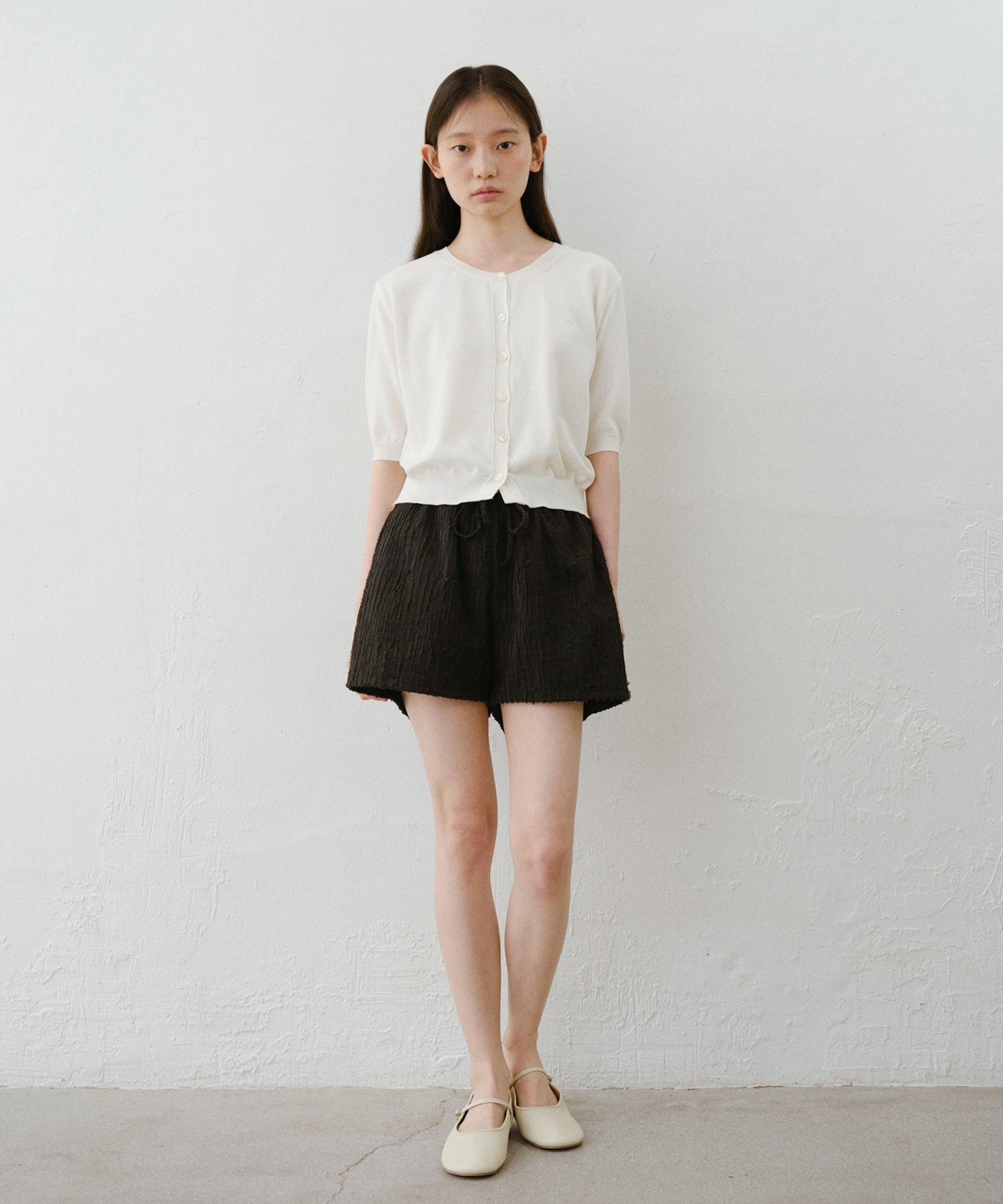 <生 style="text-align: center;">生地ならではのヘア感が際立つテクスチャが魅力的なショートパンツです。不要なディテールは最小限に抑え、ステッチディテールで仕上げて頑丈さを加えました。