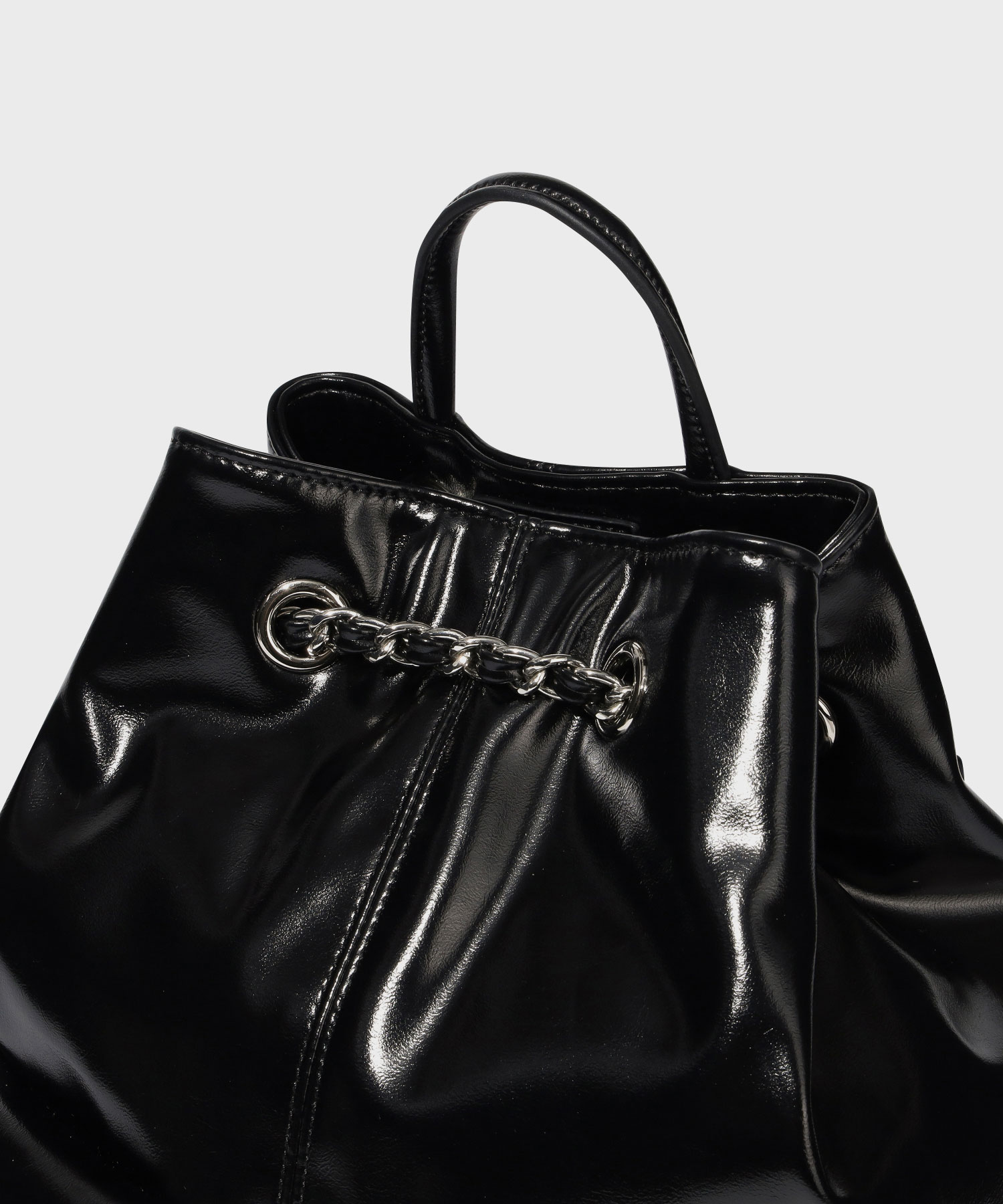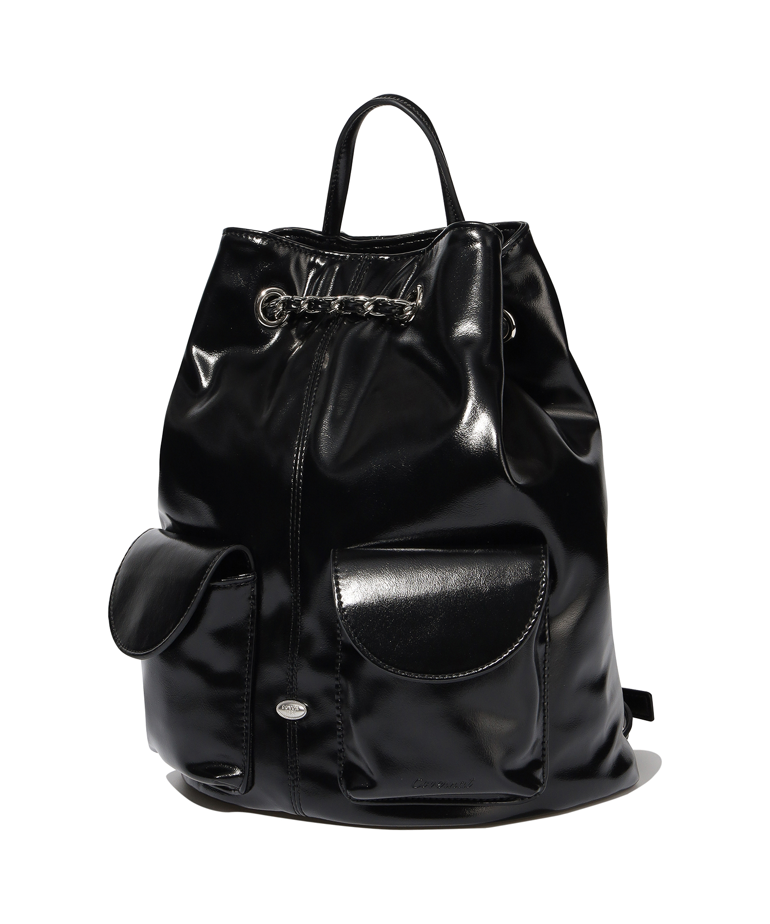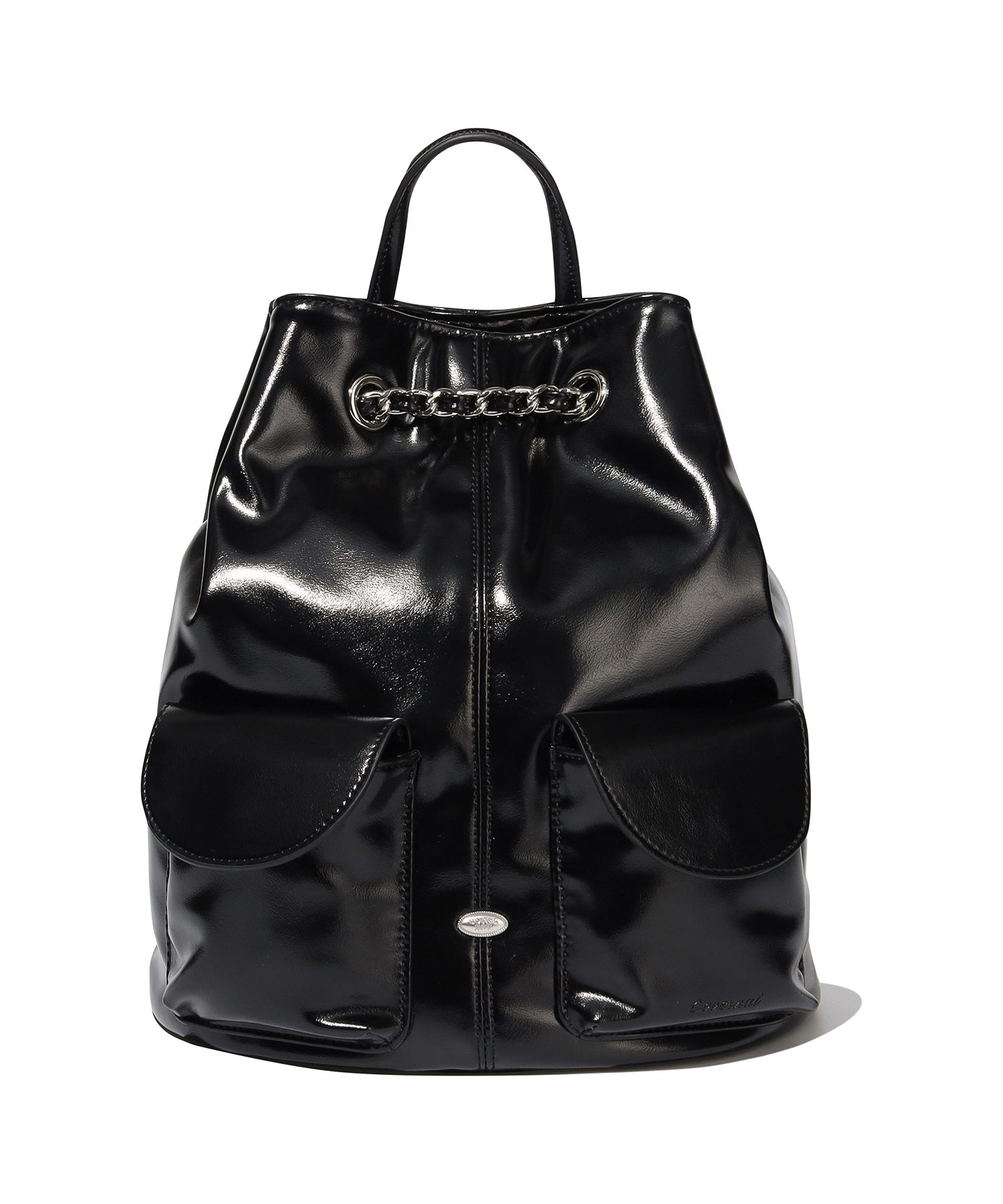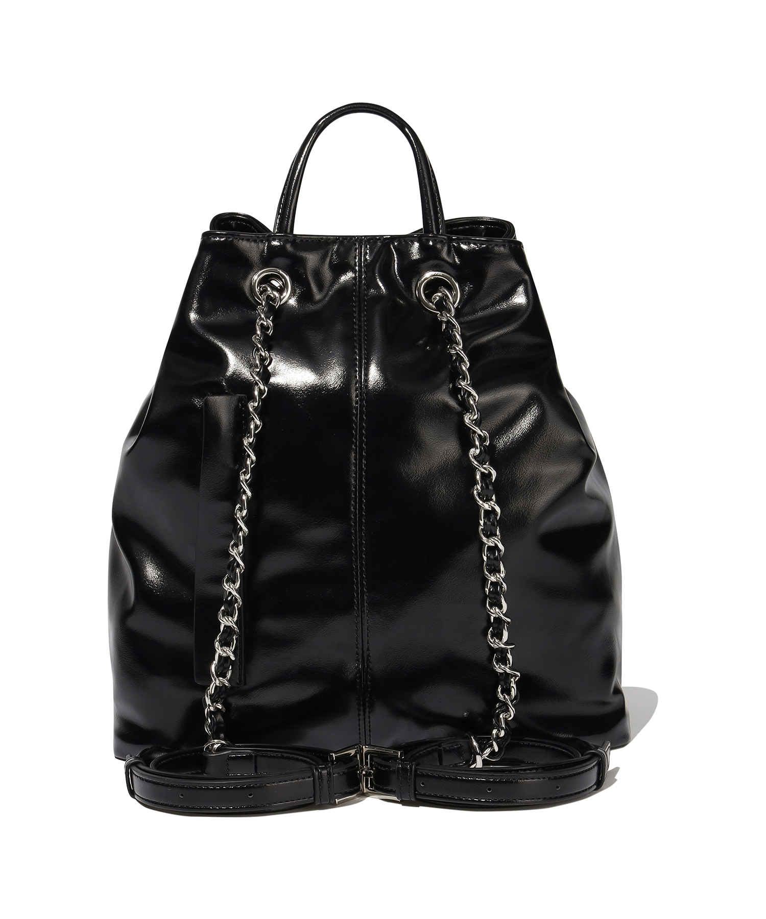 CLOVER HEART LEATHER CHAIN BACKPACK - Black