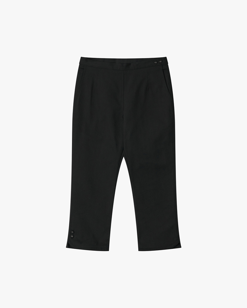SLIM TWO-BUTTON CAPRI PANTS, BLACK