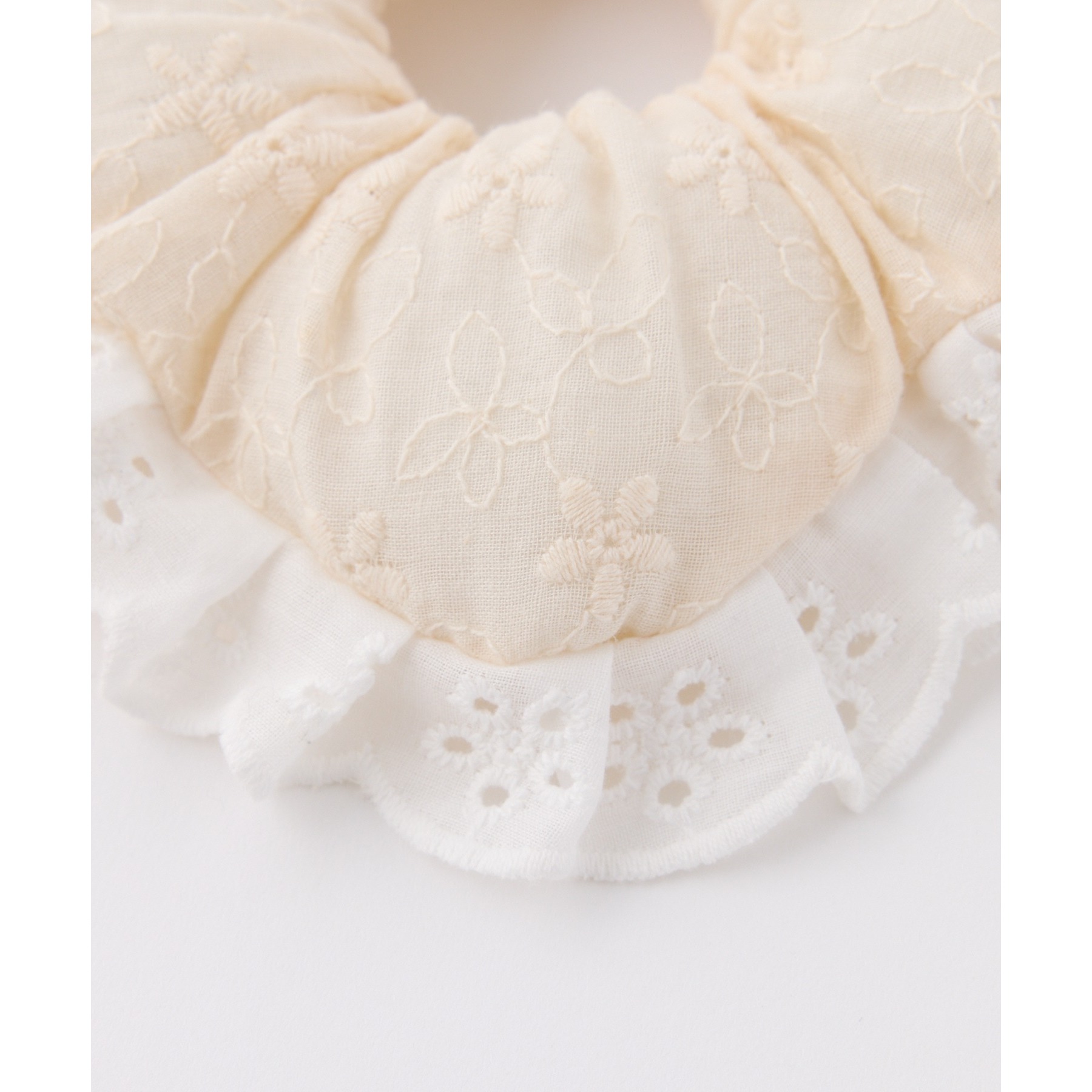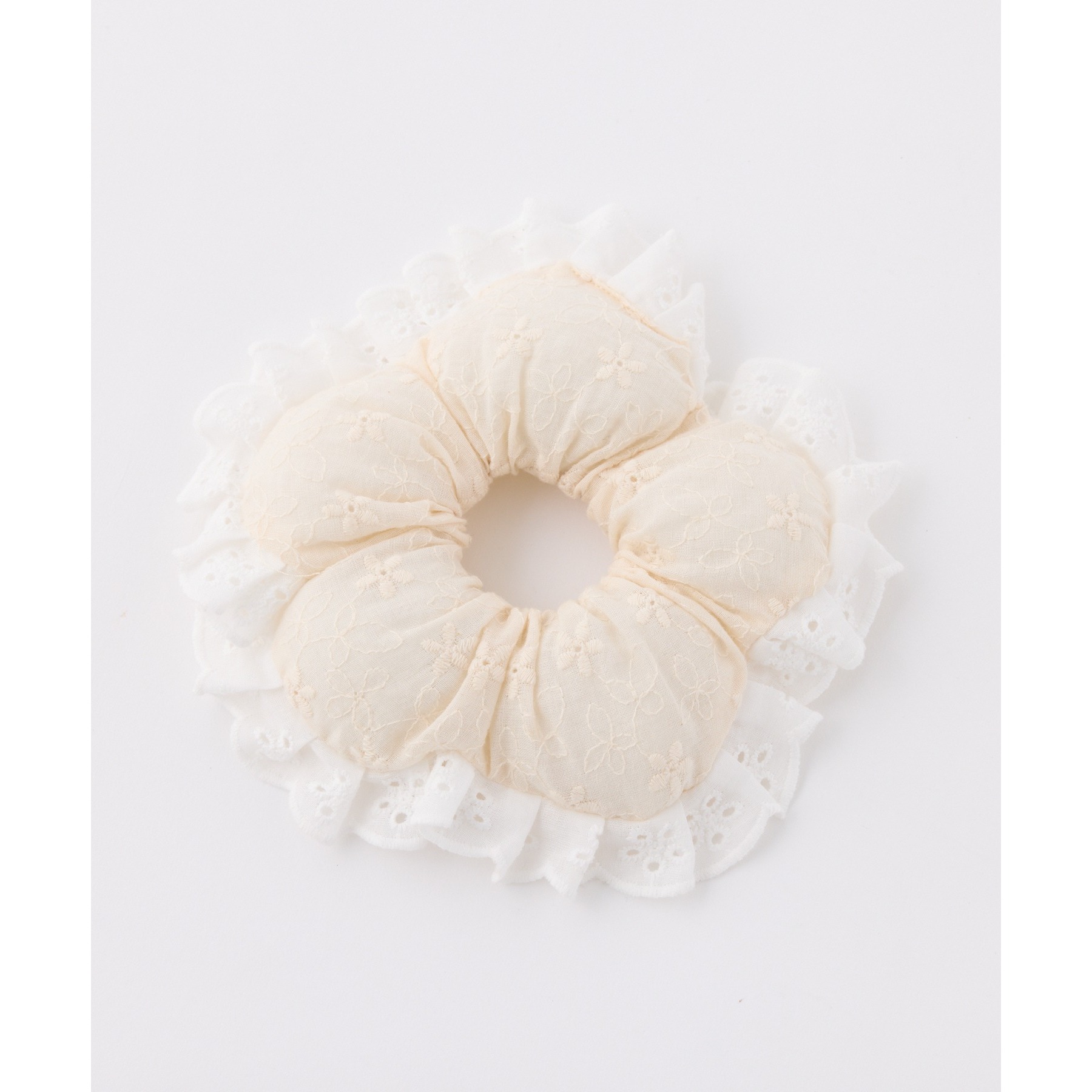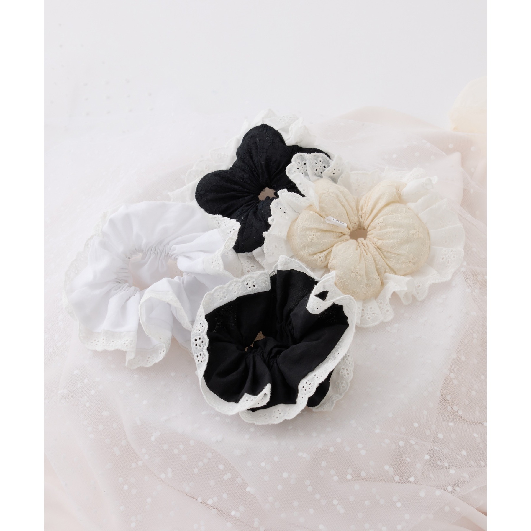 バックスタイルを華やかに彩るフラワー型のファーシュシュ。