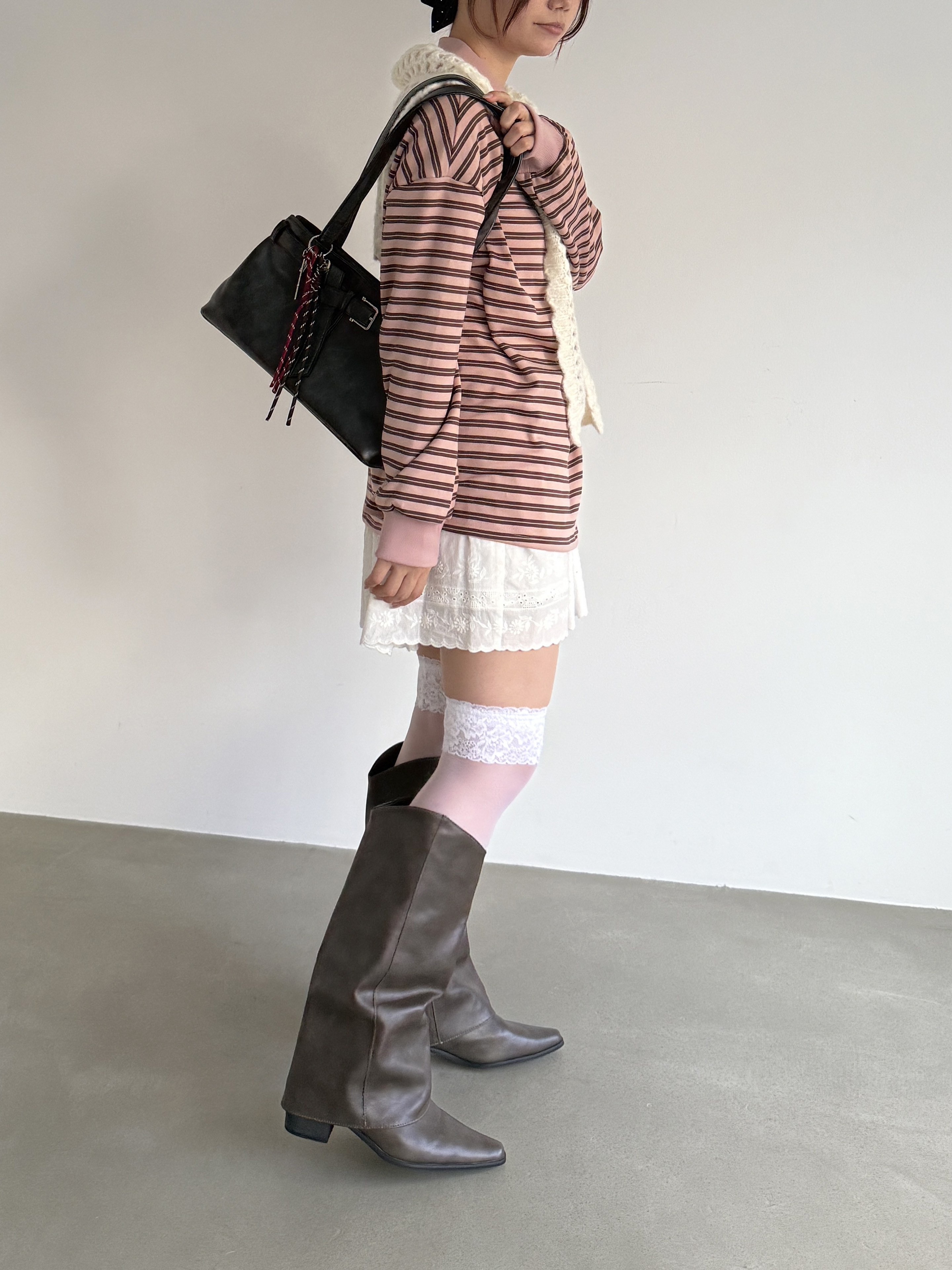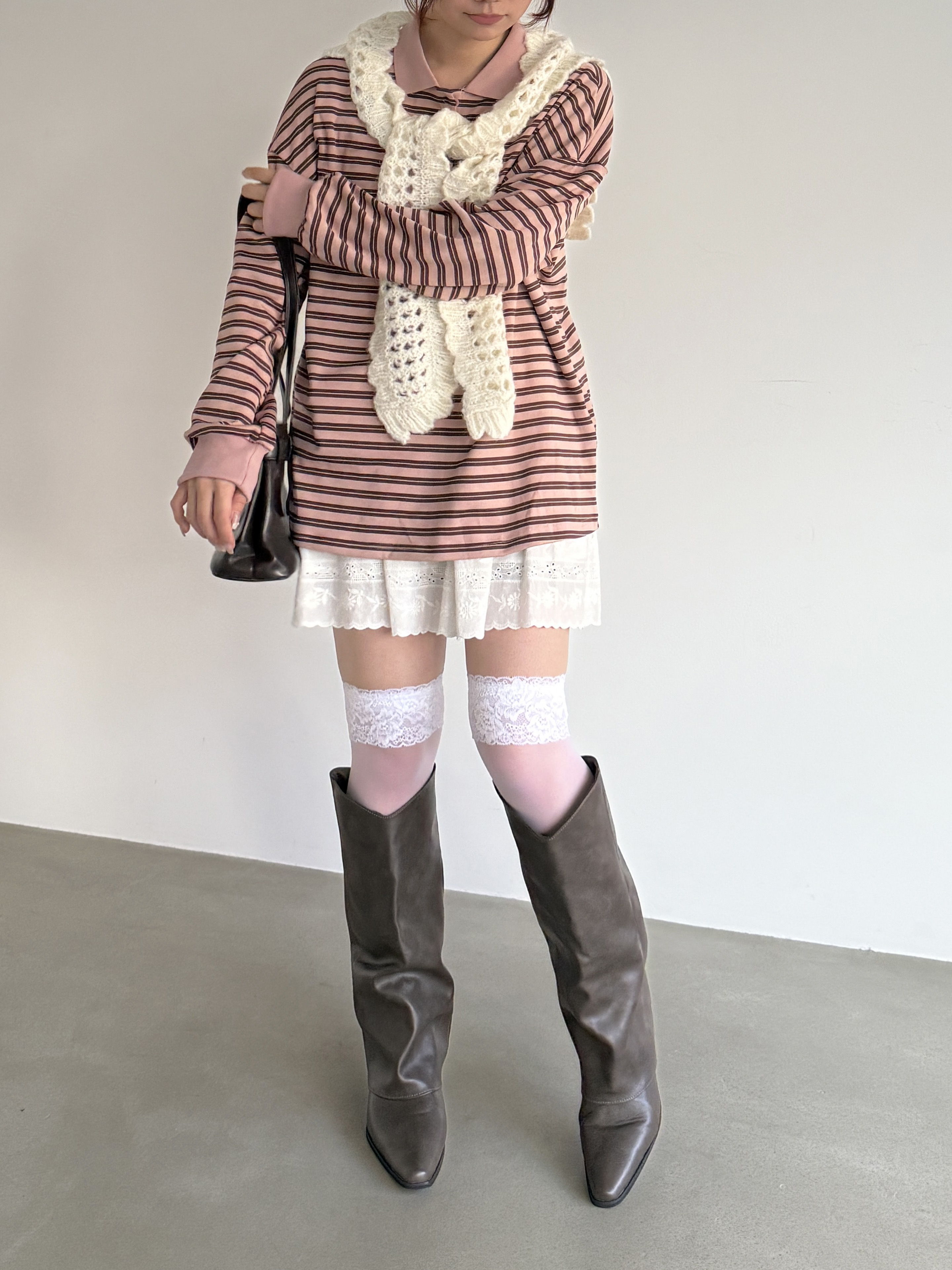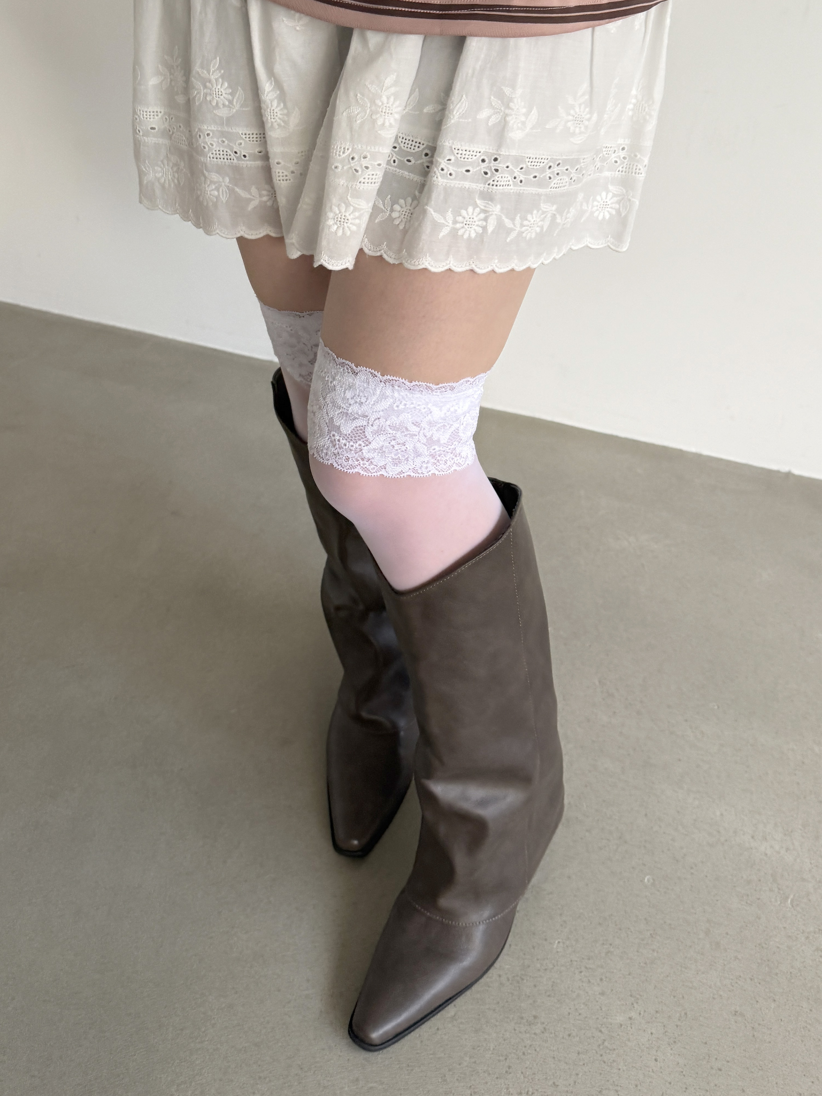 【膝上すっきりカバー】レース付きストッキングオーバーニー