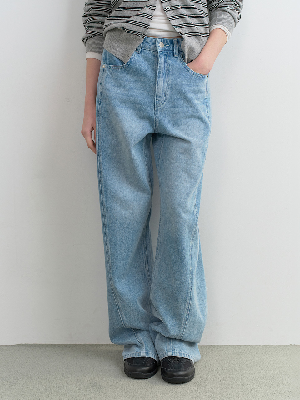CURVED LINE DENIM PANTS LIGHT BLUE