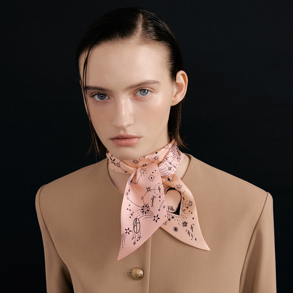 Zodiac Long Twilly Silk Scarf - Pink/Peach