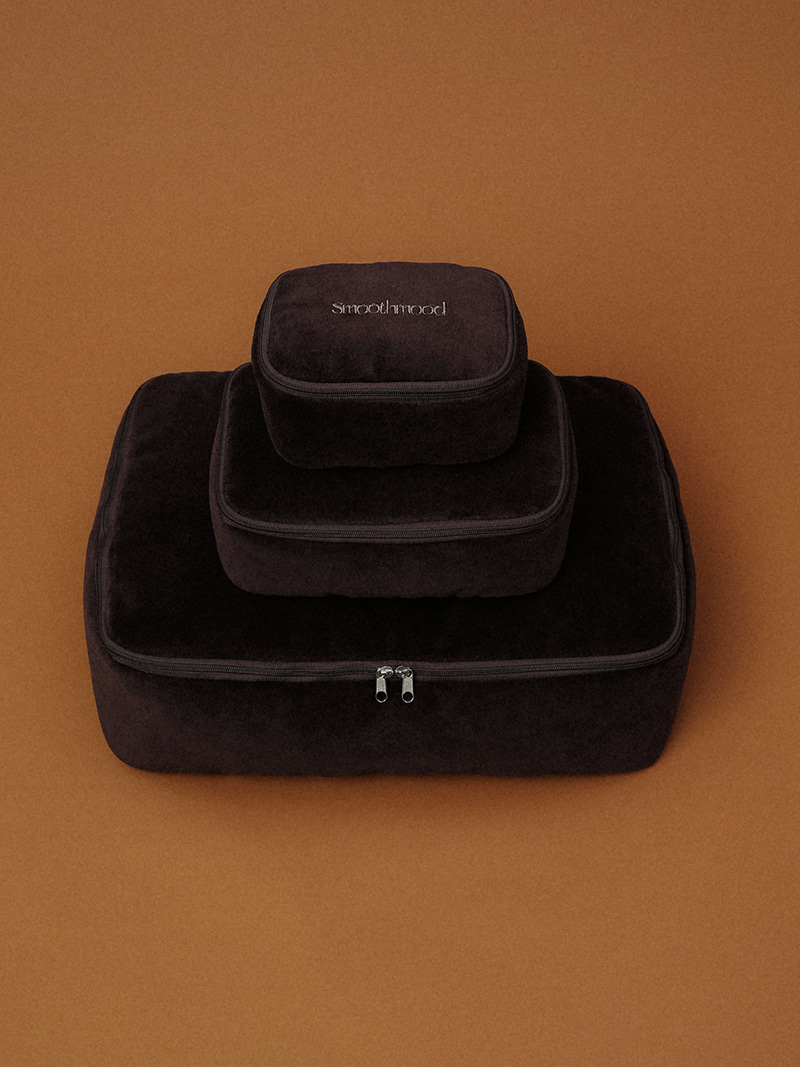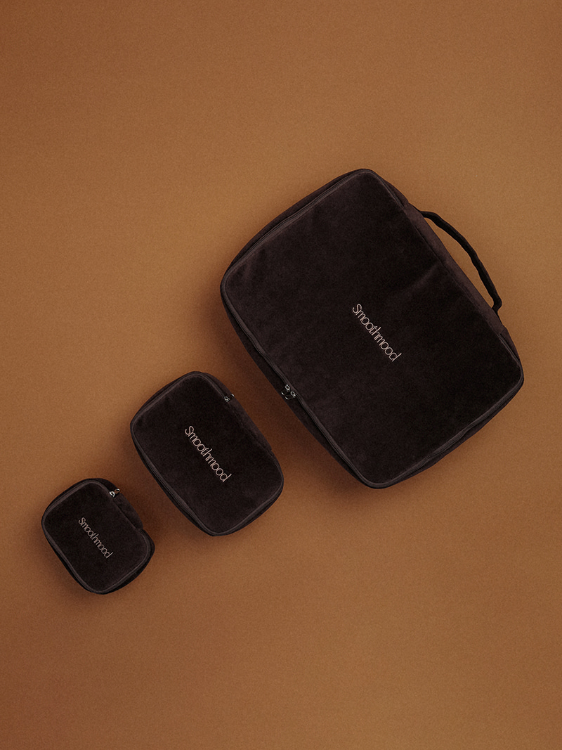 日常から旅行先まで、いつでもスムーズな気分を感じられるロゴドレッセンスケース。ベルベット素材に綿やポリエステルを混ぜ合わせた豊かな質感と贅沢な光沢があり、スモール、ラージ、マキシサイズは新たに発売され、3サイズ展開されています。スモールはコンパクトながら奥行きがあり、化粧品や様々なアイテムを持ち運びやすいサイズです。ラージは基本的な持ち物が多い人や旅行に適した実用的なサイズです。マキシは衣類や靴など日常必需品を収納できるサイズで、旅行先や日常生活にも便利で、取っ手を付けることでより実用的です。4オンスのキルティングと芯を加えて、しっかりとした形を作り、外部の衝撃を防ぎます。ボリュームのあるベージュ色合いのSmoothmoodクラシックロゴ刺繍はさりげないアクセントで、内側はSmoothmoodのロゴ裏地で仕上げられています。必要な持ち物はすべて居心地の良いポーチに入れてください。Smoothmoodと共に、常にお気に入りください。落ち着いて温かみのあるクラシックなブラウンカラー。Small/Large/Maxiサイズ、コットン76%ポリエステル、24%4oz、キルティング、Smoothmoodロゴ刺繍、Smoothmoodロゴの裏地*この製品はセットではなくサイズ別に販売されています。お気に入りのサイズを選んでください。