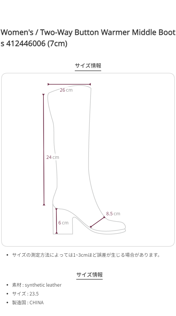 Two-Way Button Warmer Middle Boots 412446006 (6cm)
