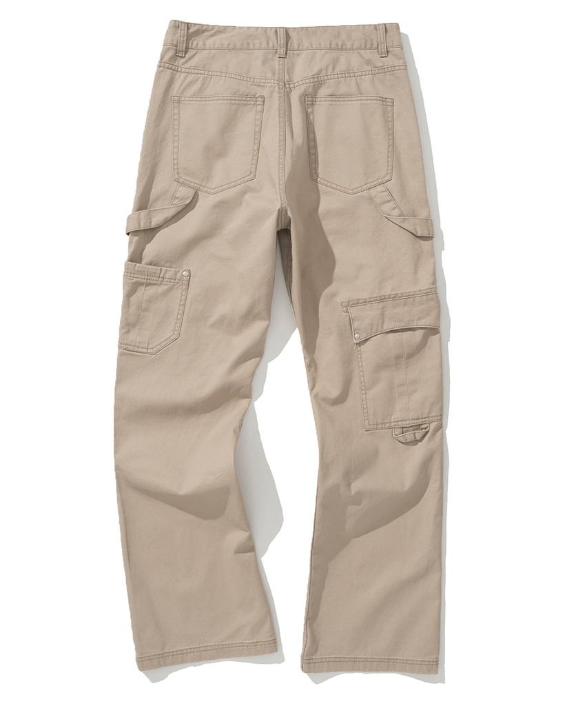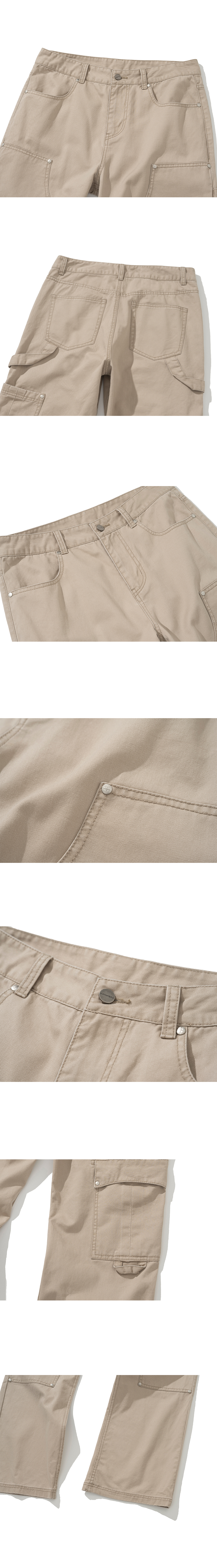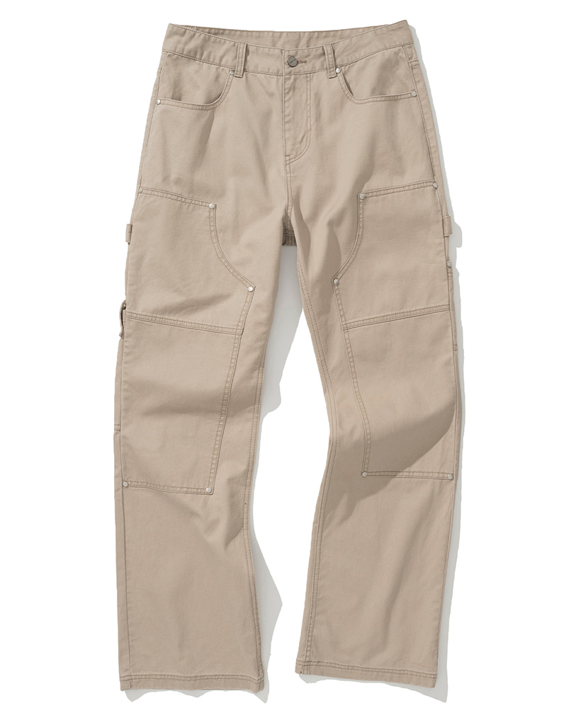 Double Knee Carpenter Flare Fit Cotton Pants - Beige