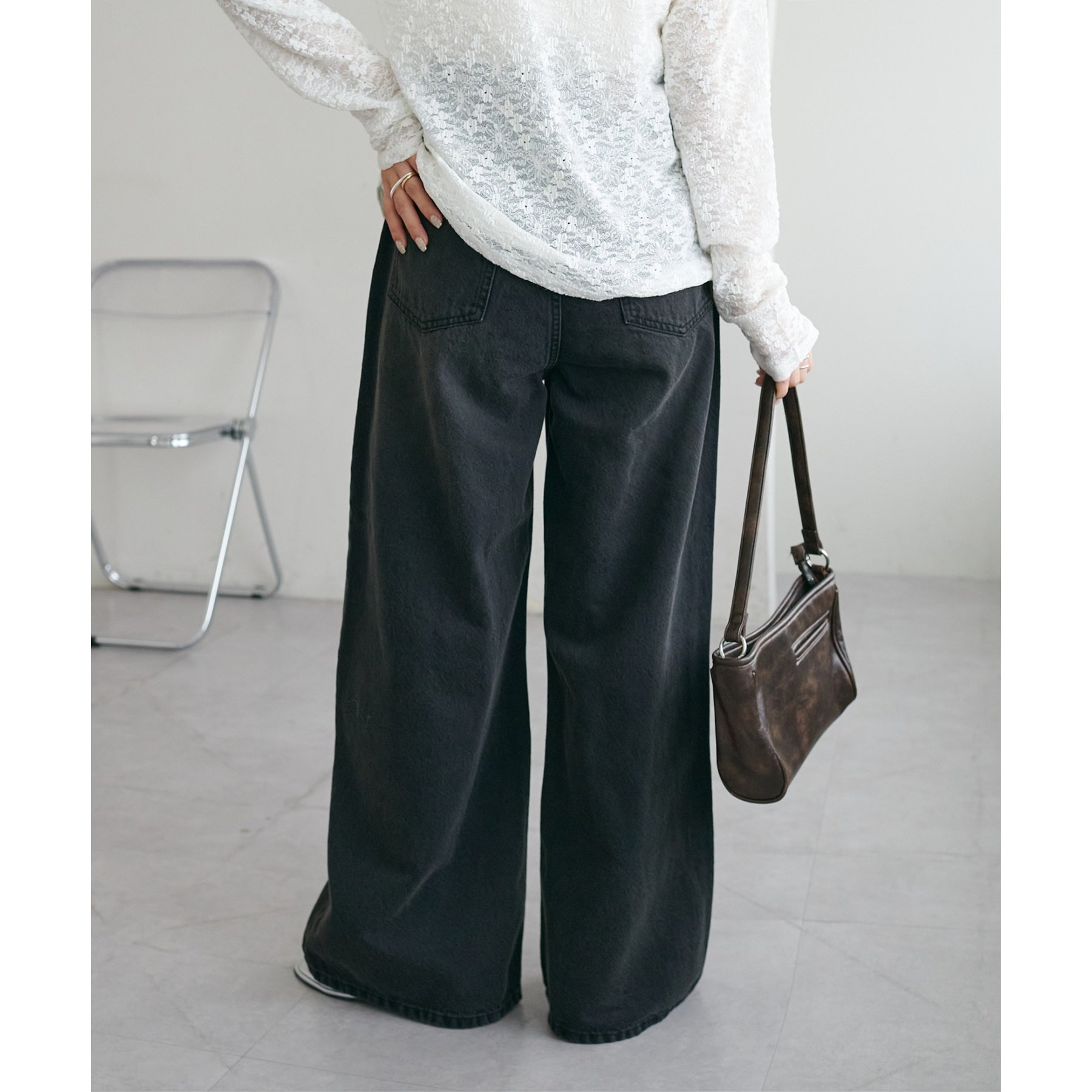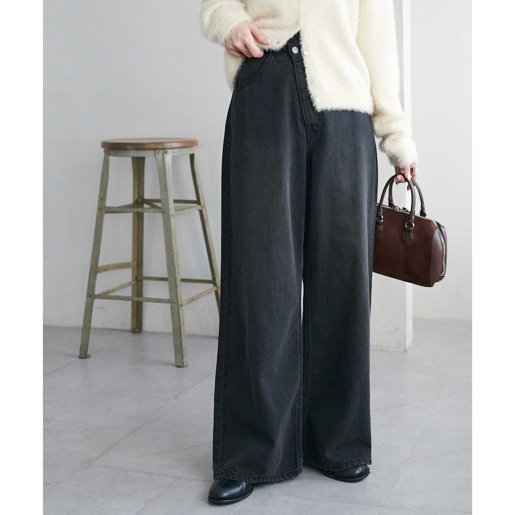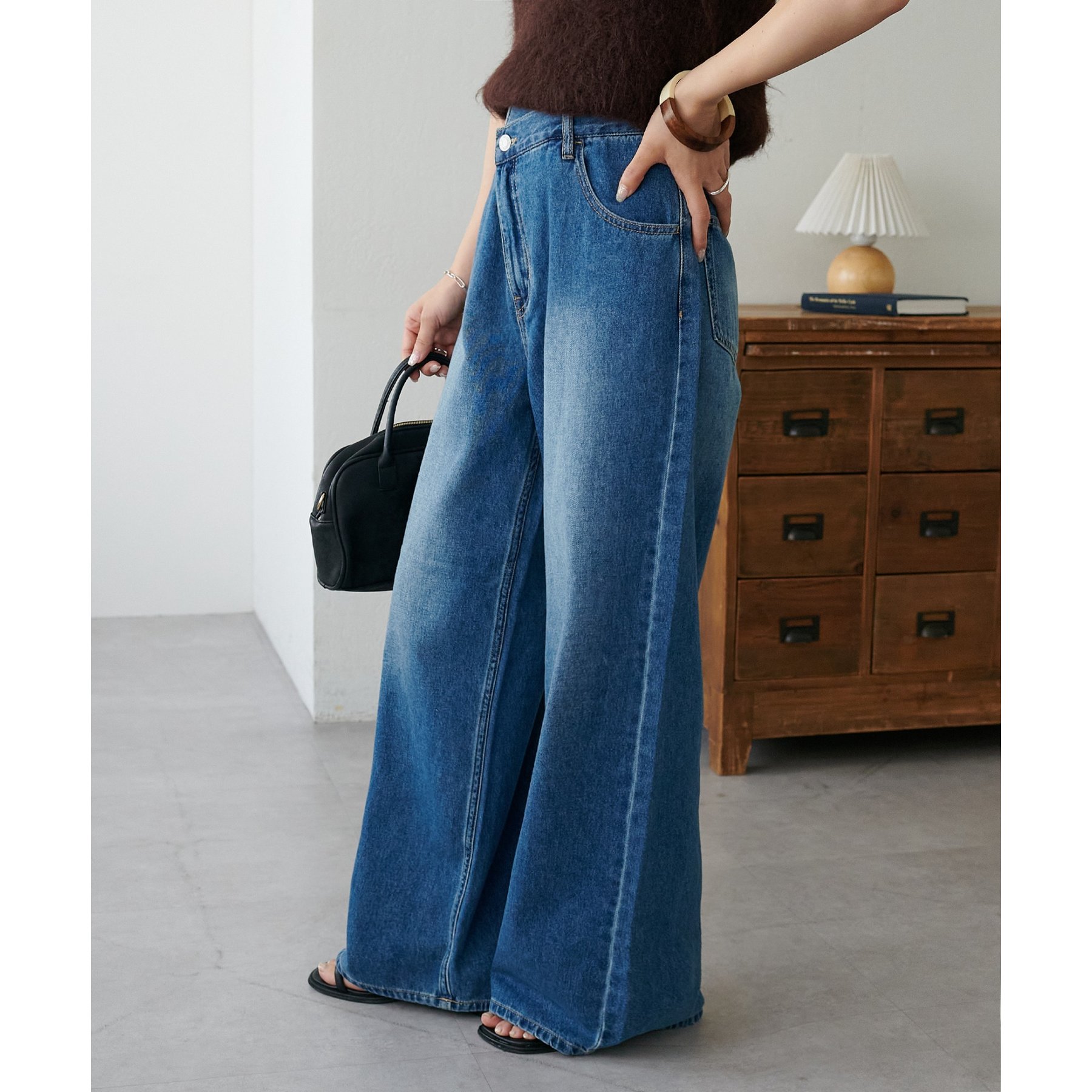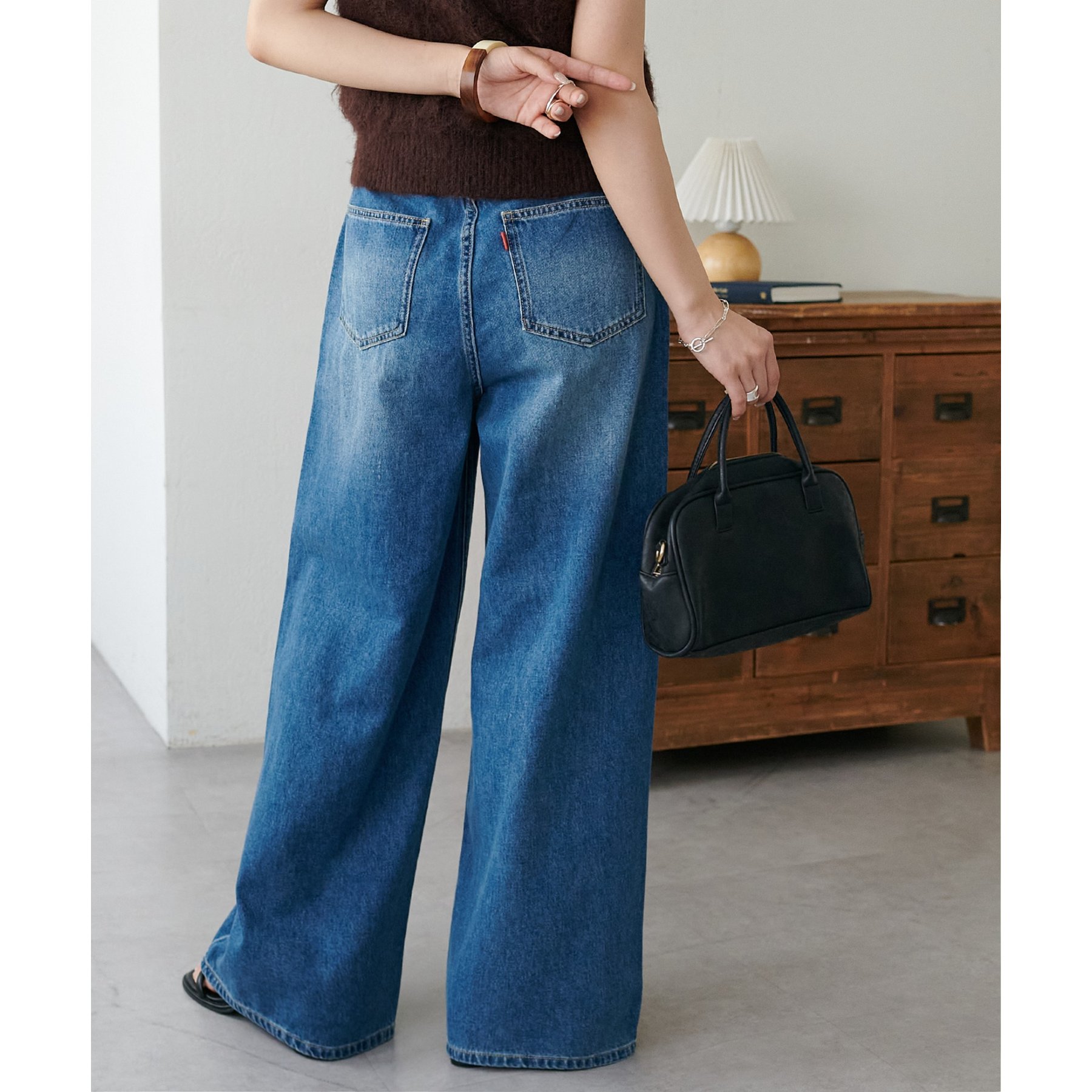 ゆるやかに広がる美しいシルエットが魅力のライトオンスデニムワイドパンツ。