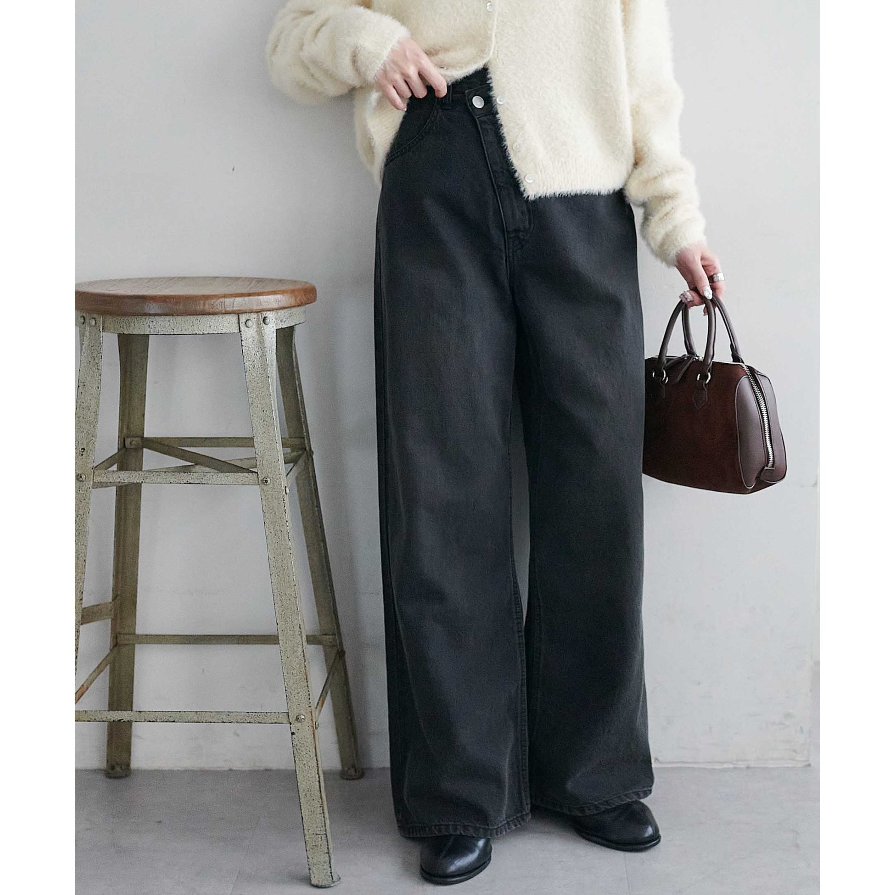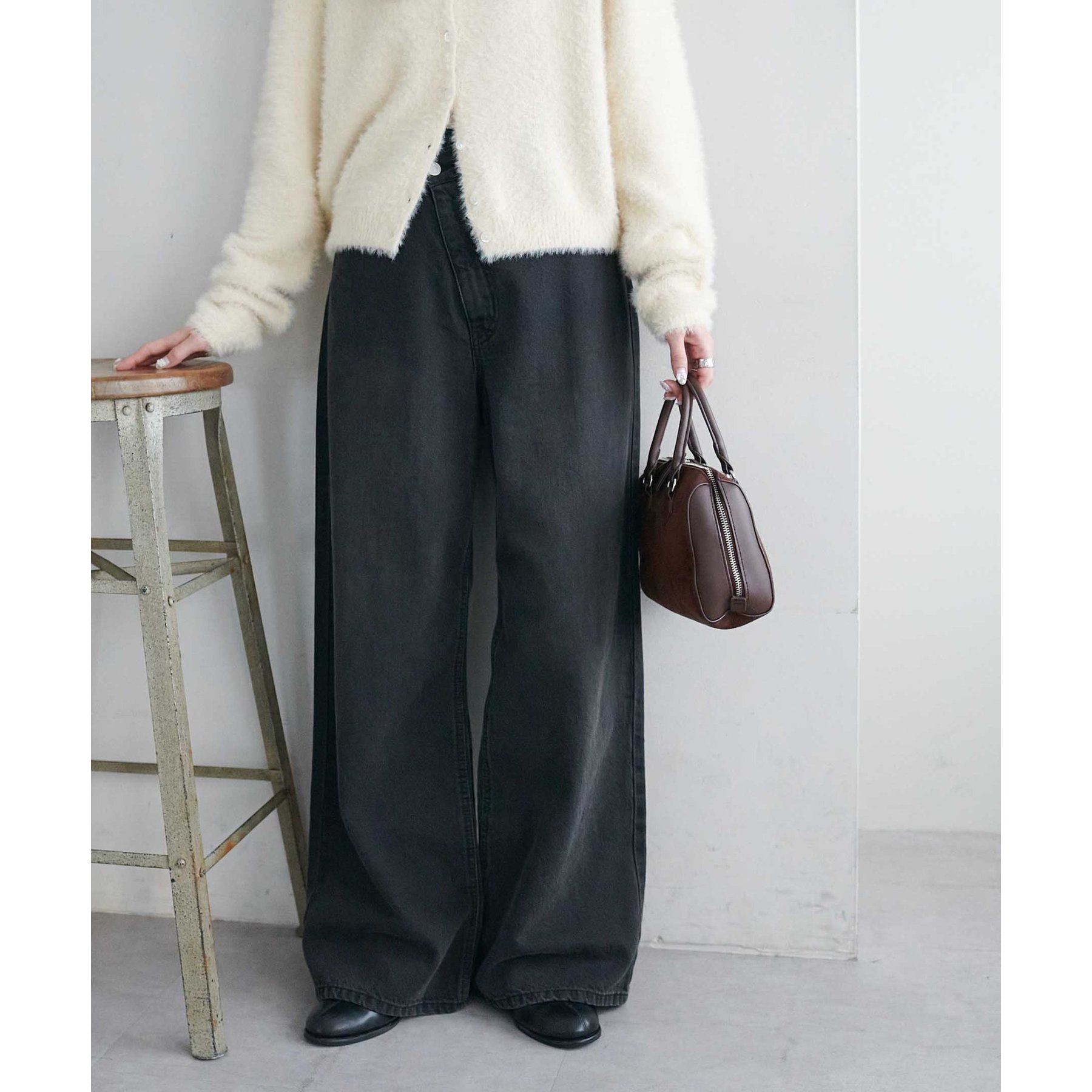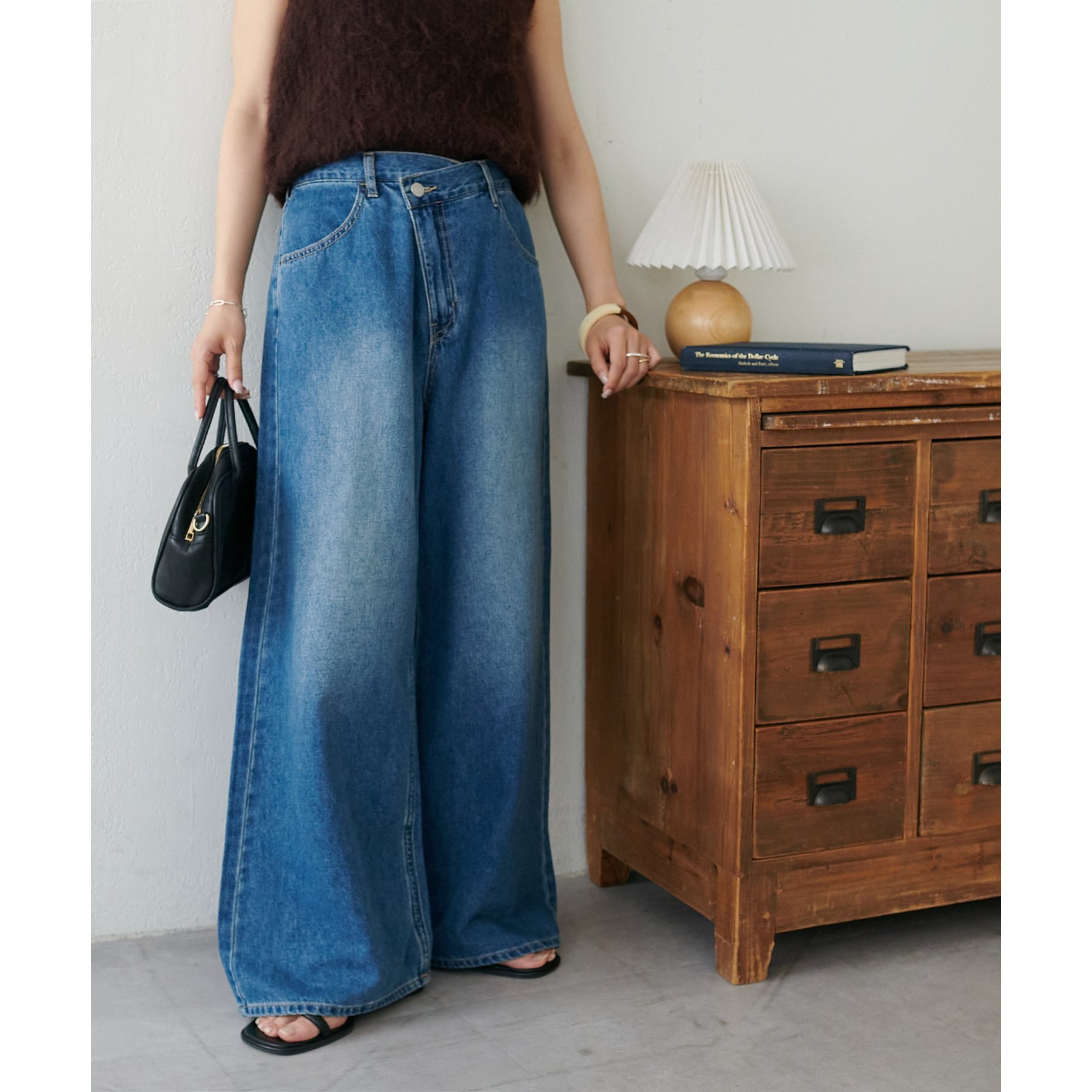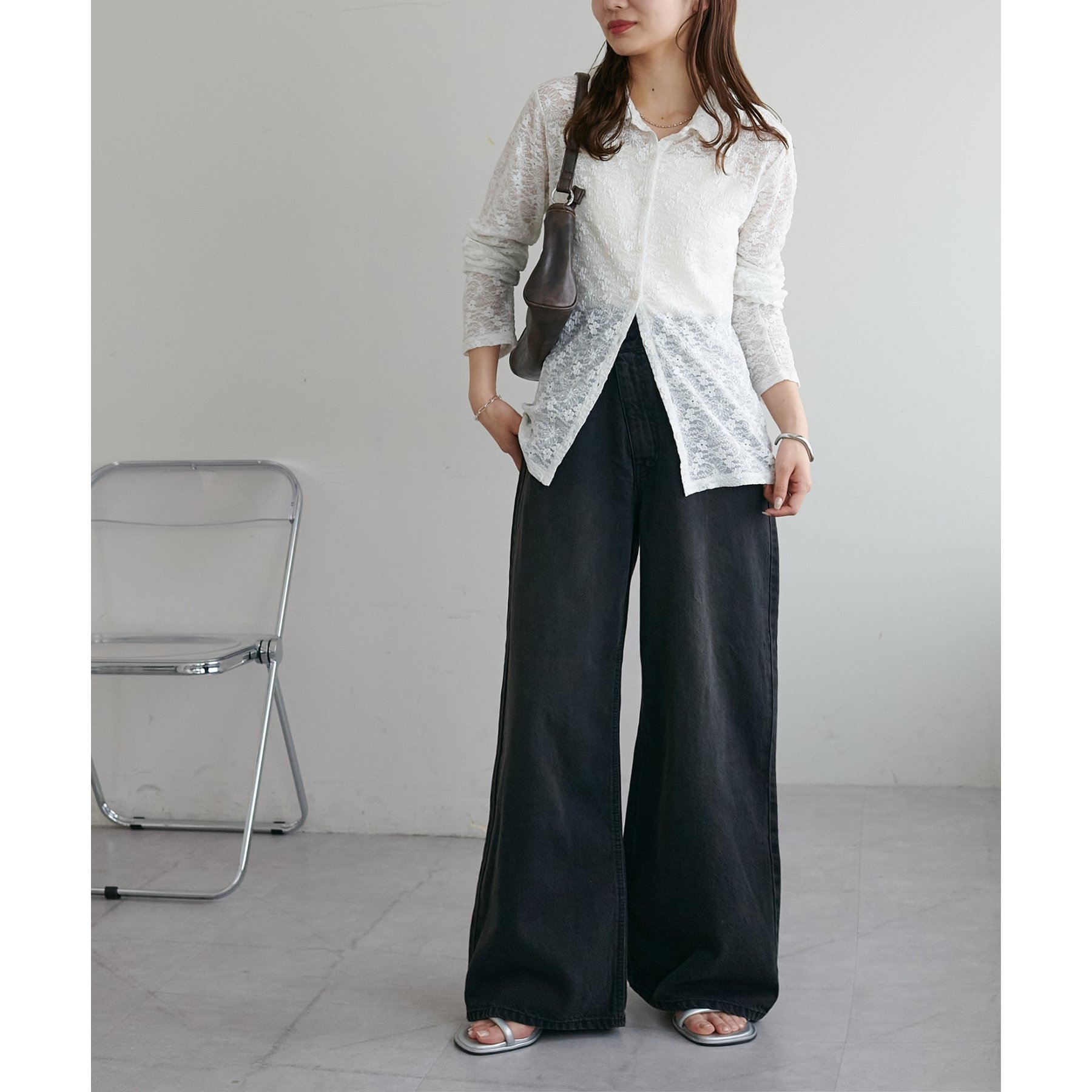 ゆるやかに広がる美しいシルエットが魅力のライトオンスデニムワイドパンツ。