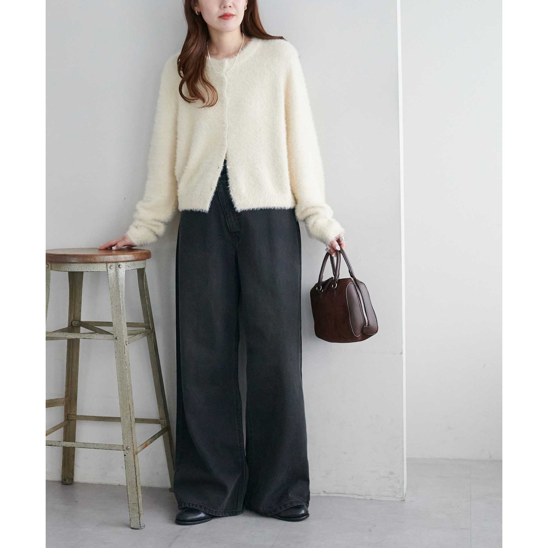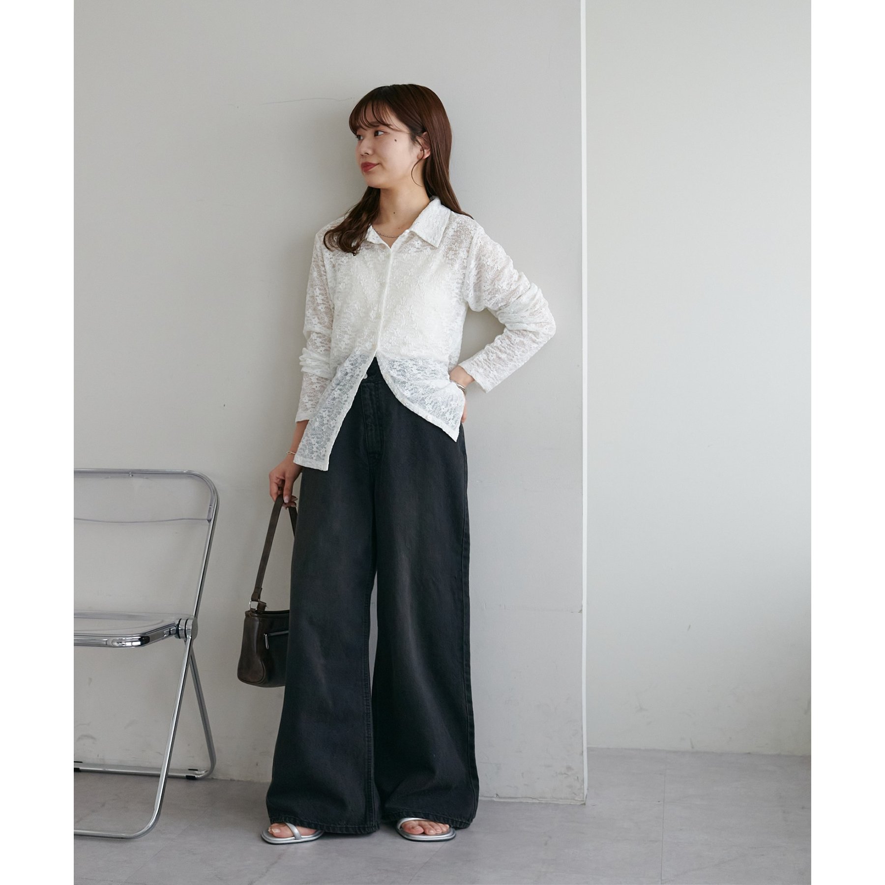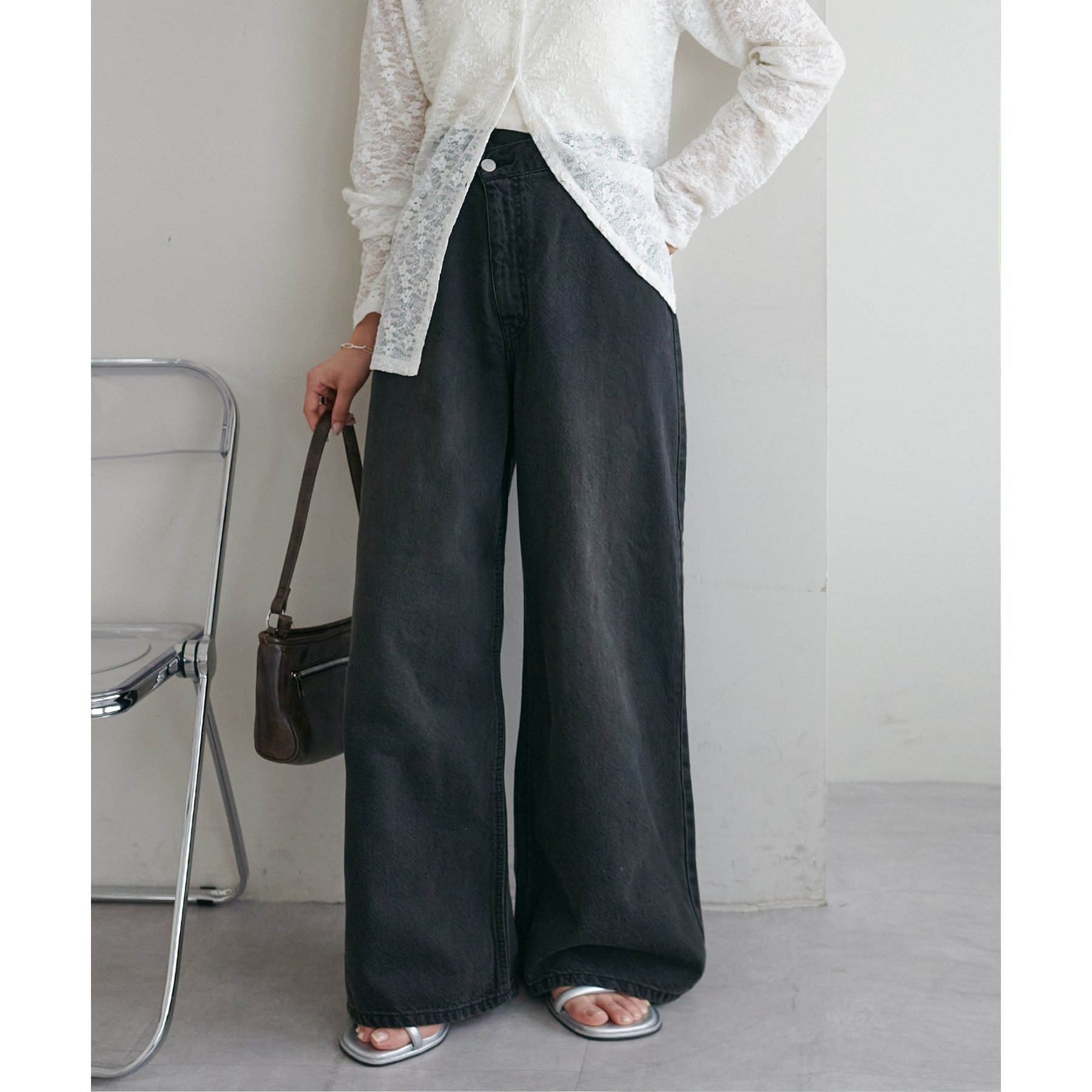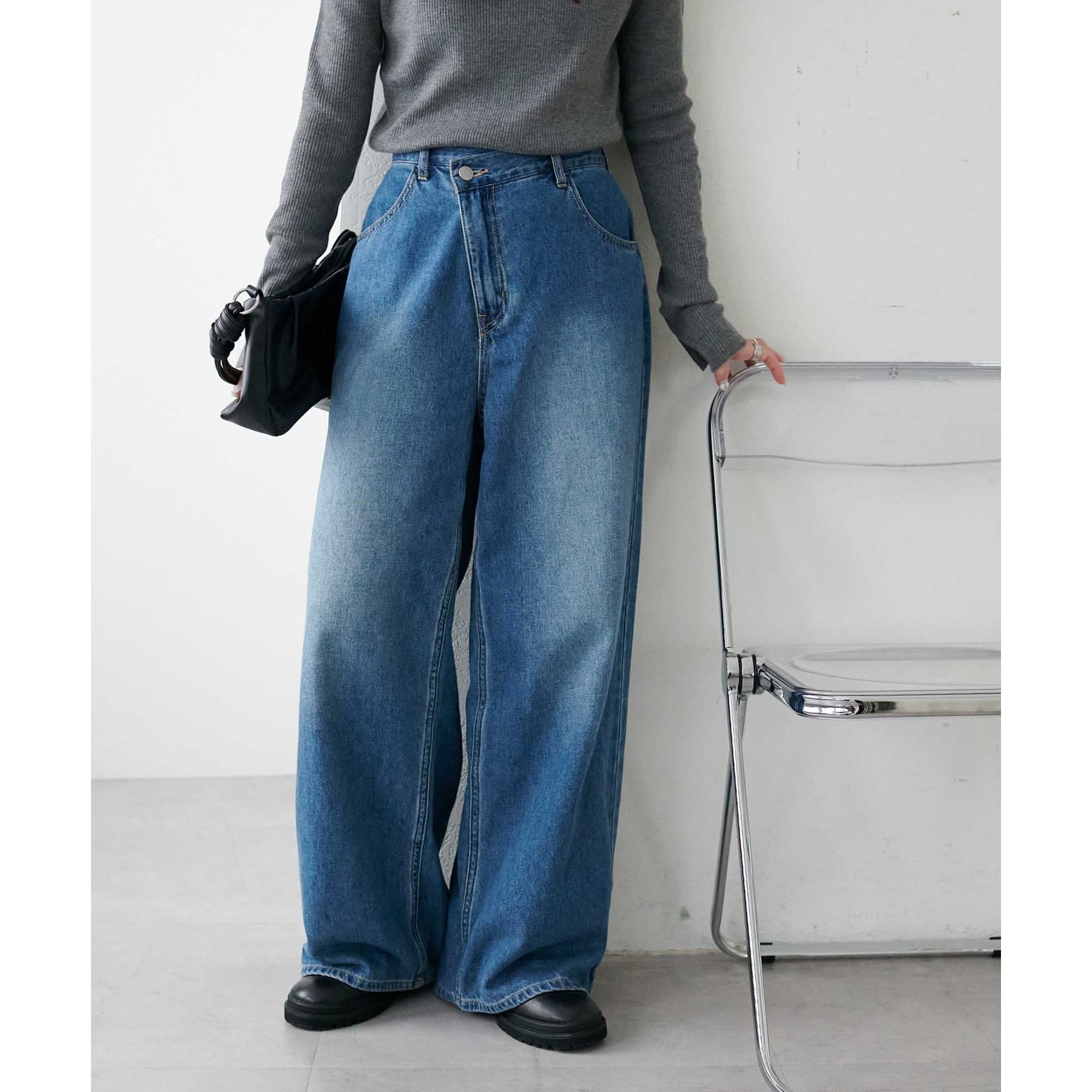 ゆるやかに広がる美しいシルエットが魅力のライトオンスデニムワイドパンツ。