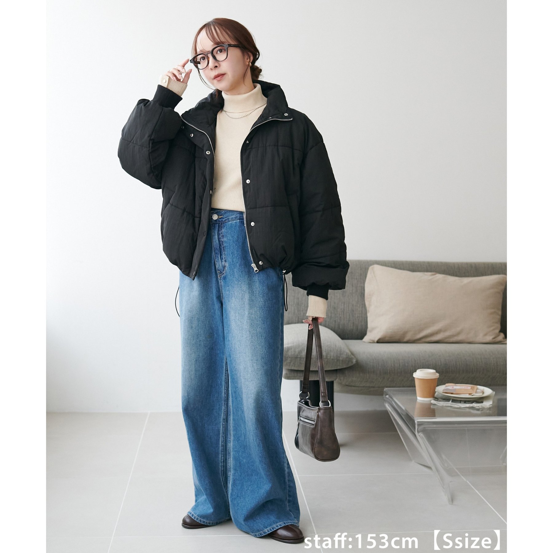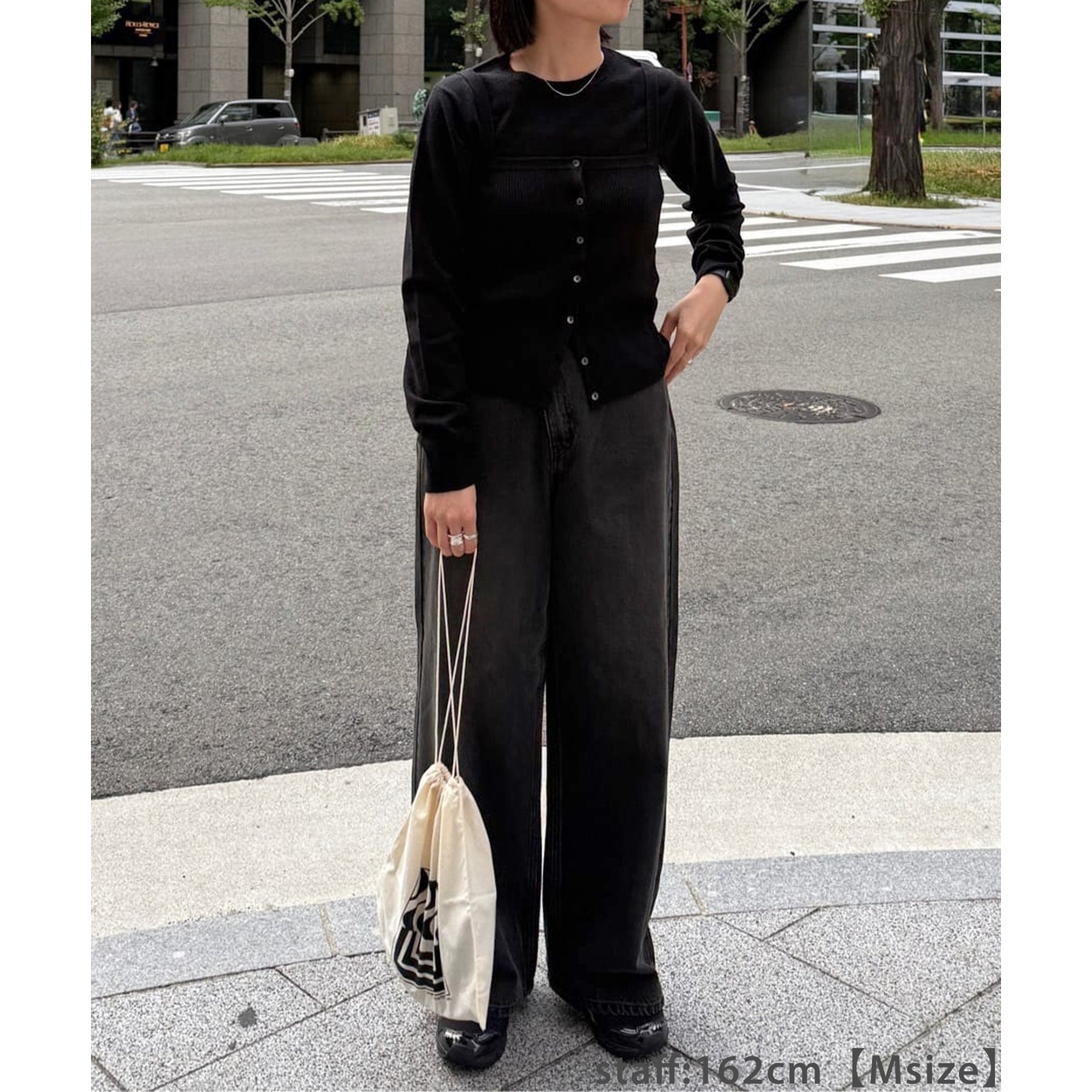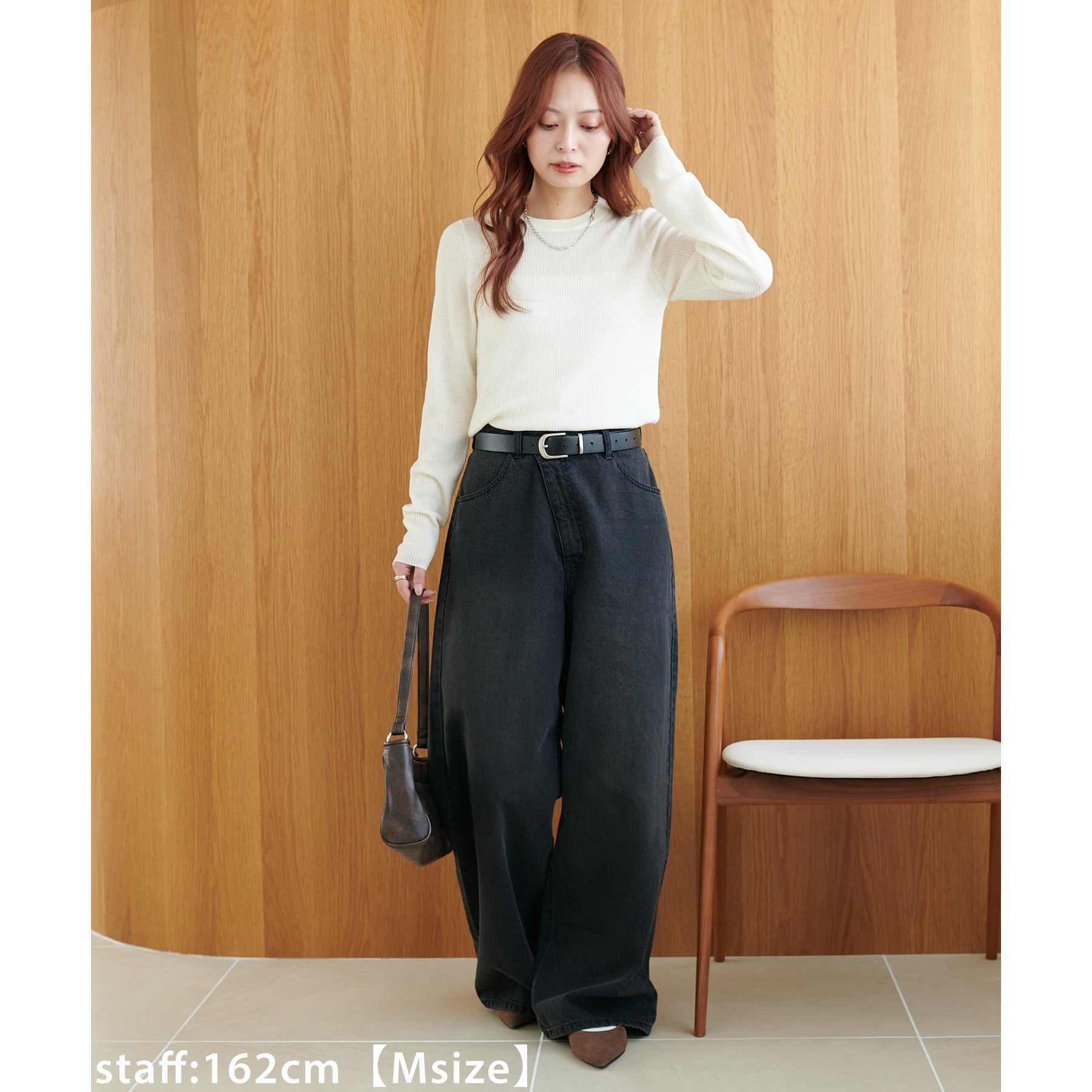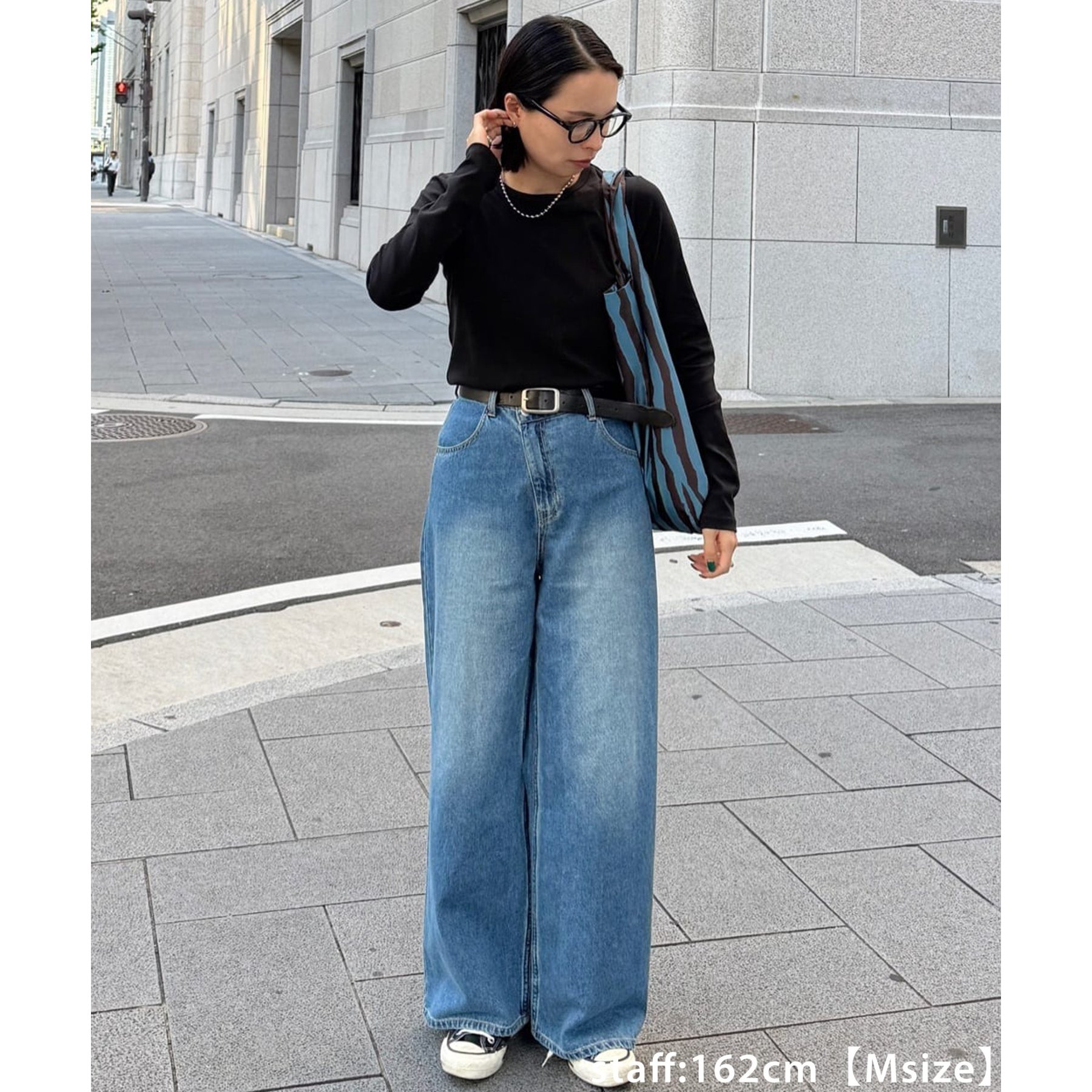 155cmスタッフ(Sサイズ着用):ワイドシルエットなのでコンパクトめなトップスと合わせると全体のバランスがとりやすく、スタイルアップして見えます◎