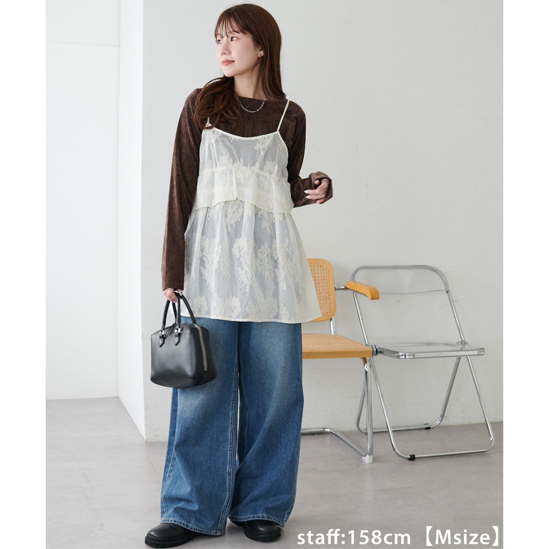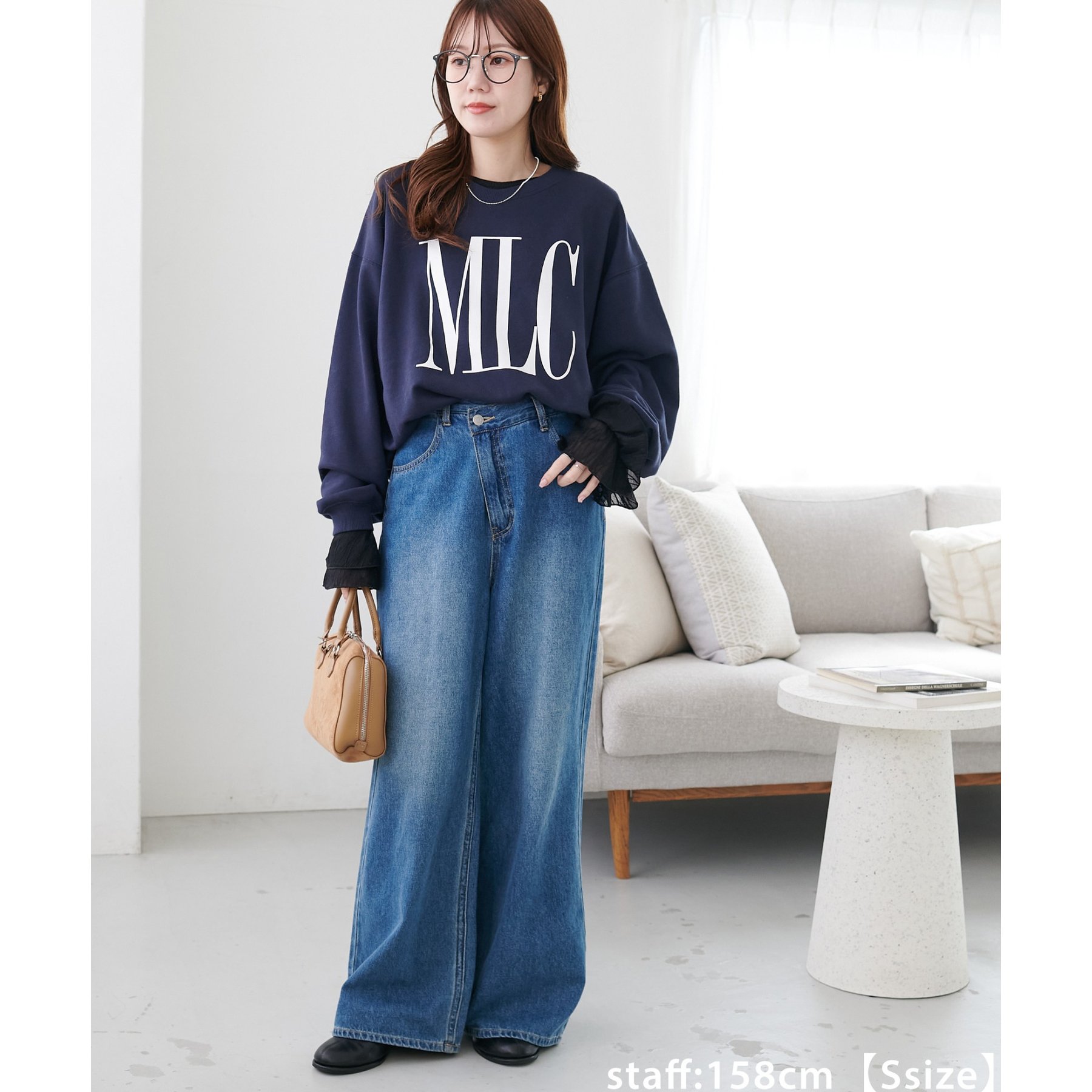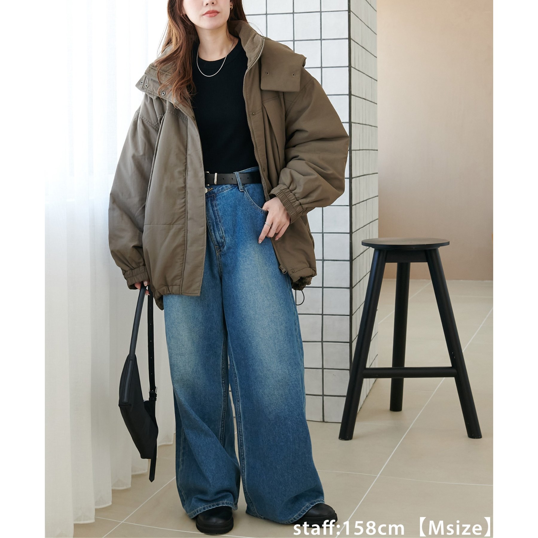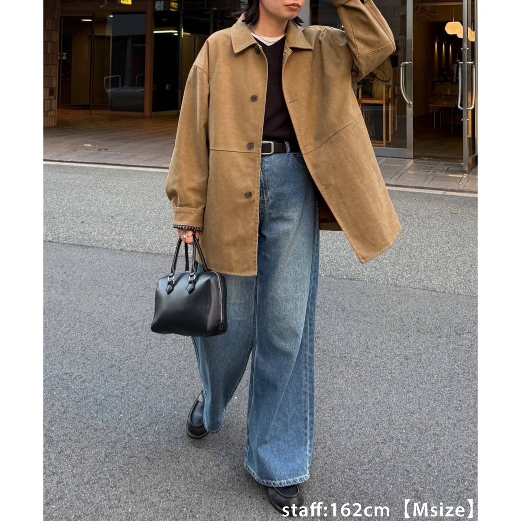 155cmスタッフ(Sサイズ着用):ワイドシルエットなのでコンパクトめなトップスと合わせると全体のバランスがとりやすく、スタイルアップして見えます◎